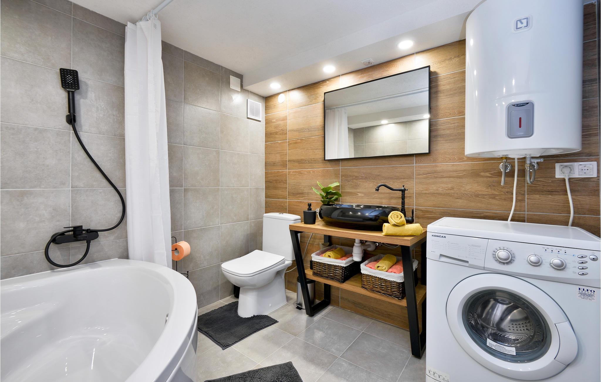 Badeværelse 8m2 (nr. 1) - WC. Varmt og koldt vand. Bruser og badekar