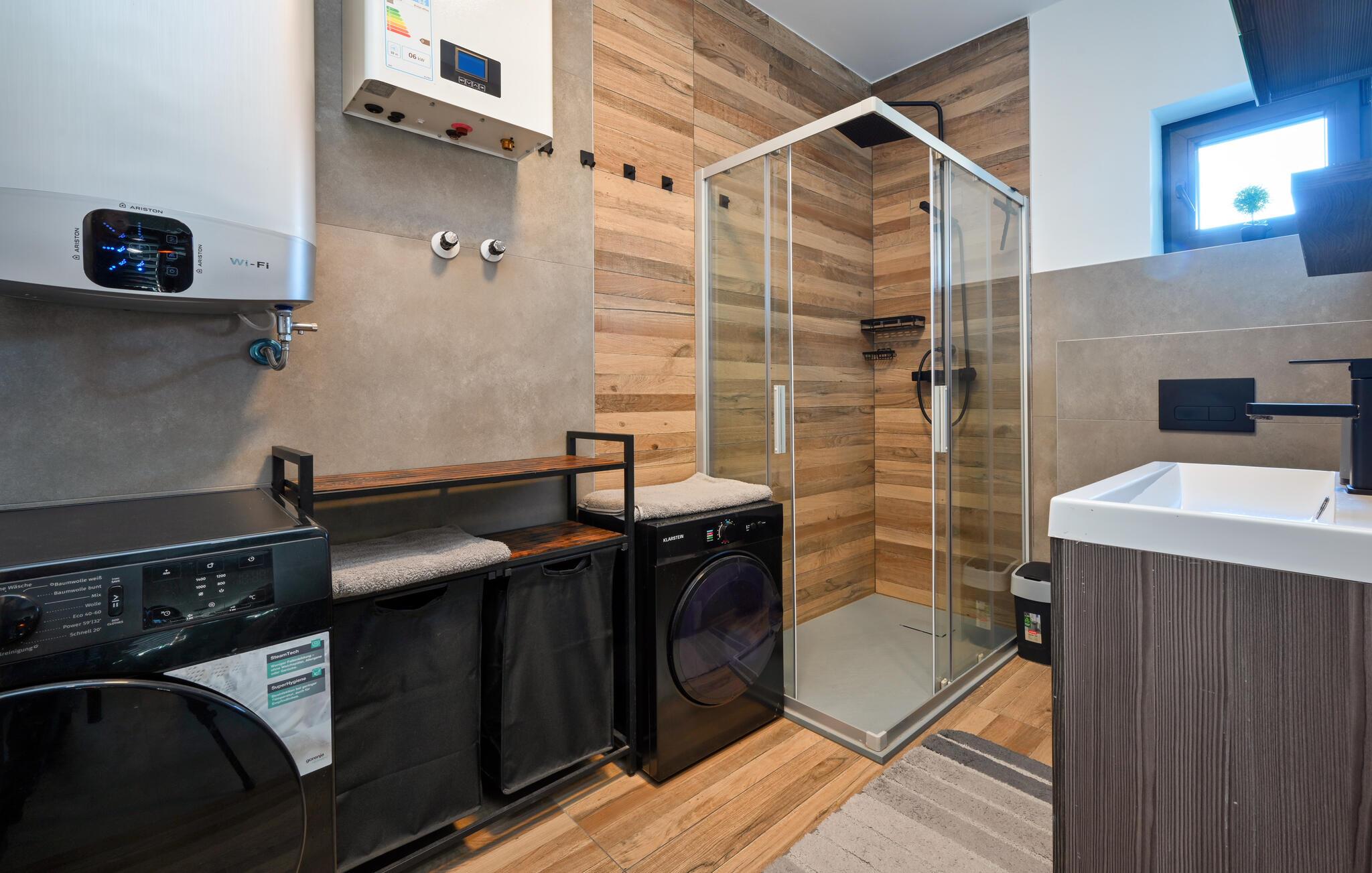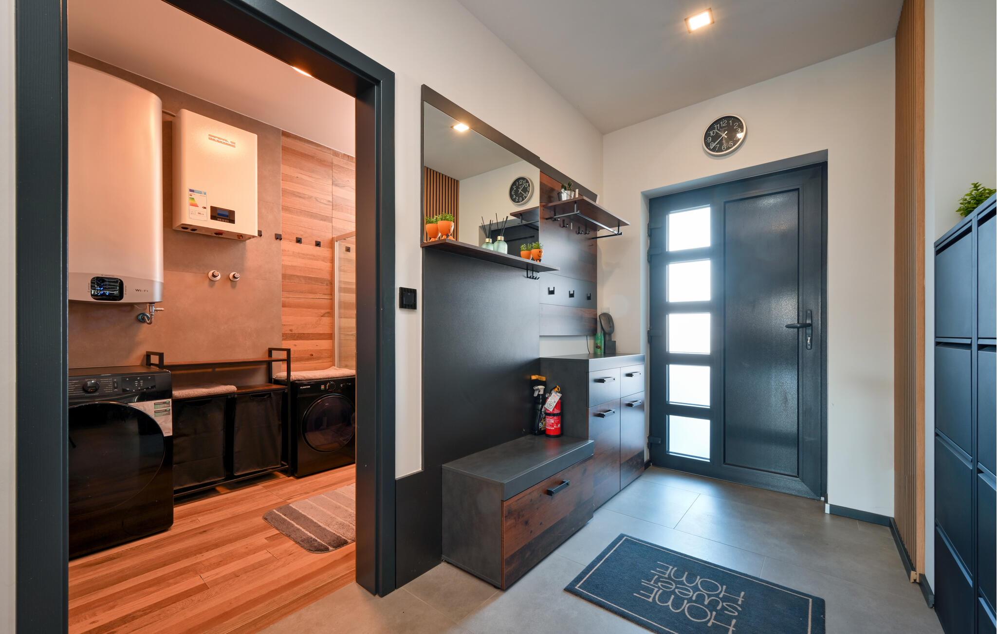 Tilbring en afslappende ferie i dette moderne feriehus med pool og spabad. Dette hus kombinerer harmonisk hygge og komfort. Diskrete farver, smukke træfinisher og en behagelig sofa vil få jer til at føle jer hjemme. Stream jeres yndlingsprogrammer, nyd en sjov eftermiddag med spil, eller lav et lækkert måltid sammen i det moderne køkken. Gå udenfor med jeres morgenkaffe og nyd den behagelige atmosfære. Tag en dukkert i poolen eller spil vandpolo med børnene. Slap af med en kølig drink på en liggestol, inden I afslutter dagen med en grillfest. Nyd den landlige ro i Sracinec, og hvis I leder efter lidt urban stemning, kan I besøge Varaždin med dens barokke gamle bydel, slot og charmerende gadecaféer. Gå en tur gennem de velholdte parker og langs Drava-floden, perfekt til afslappende eftermiddage ved vandet. Tag korte cykelture og prøv lokale specialiteter.