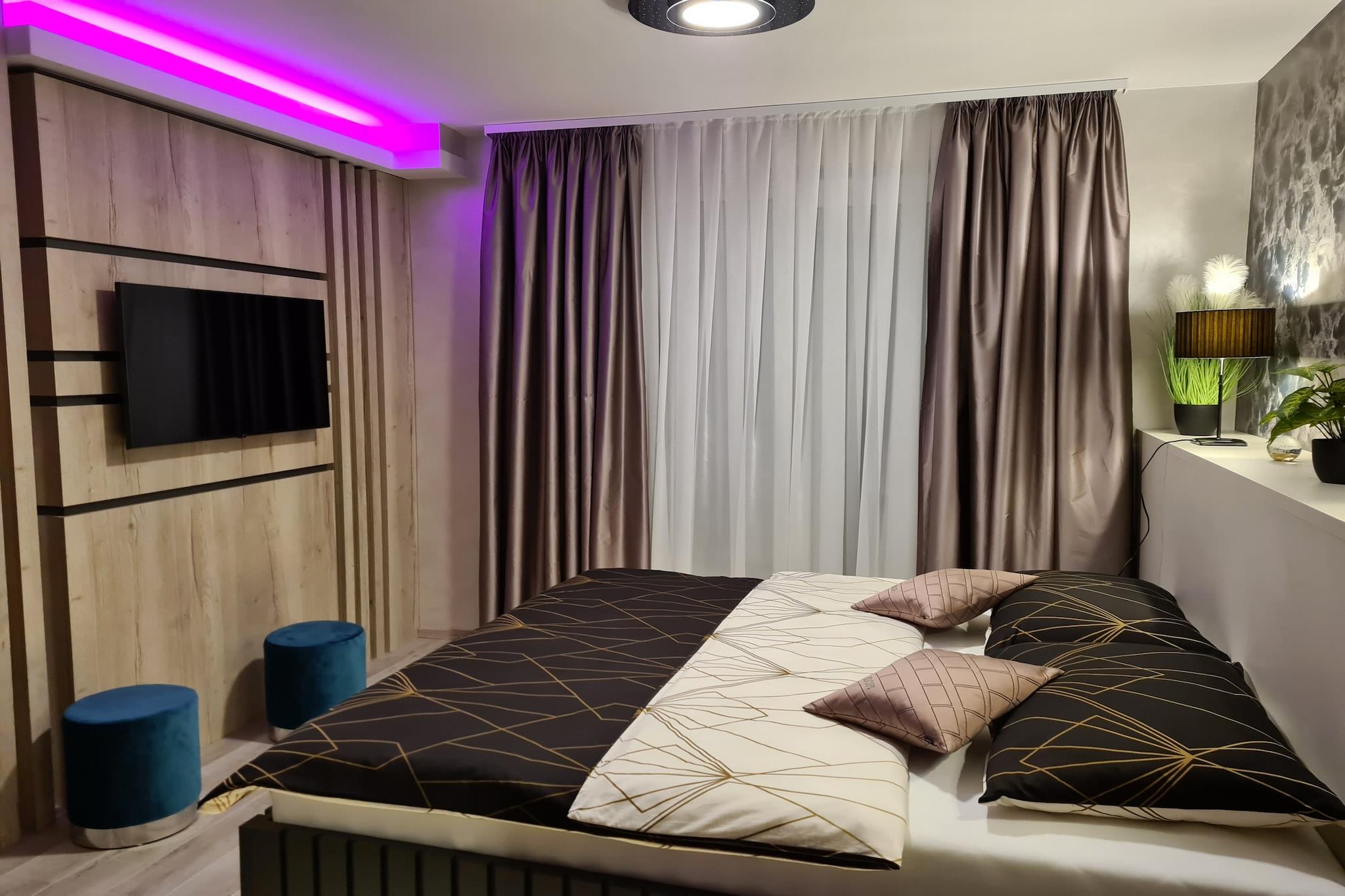 Wellness Apartments ligger i Varaždin, en by i det nordlige Kroatien. Byen Varaždin er det historiske, kulturelle, uddannelsesmæssige, økonomiske, sportslige og turistmæssige centrum i Varaždin-amtet, som er det ældste i Kroatien. Privat boblebad og privat sauna står til din rådighed, hvilket gør dette sted til et perfekt sted for en dejlig og afslappende familie- eller venners ferie. Denne ejendom kommer med to enheder med privat møbleret balkon. Det har gratis højhastigheds-wi-fi overalt på ejendommen. Der tilbydes gratis privat parkering, reservation er ikke nødvendig. Bagageopbevaring er mulig før check-in og efter check-out, så du kan udforske byen lidt mere før din afrejse.Kæledyr er ikke tilladt.Denne dejlige studiolejlighed med balkon kan rumme to personer. Det har aircondition samt centralvarme. Køkken er kombineret med spiseplads og det er veludstyret med køleskab, elkedel, fryser, komfur, køkkenredskaber og espressomaskine. Gratis toiletartikler, hårtørrer samt håndklæder og sengetøj står til din rådighed. Denne lejlighed ligger på første sal. Grundet ejendommenes gode beliggenhed kan alt hvad du kan få brug for under dit ophold findes i området. Prøv traditionel mad i en af Varaždins restauranter. De kan findes inden for 500 m fra ejendommen. Marked, apotek samt en café og bar ligger kun 10 m fra ejendommen. Busstationen ligger 500 m fra lejligheden. Zagreb lufthavn ligger 82 km fra ejendommen, og busstationen ligger 500 m fra ejendommen.