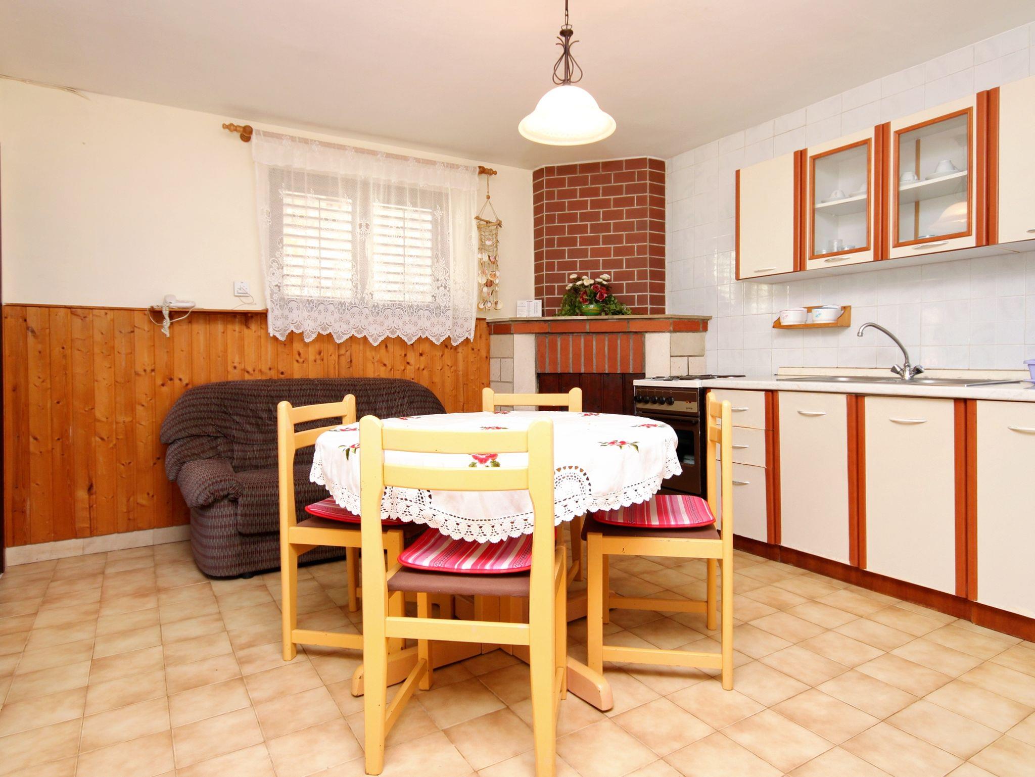 Haus bietet Platz für 6 Gäste. Die Betten sind in Schlafzimmern, die es 3 gibt, innerhalb einer Gesamtfläche von 64m2, angeordnet. Die Gäste haben eine eigene Terrasse zur Verfügung, auf der sie in warmen Sommernächten genießen können. Das Haus bietet Meerblick. Für vollen Genuss und Entspannung gibt es einen privaten Grill für Gäste dieser Unterkunft. IM PREIS INBEGRIFFEN: Kurtaxe, Endreinigung, Klimatisierung, Kinderbett, Bügeleisen, Bügelbrett, Föhn, Sonnenschirm, Liegestühle, 1 Bett für Kinder (im Preis enthalten). VERBINDLICHE ZUSÄTZLICHE KOSTEN: Aufzahlung für Kurzaufenthalte (prozentualer Zuschlag pro Nächtigungsanzahl: 30% - 1, 20% - 2, 10% - 3). Die Verfügbarkeit zusätzlicher Dienstleistungen in Ihrem reservierten Termin und die Preise derselben (falls nicht aufgeführt) müssen im Voraus überprüft werden. Zusätzliche Dienstleistungen die in der Zahlungsaufforderung nicht aufgeführt sind werden direkt beim Vermieter bezahlt, angenommen der Gast nutzt auch diese.