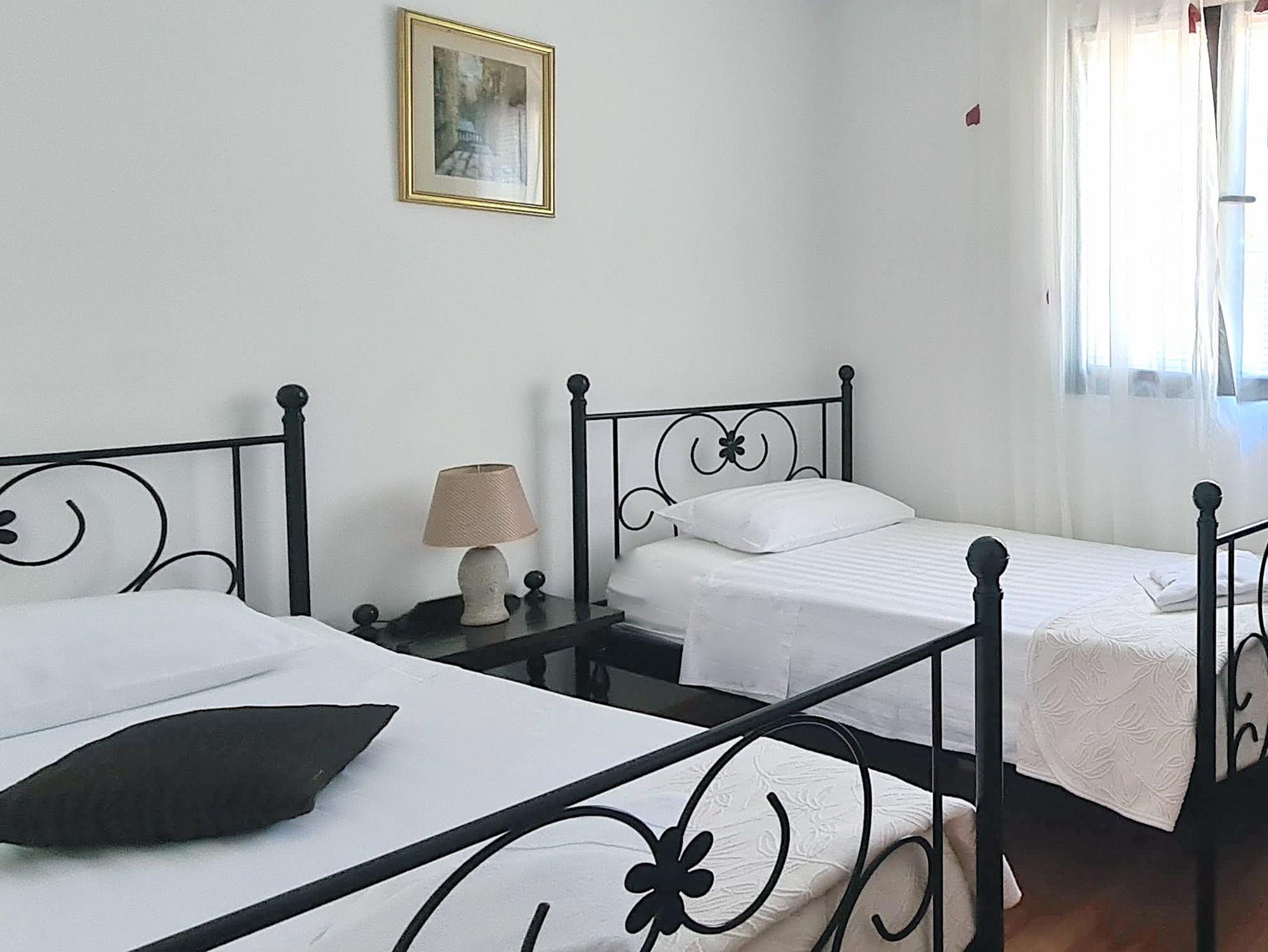Ferienwohnung bietet Platz für 4 Gäste. Die Betten sind in Schlafzimmern, die es 2 gibt, innerhalb einer Gesamtfläche von 70m2, angeordnet. Die Gäste haben eine eigene Terrasse zur Verfügung, auf der sie in warmen Sommernächten genießen können. Das Apartment bietet Meerblick. Für vollen Genuss und Entspannung gibt es einen privaten Grill für Gäste dieser Unterkunft. Während ihres Aufenthalts können Gäste das gemeinsam zur Nutzung stehende Schwimmbad benutzen. IM PREIS INBEGRIFFEN: Kurtaxe, Endreinigung, Klimatisierung, Pool, Parkplatz, Internet, Wäschewaschen, Bootsanlegeplatz, Kinderbett, Bügeleisen, Bügelbrett, Föhn, tragbarer Grill. VERBINDLICHE ZUSÄTZLICHE KOSTEN: Aufzahlung für Kurzaufenthalte (prozentualer Zuschlag pro Nächtigungsanzahl: 30% - 1, 20% - 2, 10% - 3). Die Verfügbarkeit zusätzlicher Dienstleistungen in Ihrem reservierten Termin und die Preise derselben (falls nicht aufgeführt) müssen im Voraus überprüft werden. Zusätzliche Dienstleistungen die in der Zahlungsaufforderung nicht aufgeführt sind werden direkt beim Vermieter bezahlt, angenommen der Gast nutzt auch diese.