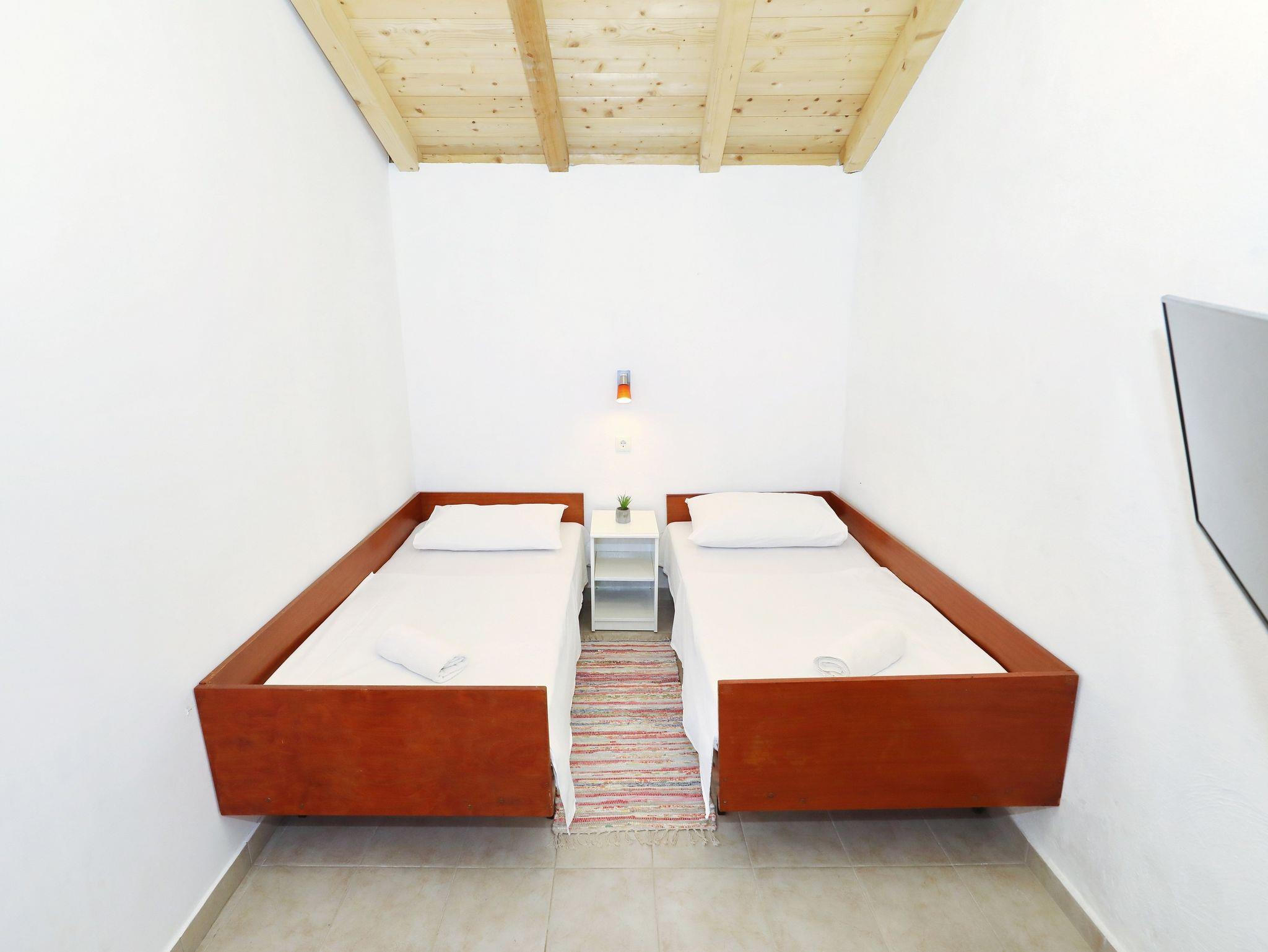 Haus bietet Platz für 3 Gäste. Die Betten sind in Schlafzimmern, die es 2 gibt, innerhalb einer Gesamtfläche von 37m2, angeordnet. Die Gäste haben eine eigene Terrasse zur Verfügung, auf der sie in warmen Sommernächten genießen können. Das Haus bietet Meerblick. Für vollen Genuss und Entspannung gibt es einen privaten Grill für Gäste dieser Unterkunft. IM PREIS INBEGRIFFEN: Kurtaxe, Endreinigung, Parkplatz, Wäschewaschen, Föhn, Liegestühle. VERBINDLICHE ZUSÄTZLICHE KOSTEN: Aufzahlung für Kurzaufenthalte (prozentualer Zuschlag pro Nächtigungsanzahl: 30% - 1, 20% - 2, 10% - 3). UNVERBINDLICHE ZUSÄTZLICHE KOSTEN: Bootsanlegeplatz (10,00 € pro Nacht), Zusatzbett (7,00 € pro Nacht). Die Verfügbarkeit zusätzlicher Dienstleistungen in Ihrem reservierten Termin und die Preise derselben (falls nicht aufgeführt) müssen im Voraus überprüft werden. Zusätzliche Dienstleistungen die in der Zahlungsaufforderung nicht aufgeführt sind werden direkt beim Vermieter bezahlt, angenommen der Gast nutzt auch diese. Ermäßigung auf den Grundpreis: Gratistag 21=19 (bei einem Aufenthalt von 21 Tagen oder mehr erhalten Sie 2 Gratistage für den Aufenthalt bis 31.12.26).