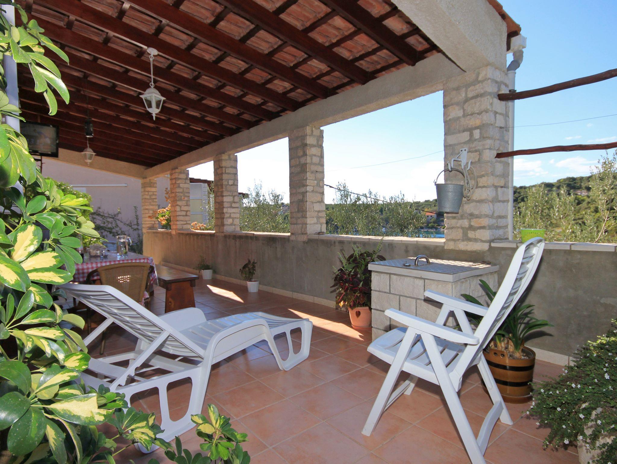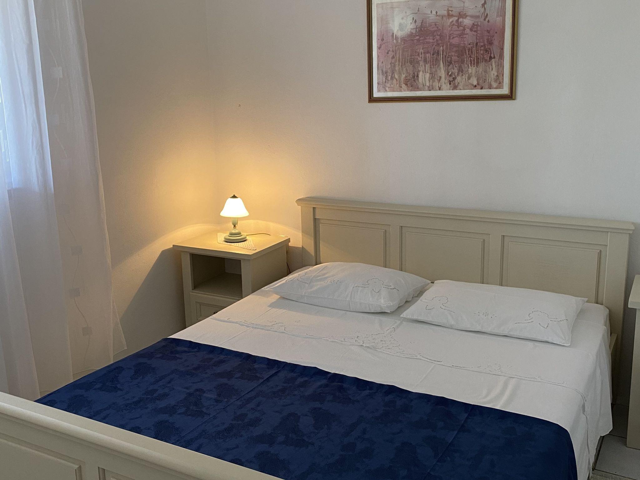 Ferienwohnung bietet Platz für 4 Gäste. Die Betten sind in Schlafzimmern, die es 2 gibt, innerhalb einer Gesamtfläche von 33m2, angeordnet. Die Gäste haben eine eigene Terrasse zur Verfügung, auf der sie in warmen Sommernächten genießen können. Das Apartment bietet Meerblick. Es ist erlaubt, Speisen auf dem Gemeinschafts-Grill vorzubereiten. In der Unterkunftseinheit besteht die Möglichkeit des Mitbringens von Haustieren gegen Aufpreis. IM PREIS INBEGRIFFEN: Kurtaxe, Endreinigung, Klimatisierung, Parkplatz, Internet, Bügeleisen, Föhn, Liegestühle. VERBINDLICHE ZUSÄTZLICHE KOSTEN: Aufzahlung für Kurzaufenthalte (prozentualer Zuschlag pro Nächtigungsanzahl: 30% - 1, 20% - 2, 10% - 3). UNVERBINDLICHE ZUSÄTZLICHE KOSTEN: Wäschewaschen (5,00 € Waschen), Bootsanlegeplatz (5,00 € pro Nacht), Haustiere (5,00 € pro Nacht). Die Verfügbarkeit zusätzlicher Dienstleistungen in Ihrem reservierten Termin und die Preise derselben (falls nicht aufgeführt) müssen im Voraus überprüft werden. Zusätzliche Dienstleistungen die in der Zahlungsaufforderung nicht aufgeführt sind werden direkt beim Vermieter bezahlt, angenommen der Gast nutzt auch diese.