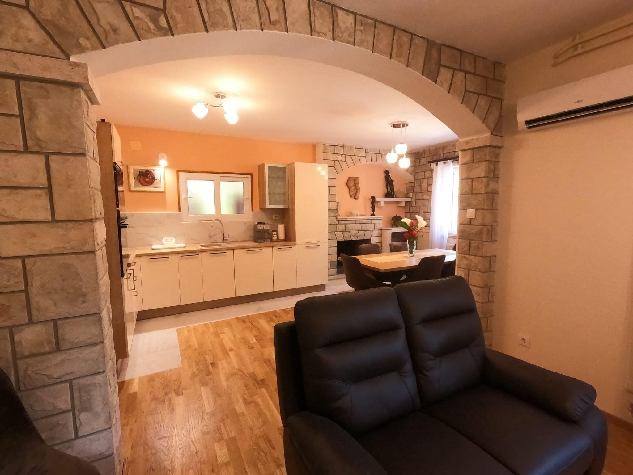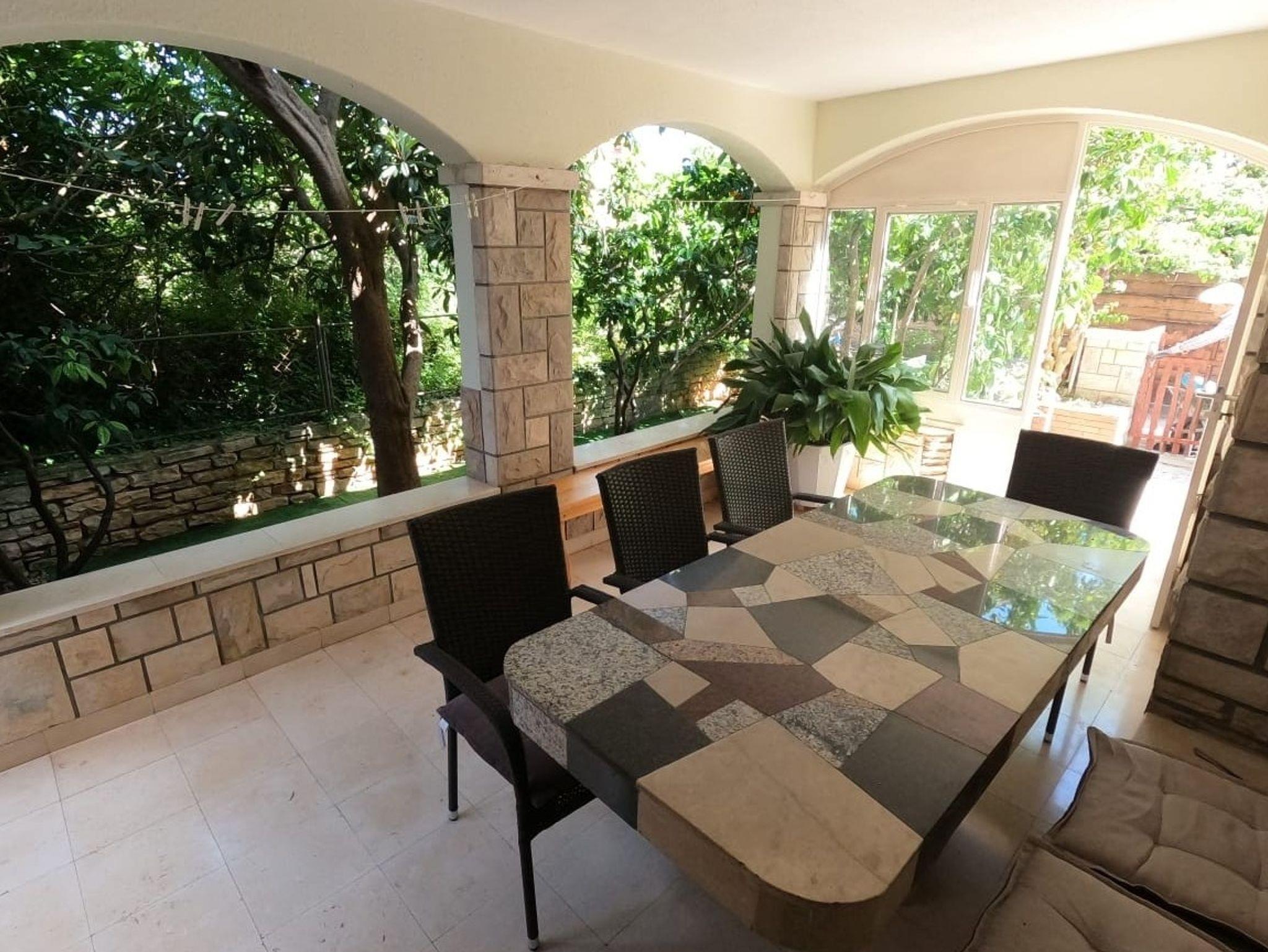 Ferienwohnung bietet Platz für 7 Gäste. Die Betten sind in Schlafzimmern, die es 4 gibt, innerhalb einer Gesamtfläche von 119m2, angeordnet. Die Gäste haben eine eigene Terrasse zur Verfügung, auf der sie in warmen Sommernächten genießen können. Es ist erlaubt, Speisen auf dem Gemeinschafts-Grill vorzubereiten. Während ihres Aufenthalts können sich Gäste im privaten Schwimmbad entspannen. In der Unterkunftseinheit besteht die Möglichkeit des Mitbringens von Haustieren, und die Dienstleistung ist im Preis der Unterkunft enthalten. IM PREIS INBEGRIFFEN: Kurtaxe, Endreinigung, Klimatisierung, Zentralheizung, Pool, Parkplatz, Internet, Haustiere, Kinderbett, Bügeleisen, Bügelbrett, Föhn. Die Verfügbarkeit zusätzlicher Dienstleistungen in Ihrem reservierten Termin und die Preise derselben (falls nicht aufgeführt) müssen im Voraus überprüft werden. Zusätzliche Dienstleistungen die in der Zahlungsaufforderung nicht aufgeführt sind werden direkt beim Vermieter bezahlt, angenommen der Gast nutzt auch diese. Ermäßigung auf den Grundpreis: Gratistag 14=13 (bei einem Aufenthalt von 14 Tagen oder mehr erhalten Sie einen Gratistag für den Aufenthalt bis 31.12.26).