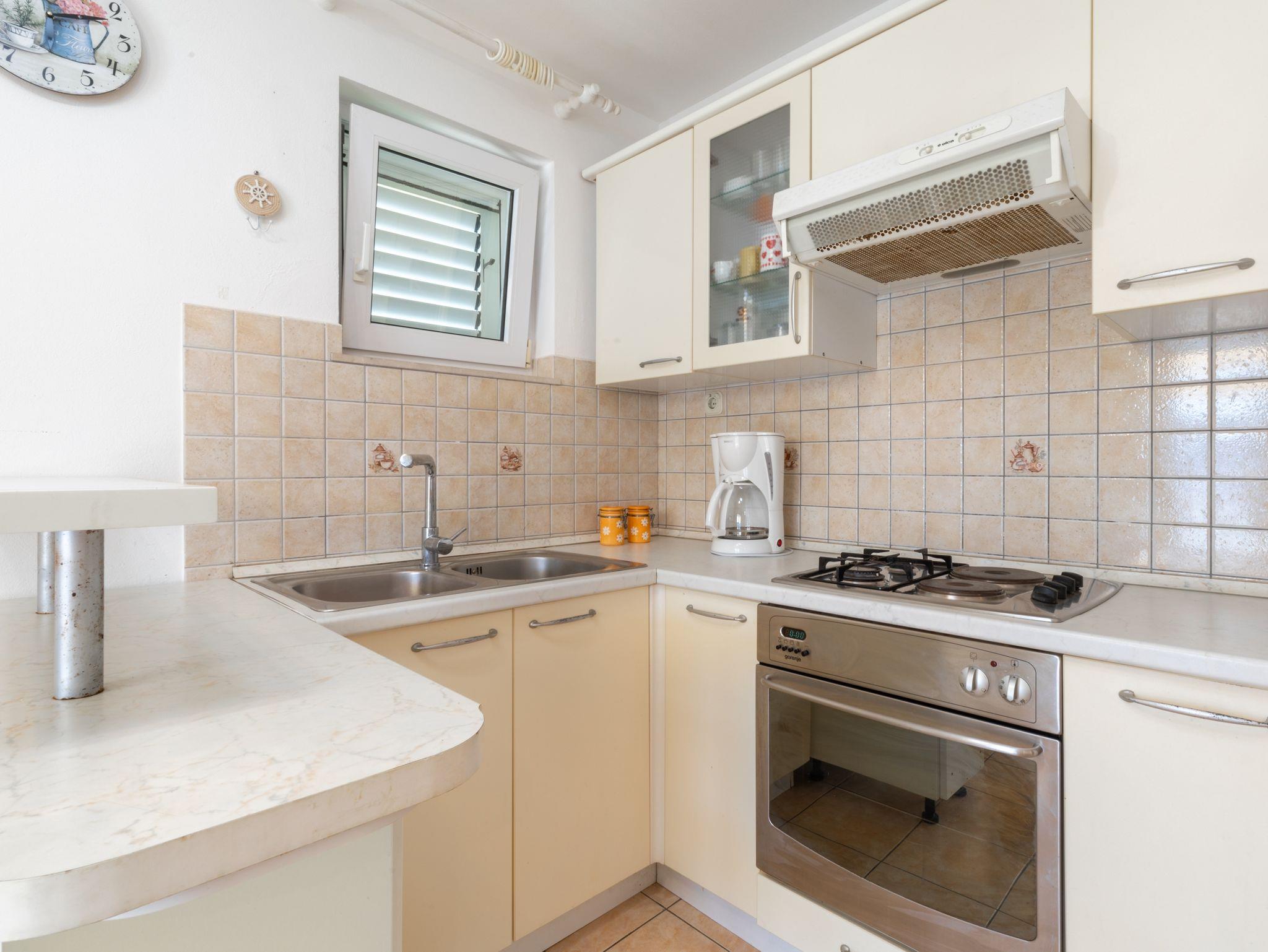 Ferienwohnung bietet Platz für 6 Gäste. Die Betten sind in Schlafzimmern, die es 3 gibt, innerhalb einer Gesamtfläche von 53m2, angeordnet. Die Gäste haben eine eigene Terrasse zur Verfügung, auf der sie in warmen Sommernächten genießen können. Das Apartment bietet Meerblick. Für vollen Genuss und Entspannung gibt es einen privaten Grill für Gäste dieser Unterkunft. Unterkunftseinheit hat Räume, die von dem Rest der Einheit abgetrennt werden. IM PREIS INBEGRIFFEN: Kurtaxe, Endreinigung, Klimatisierung, Parkplatz, Internet, Bootsanlegeplatz, Bügeleisen, Bügelbrett, Föhn, Sonnenschirm, Liegestühle. VERBINDLICHE ZUSÄTZLICHE KOSTEN: Aufzahlung für Kurzaufenthalte (prozentualer Zuschlag pro Nächtigungsanzahl: 30% - 1, 20% - 2, 10% - 3). Die Verfügbarkeit zusätzlicher Dienstleistungen in Ihrem reservierten Termin und die Preise derselben (falls nicht aufgeführt) müssen im Voraus überprüft werden. Zusätzliche Dienstleistungen die in der Zahlungsaufforderung nicht aufgeführt sind werden direkt beim Vermieter bezahlt, angenommen der Gast nutzt auch diese.