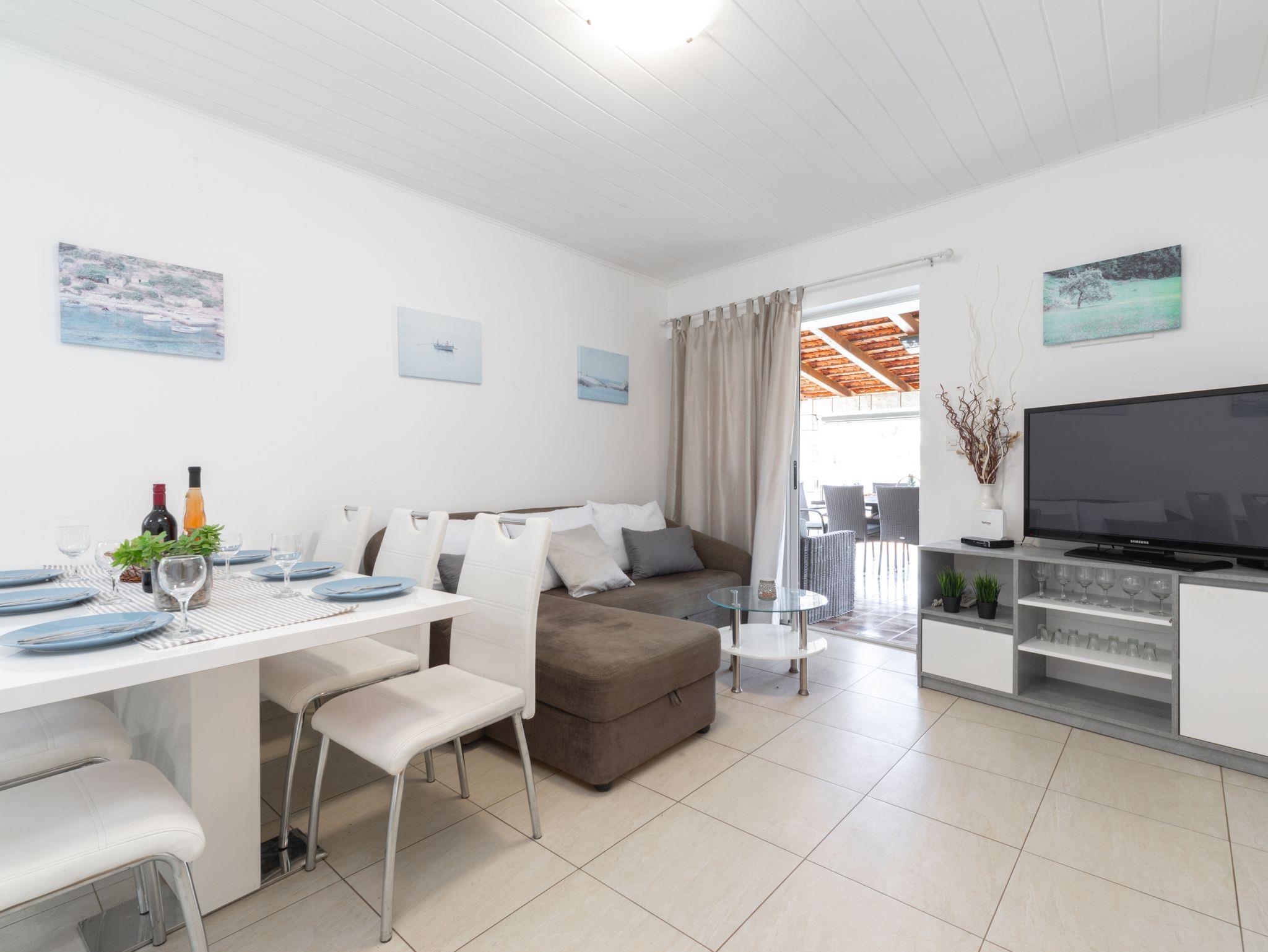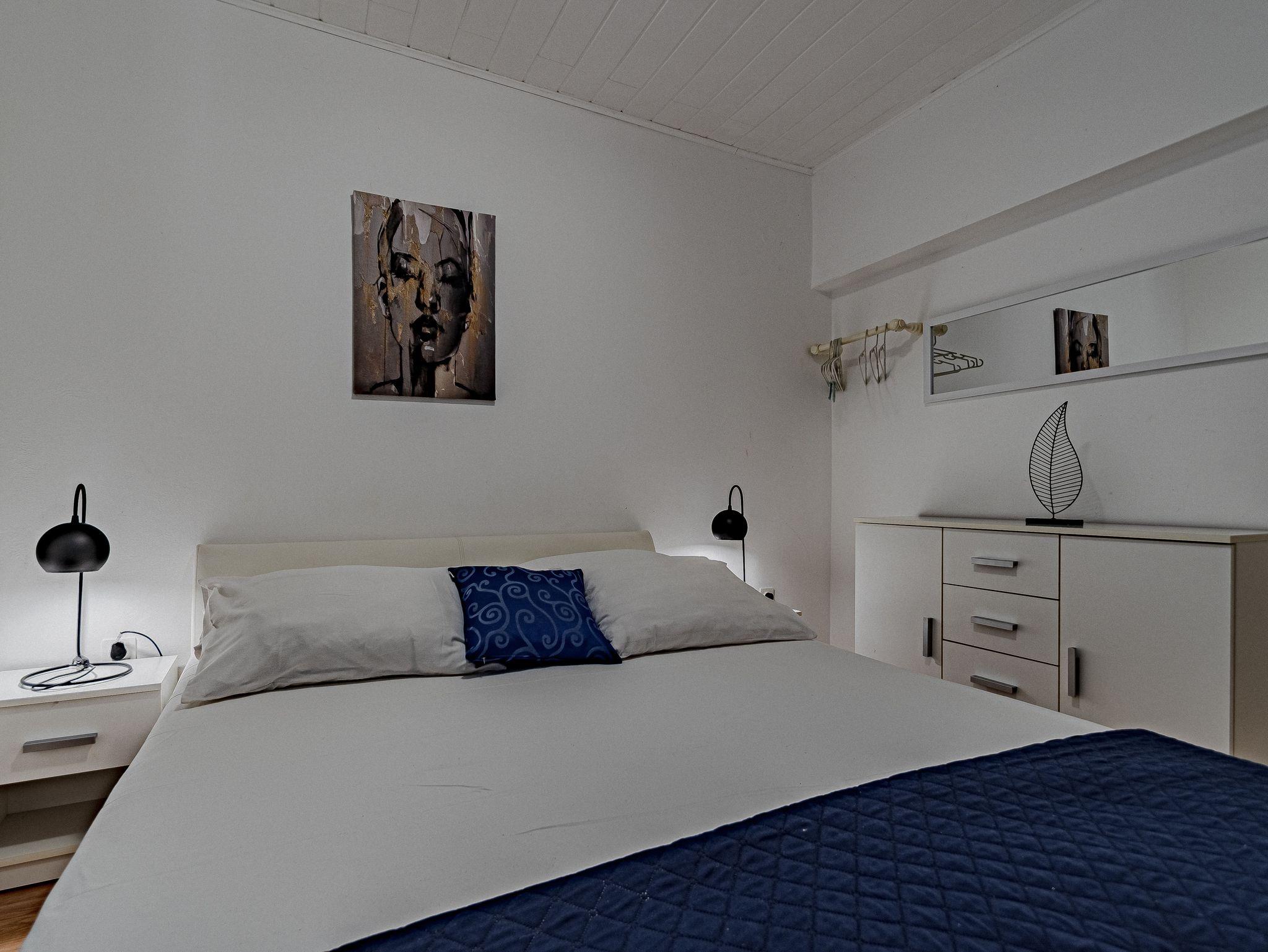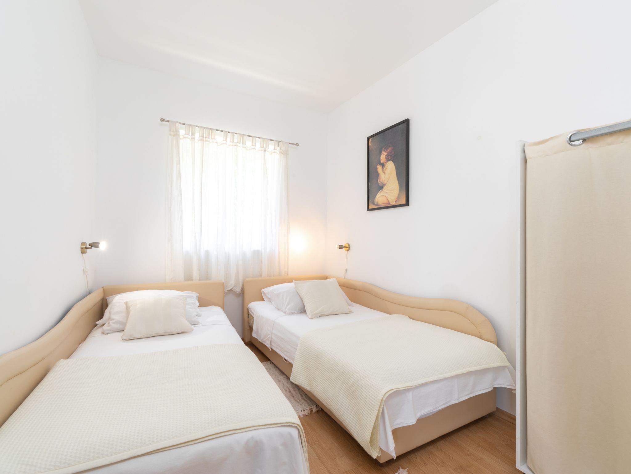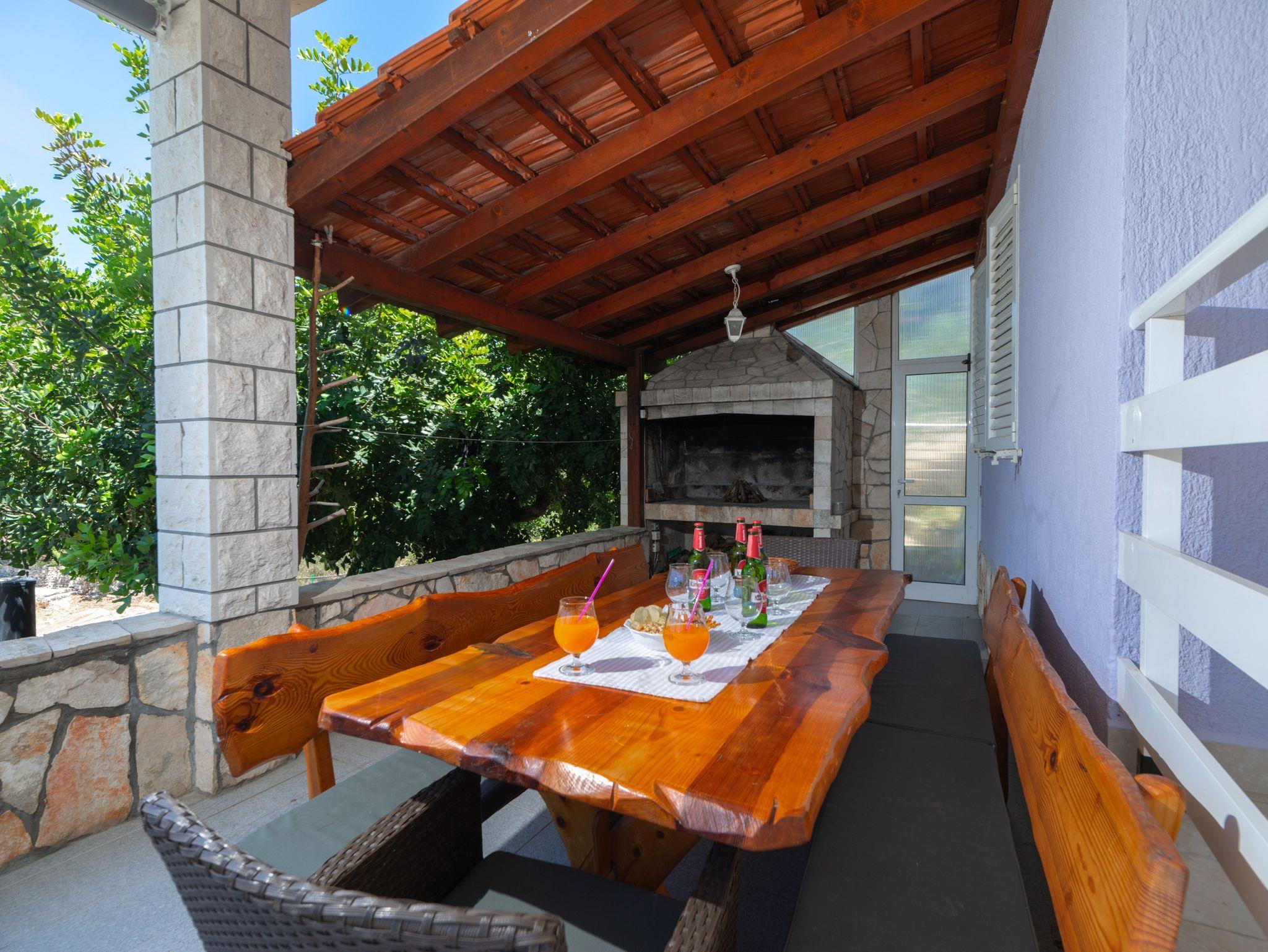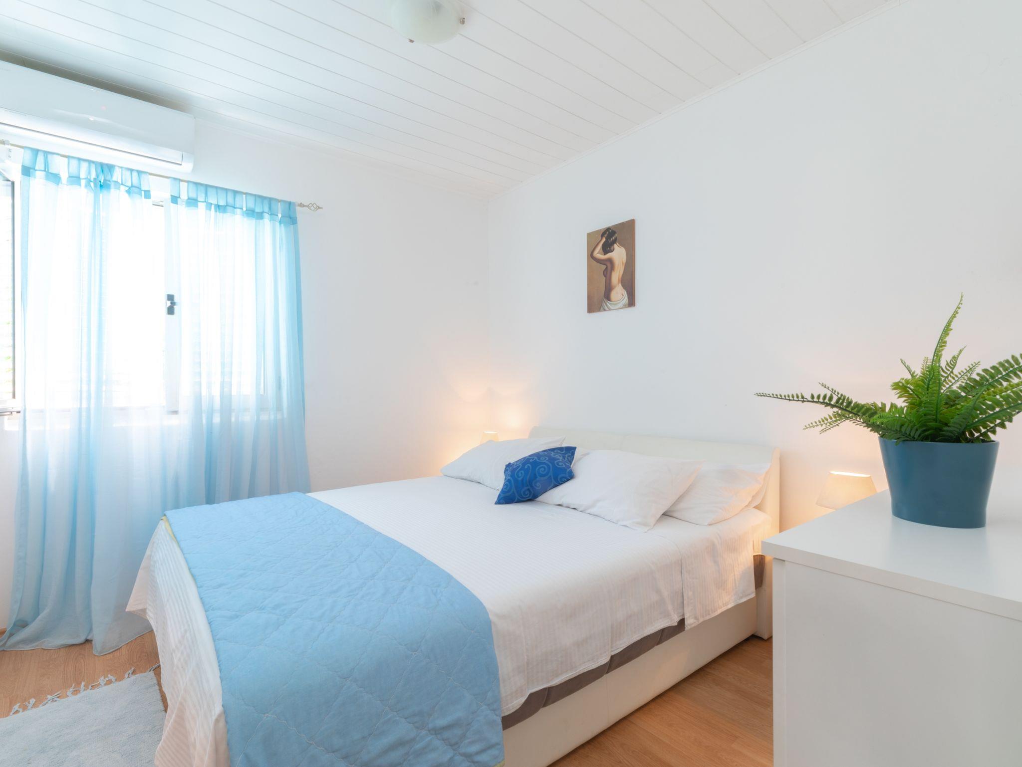 Haus bietet Platz für 10 Gäste. Die Betten sind in Schlafzimmern, die es 5 gibt, innerhalb einer Gesamtfläche von 102m2, angeordnet. Die Gäste haben eine eigene Terrasse zur Verfügung, auf der sie in warmen Sommernächten genießen können. Das Haus bietet Meerblick. Für vollen Genuss und Entspannung gibt es einen privaten Grill für Gäste dieser Unterkunft. IM PREIS INBEGRIFFEN: Kurtaxe, Endreinigung, Klimatisierung, Parkplatz, Internet, Bootsanlegeplatz, Bügeleisen, Bügelbrett, Föhn, Sonnenschirm, Liegestühle. VERBINDLICHE ZUSÄTZLICHE KOSTEN: Aufzahlung für Kurzaufenthalte (prozentualer Zuschlag pro Nächtigungsanzahl: 30% - 1, 20% - 2, 10% - 3). UNVERBINDLICHE ZUSÄTZLICHE KOSTEN: 2 Kinderbettchen (10,00 € Person/Tag). Die Verfügbarkeit zusätzlicher Dienstleistungen in Ihrem reservierten Termin und die Preise derselben (falls nicht aufgeführt) müssen im Voraus überprüft werden. Zusätzliche Dienstleistungen die in der Zahlungsaufforderung nicht aufgeführt sind werden direkt beim Vermieter bezahlt, angenommen der Gast nutzt auch diese.