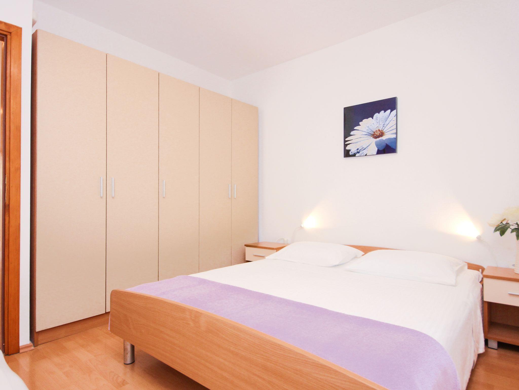 Ferienwohnung bietet Platz für 5 Gäste. Die Betten sind in Schlafzimmern, die es 2 gibt, und in Wohnzimmer, innerhalb einer Gesamtfläche von 51m2, angeordnet. Die Gäste haben eine eigene Terrasse zur Verfügung, auf der sie in warmen Sommernächten genießen können. Das Apartment bietet Meerblick. Es ist erlaubt, Speisen auf dem Gemeinschafts-Grill vorzubereiten. IM PREIS INBEGRIFFEN: Kurtaxe, Endreinigung, Klimatisierung, Garage, Internet, Bootsanlegeplatz, Föhn. Die Verfügbarkeit zusätzlicher Dienstleistungen in Ihrem reservierten Termin und die Preise derselben (falls nicht aufgeführt) müssen im Voraus überprüft werden. Zusätzliche Dienstleistungen die in der Zahlungsaufforderung nicht aufgeführt sind werden direkt beim Vermieter bezahlt, angenommen der Gast nutzt auch diese.