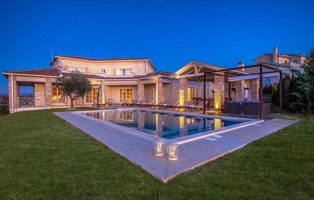 Smukke Villa Star ligger i en lille, malerisk landsby Bajkini i Istrien, som på grund af sin geografiske beliggenhed tiltrækker både naturelskere og dem, der sætter pris på kvalitetsvin og lækker mad. Med sit elegante ydre og indre er Villa Star et ideelt valg for dig, der ønsker at nyde en ferie i fuldstændig privatliv og omgivet af smuk natur. Villa Star har 4 rummelige soveværelser med dobbeltsenge, 4 smukt indrettede badeværelser og separat toilet. Et charmerende fuldt udstyret køkken er forbundet med en smuk spisestue, hvor alle gæster kan samles. Den rummelige stue åbner ud til den smukke stenterrasse, som byder på en fantastisk udsigt over de nærliggende vinmarker. I Villa Stars smukt anlagte have er der en stor swimmingpool (66 m²), hvor du kan tage en forfriskende dukkert hver dag, mens en vidunderlig udendørs jacuzzi er tilgængelig for din afslapning. Gratis WiFi-signal er tilgængeligt i hvert hjørne af det indendørs og udendørs område af denne fuldt airconditionerede villa. Med et boligareal på 480 m² ligger Villa Star på en 1400 m² stor grund og tilbyder sine gæster absolut alt: luksus, smuk natur, sjov og i sidste ende - en velfortjent ferie. Inden for gåafstand fra villaen ligger den berømte Arman Winery og i umiddelbar nærhed er nogle af de bedste vingårde, som enhver ægte vinelsker bør besøge. Der findes kvalitetsrestauranter, markeder og barer i Vižinada, kun 3 km fra villaen. De større byer Porec og Novigrad er 10 minutters kørsel væk, mens kun 5 minutters kørsel fra villaen ligger en smuk middelalderby kaldet Motovun, kendt for filmfestivalen, der afholdes hver juli. Tilbring din ferie i Villa Star, lad dig blive forkælet og oplev det rige gastronomiske og turistmæssige tilbud i denne smukke region Istrien. Bemærk venligst, at denne ejendom kun accepterer ungdomsgrupper eller polterabender mod betaling af et refunderbart depositum. En ungdomsgruppe i denne ejendom består af personer under 30 år. Er I en ungdomsgruppe eller polterabend, vil I blive bedt om at betale depositum ved ankomst. Ethvert beløb, der kræves for at reparere eventuelle skader på boligen forårsaget af dig under dit ophold, vil blive trukket fra depositumet og derefter returneret til dig.