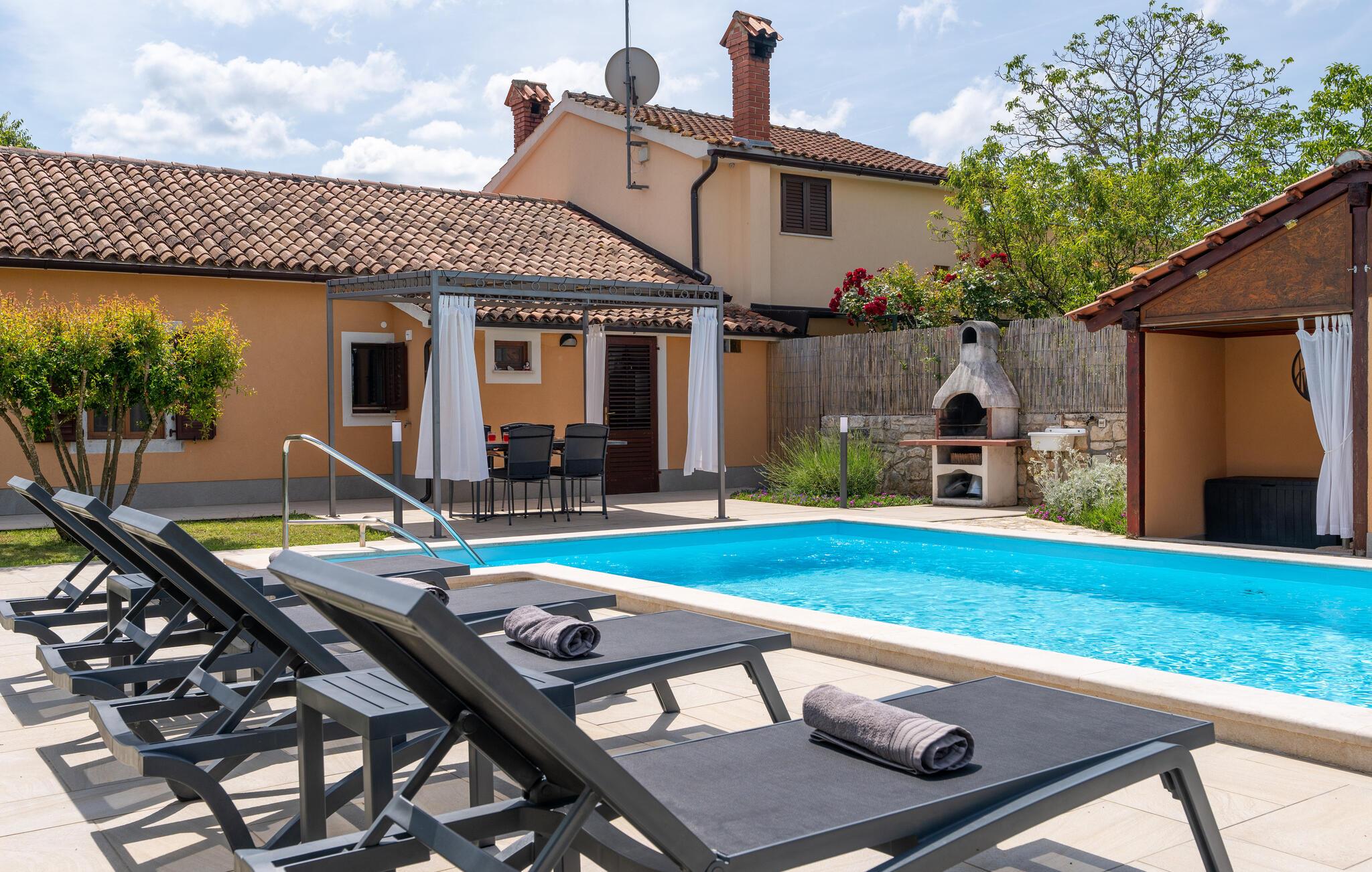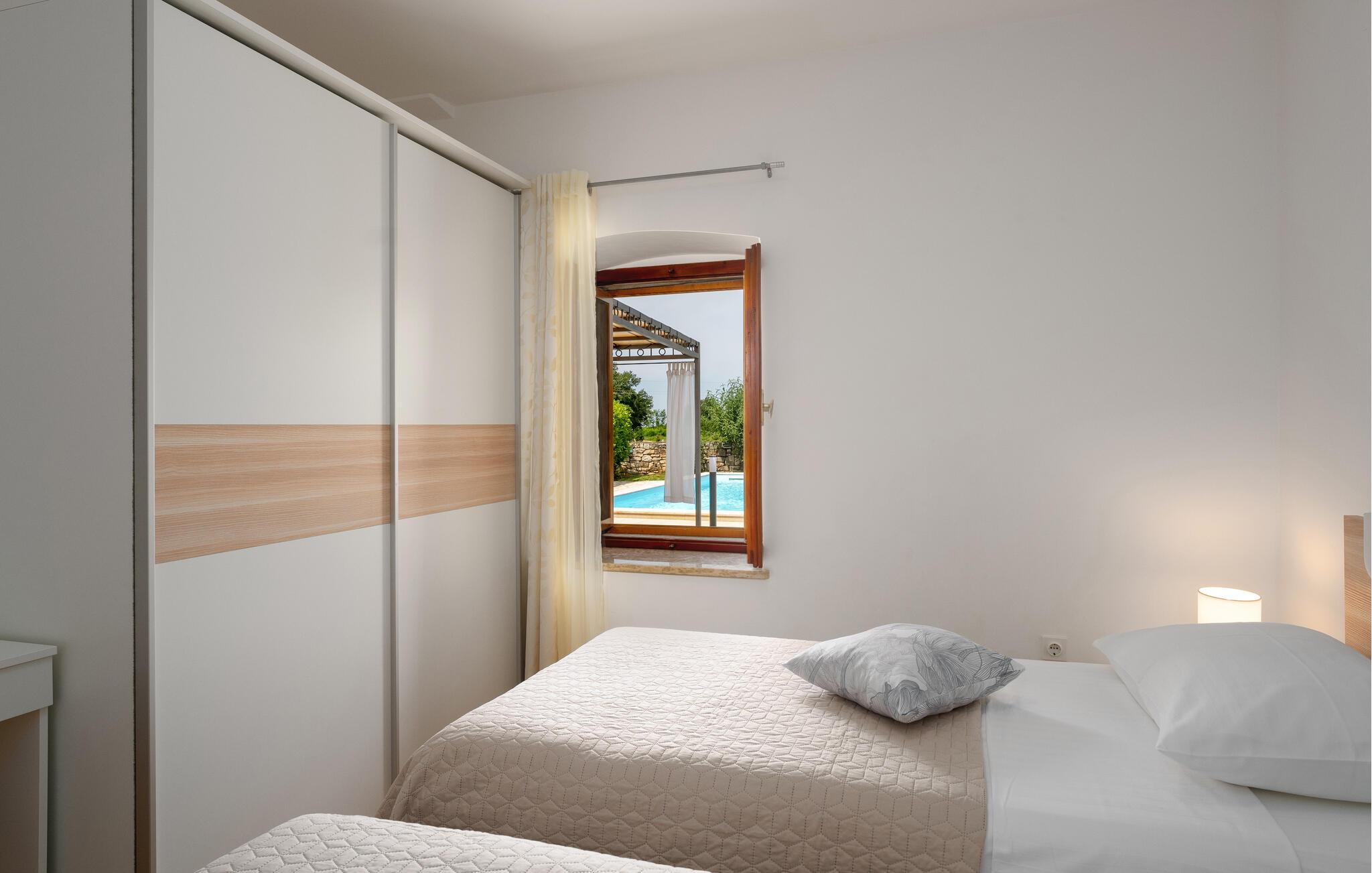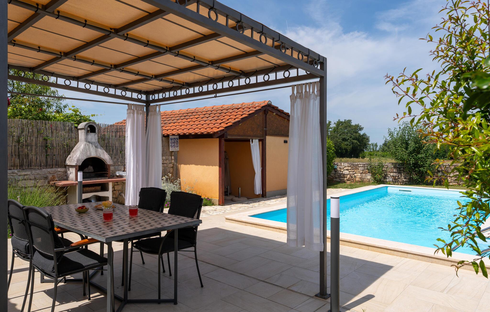Casa Pina er et charmerende feriehus beliggende i den lille landsby Dvori nær Kastelir. Huset er renoveret i 2016, indrettet for det meste med nye møbler og har en dejlig have med privat swimmingpool, pejs til grill, 2 terrasser med borde og stole til udendørs ophold og 2 parkeringspladser. Butikker, pizzeria, typiske værtshus, hæveautomat, kaffebar og andre faciliteter er kun få minutter væk med bil. Casa Pina er et feriehus (halvt dobbelthus) i stueetagen til 4 gæster med et samlet boligareal på 65 kvm. Den består af en stue med aircondition med sovesofa til to, åbent køkken med spisebord, et dobbeltværelse med aircondition og en dobbeltseng, et dobbeltværelse med aircondition og to separate enkeltsenge, bad/toilet og bad/toilet. Bemærk venligst, at denne ejendom ikke accepterer ungdomsgrupper eller polterabends. En ungdomsgruppe på denne ejendom er en gruppe bestående af personer på 26 år eller derunder. Book ikke denne ejendom, hvis du er en ungdomsgruppe eller et polterabend, da din reservation vil blive afvist efter booking, hvilket kan omfatte ved ankomst til ejendommen eller under dit ophold, og du vil ikke blive refunderet.