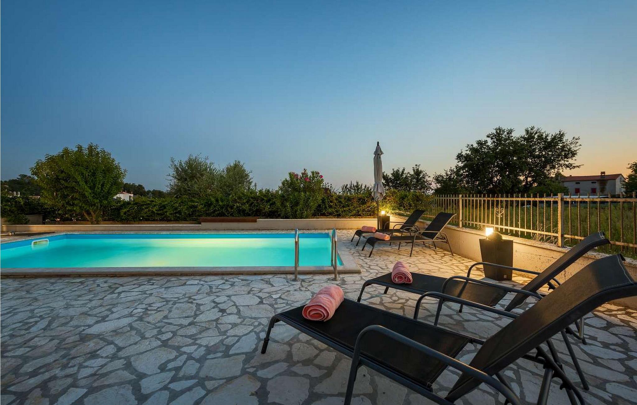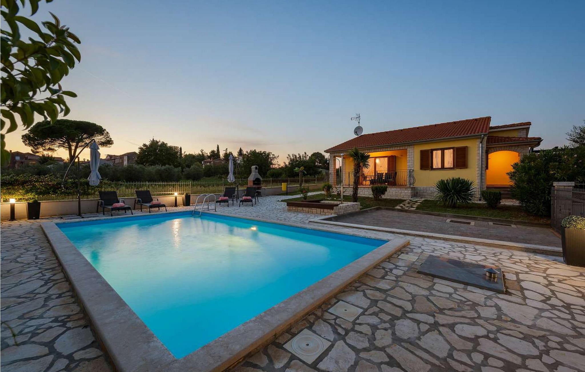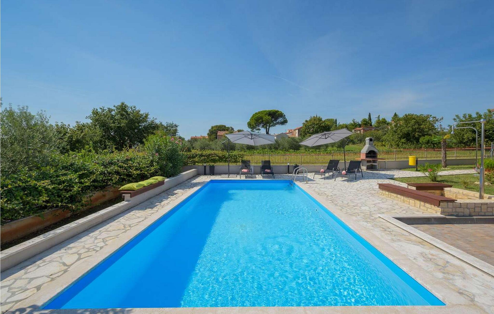Villa Bali er et komfortabelt et-etagers hus beliggende i udkanten af landsbyen Kastelir, kun 11 km fra Porec og 10 km fra stranden i turistbyen Lanterna væk. Byggeriet af huset begyndte i 2007 og stod færdigt i 2016. På egen lukket grund på 776 kvm råder villaens gæster over en udendørs pool på 32 kvm, liggestole og parasoller, legeplads og to parkeringspladser. steder. Sommerhus til 4 gæster med et samlet boligareal på 110 kvm består af en airconditioneret stue med en to-gæstes sovesofa og adgang til terrassen og poolen, udstyret køkken med spisebord, to airconditionerede dobbeltværelser heraf en med udgang til terrasse, bad/toilet. Bemærk venligst, at denne ejendom ikke accepterer ungdomsgrupper eller polterabends. En ungdomsgruppe på denne ejendom er en gruppe bestående af personer på 26 år eller derunder. Book ikke denne ejendom, hvis du er en ungdomsgruppe eller et polterabend, da din reservation vil blive afvist efter booking, hvilket kan omfatte ved ankomst til ejendommen eller under dit ophold, og du vil ikke blive refunderet.