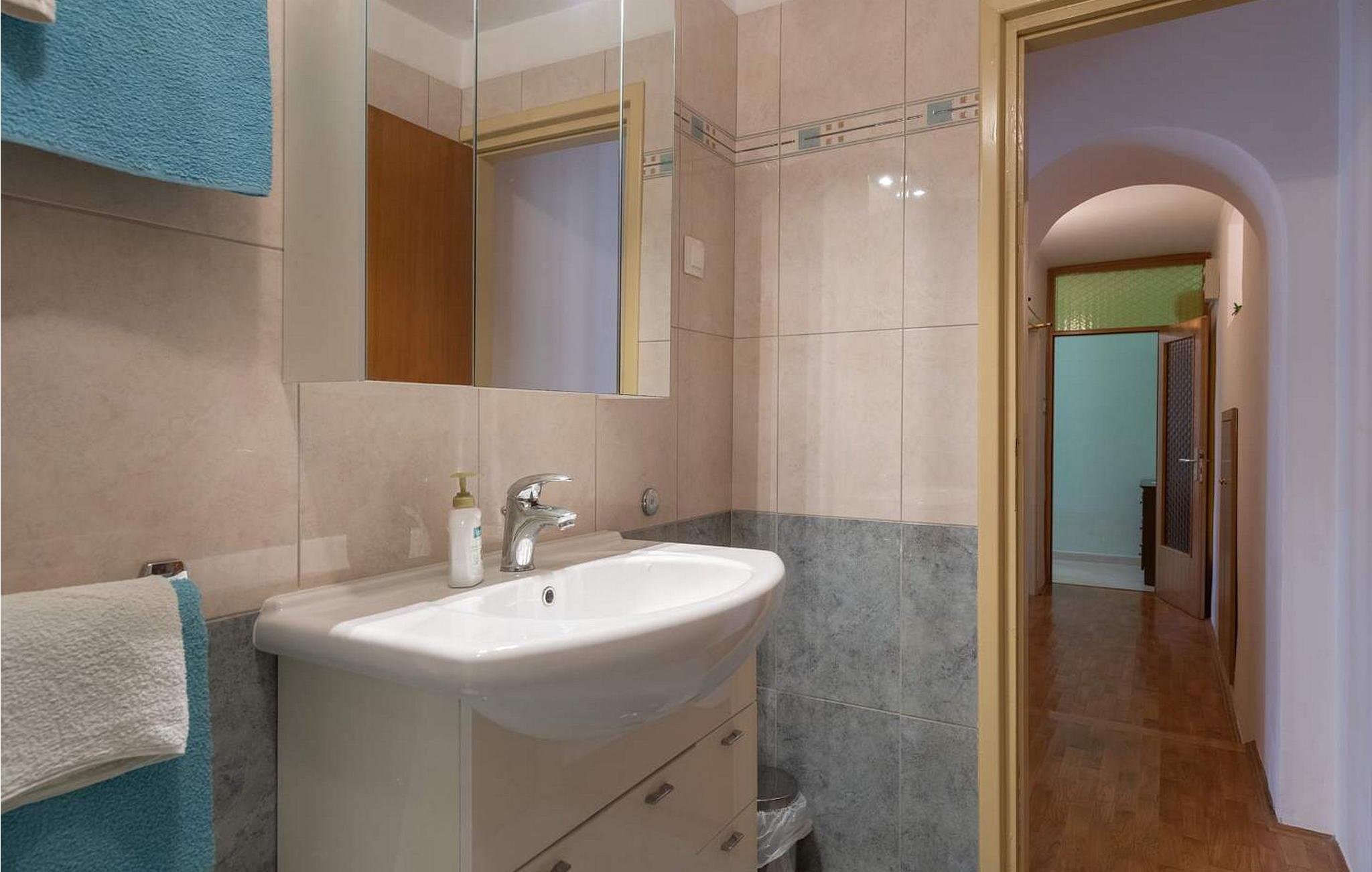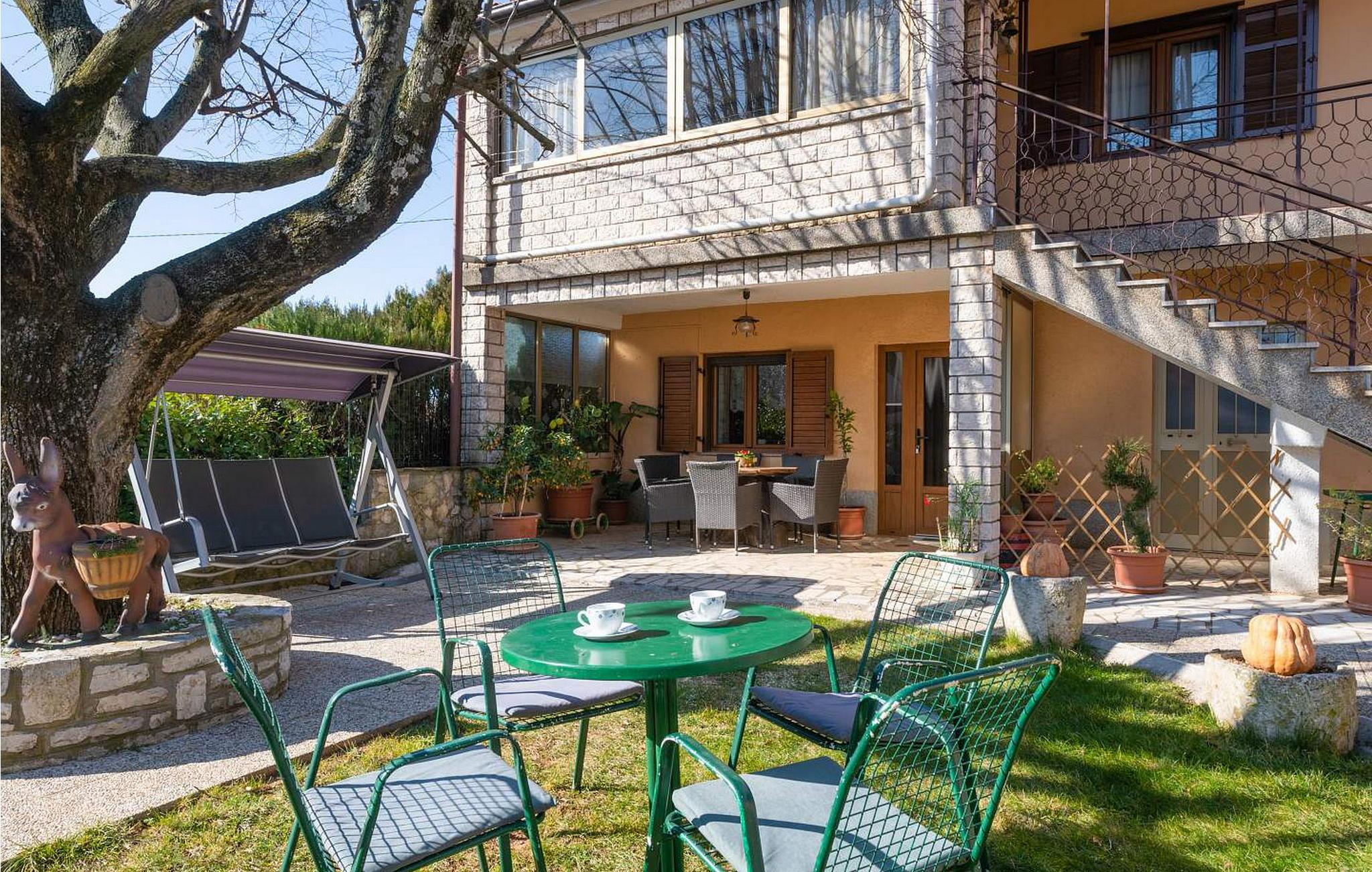 Oplev Apartment Jordan, et charmerende tilflugtssted kun 6 km fra havet, perfekt til din ferie i Kroatien. Beliggende på første sal i et familiehus, tilbyder denne lejlighed en privat terrasse med spisebord, ideel til udendørs spisning, og en velholdt have, hvor du kan slappe af og nyde solskinnet. Inden for få minutters gang finder du en butik, en traditionel istrisk taverna og en café, hvor du kan lære den lokale kultur og køkken at kende. Den pulserende by Porec, med sin rige historie og smukke kystlinje, ligger kun 14 km væk og byder på rige muligheder for udforskning og nydelse. Lejlighedens bekvemme beliggenhed i landsbyen Kaštelir bringer dig også tæt på det maleriske Labinci, et charmerende sted kendt for sine fredelige landskaber og autentiske istriske atmosfære. Uanset om du vil slappe af i Kaštelirs rolige omgivelser eller begive dig ind i Porecs pulserende kulturelle scene, tilbyder Apartment Jordan en komfortabel og indbydende base for dit ferieeventyr. Bemærk venligst, at denne ejendom ikke accepterer ungdomsgrupper eller polterabender. En ungdomsgruppe på denne ejendom består af personer på 26 år eller derunder.
