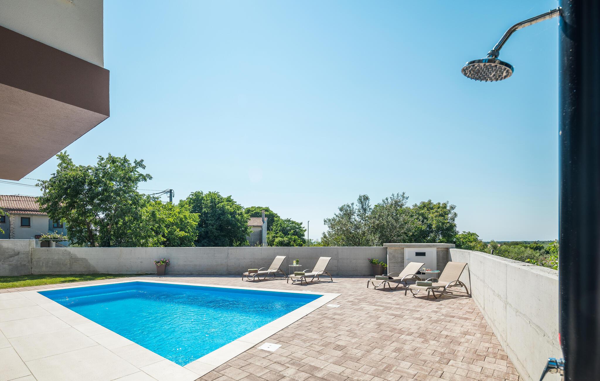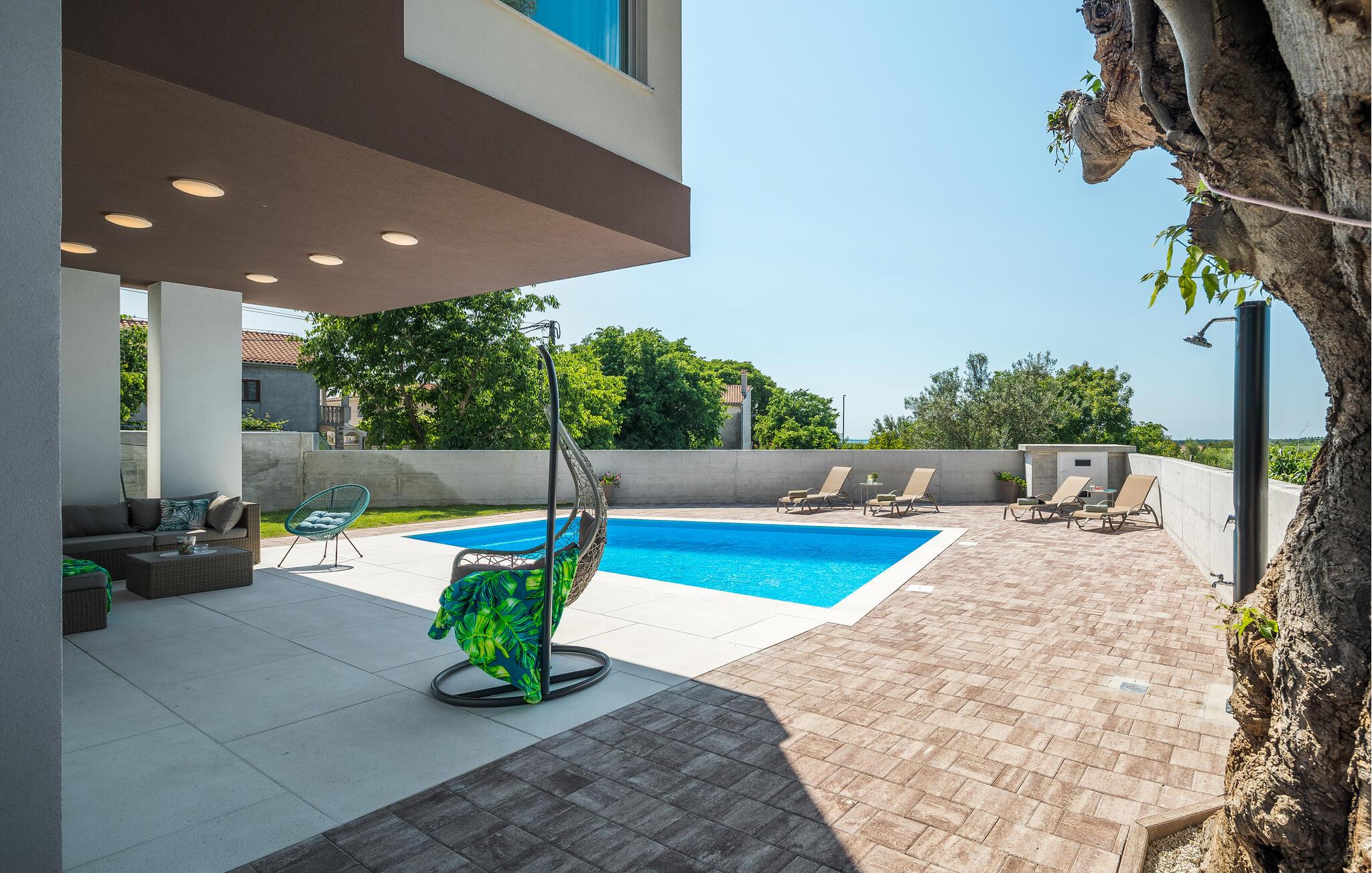 Tag en forfriskende dukkert i poolen, når I har lyst eller nyd et sjovt spil vandpolo med børnene. Nyd solen eller læs i den behagelige hængestol i skyggen af ??solen. I det dejlige loungeområde kan I nyde afslappende timer med en kølig drink og slappe af ved dagens afslutning.