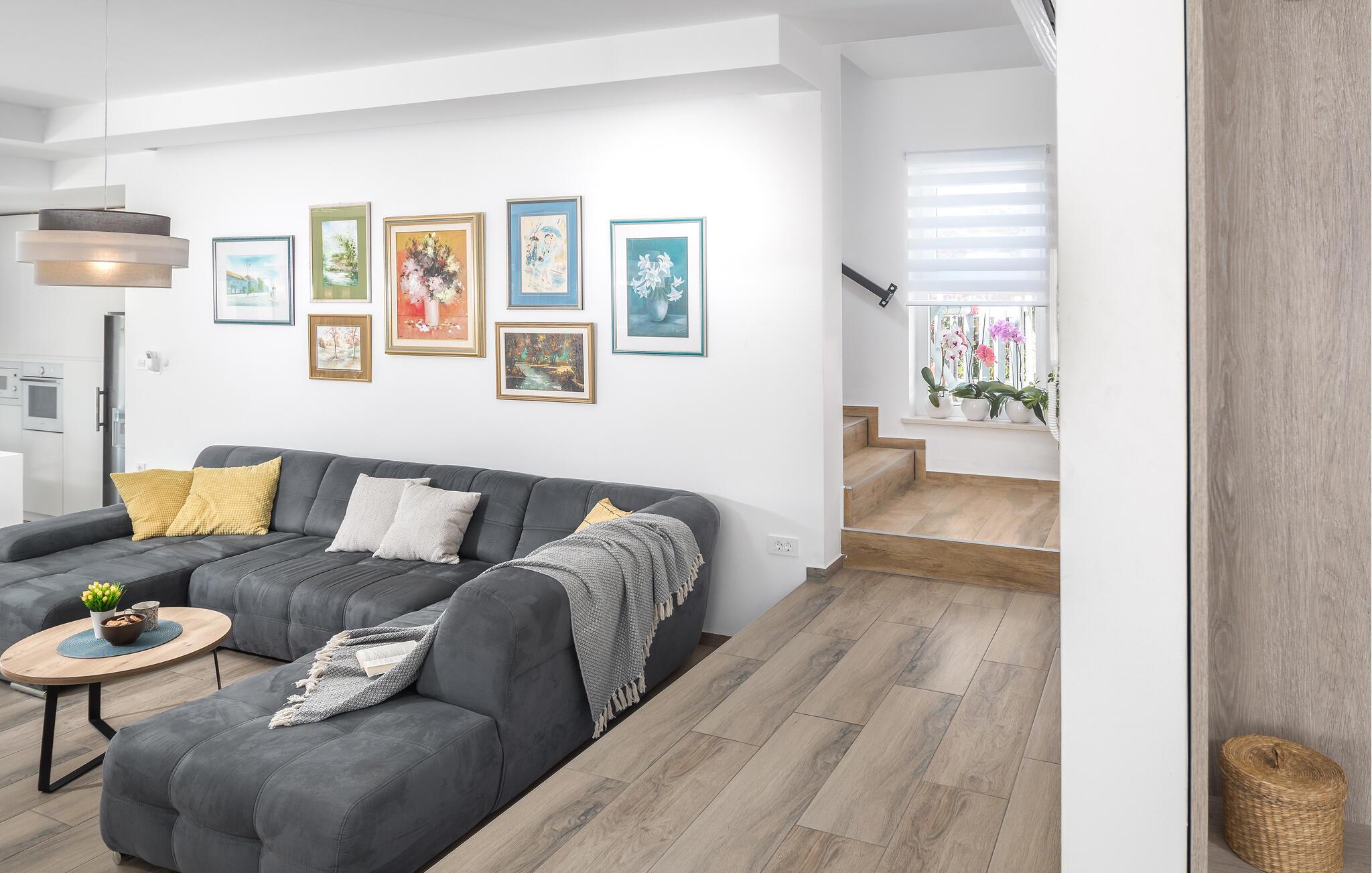Dette moderne hus er perfekt til en pause fra den travle hverdag. Lyse værelser, masser af plads til at slappe af og omhyggeligt udvalgte detaljer skaber en atmosfære, hvor I vil føle jer hjemme. Snak over en kop kaffe i sofaen, tilbring en hyggelig eftermiddag med at spille bræt- og kortspil eller prøv nye opskrifter i køkkenet.