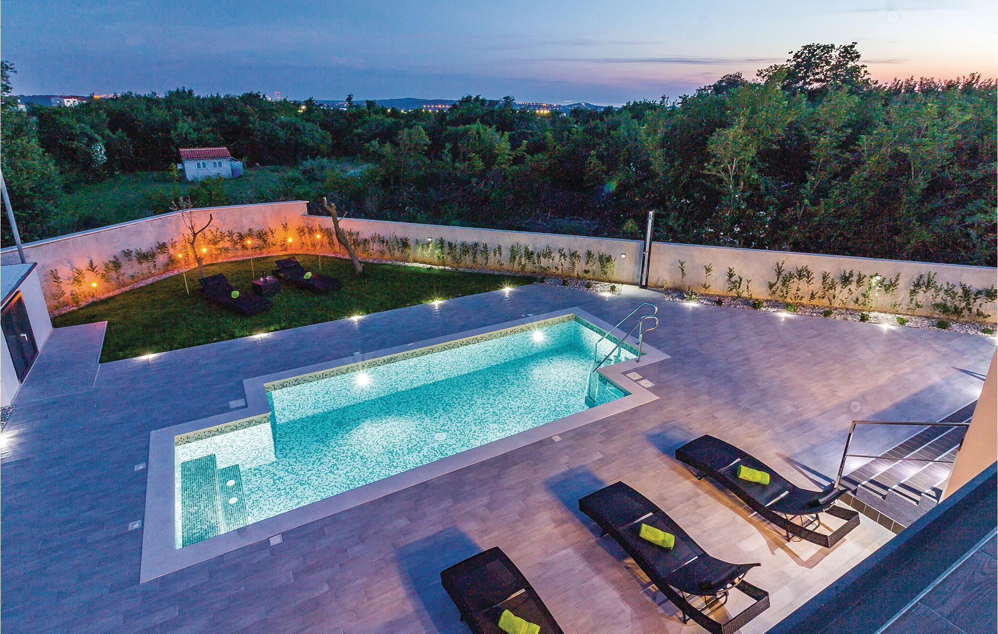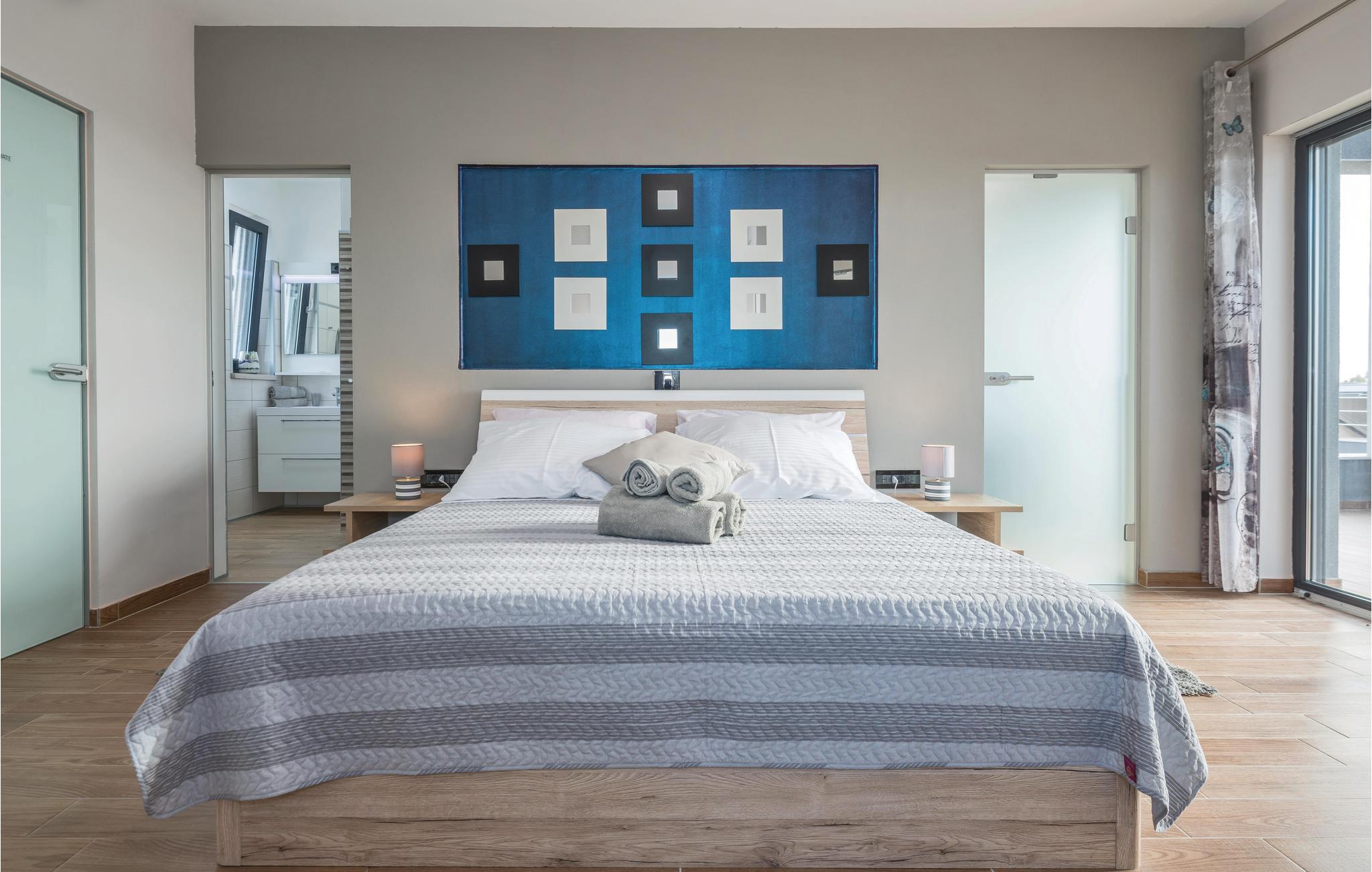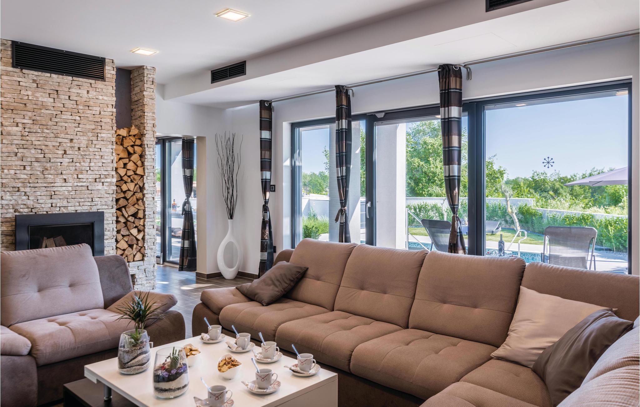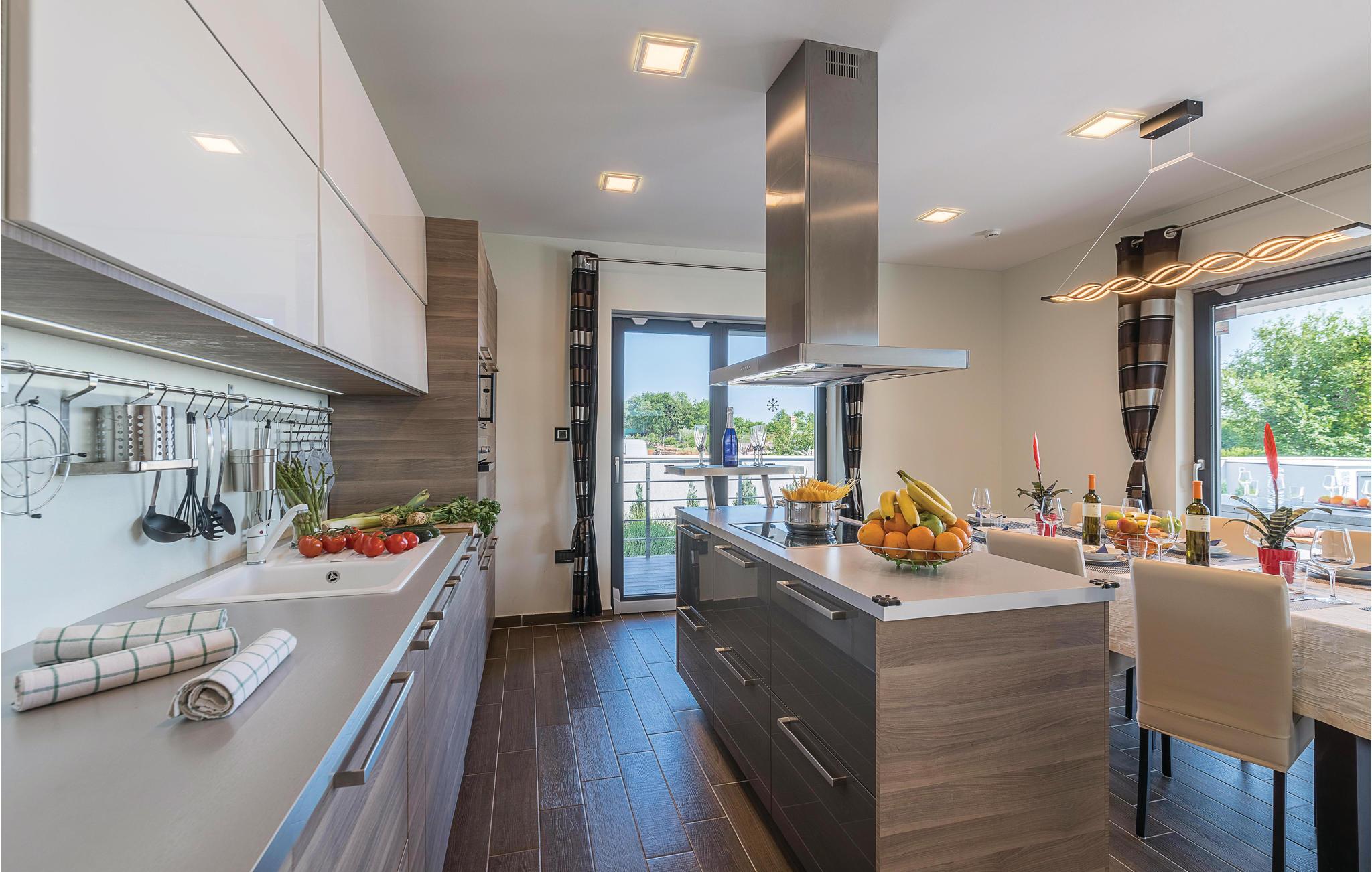 I Galižana, ikke langt fra Pula, ligger dette moderne og indbydende feriehuse. De store vinduer lukker masser af lys ind og giver en charmerende feriestemning. Indretningen er smagfuld og komfortabel. Til hvert soveværelse hører eget badeværelse, hvad der giver en høj grad af ugenerthed. Tagterrassen er lukket af og kan ikke benyttes. Vælg mellem whirlpoolen og swimmingpoolen når der skal slappes af i vandet. Smut en tur til Pula, i hvis gamle bydel der er mange seværdigheder fra romertiden. Her er også mange former for sommerunderholdning for alle aldersklasser. Gå heller ikke glip af et besøg i Nationalpark Brijuni-øerne, hvis naturskønhed vil fortrylle jer. Alene turen i båd er en oplevelse helt for sig selv.