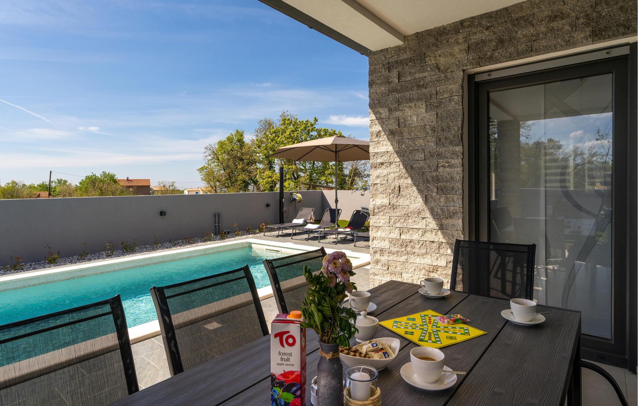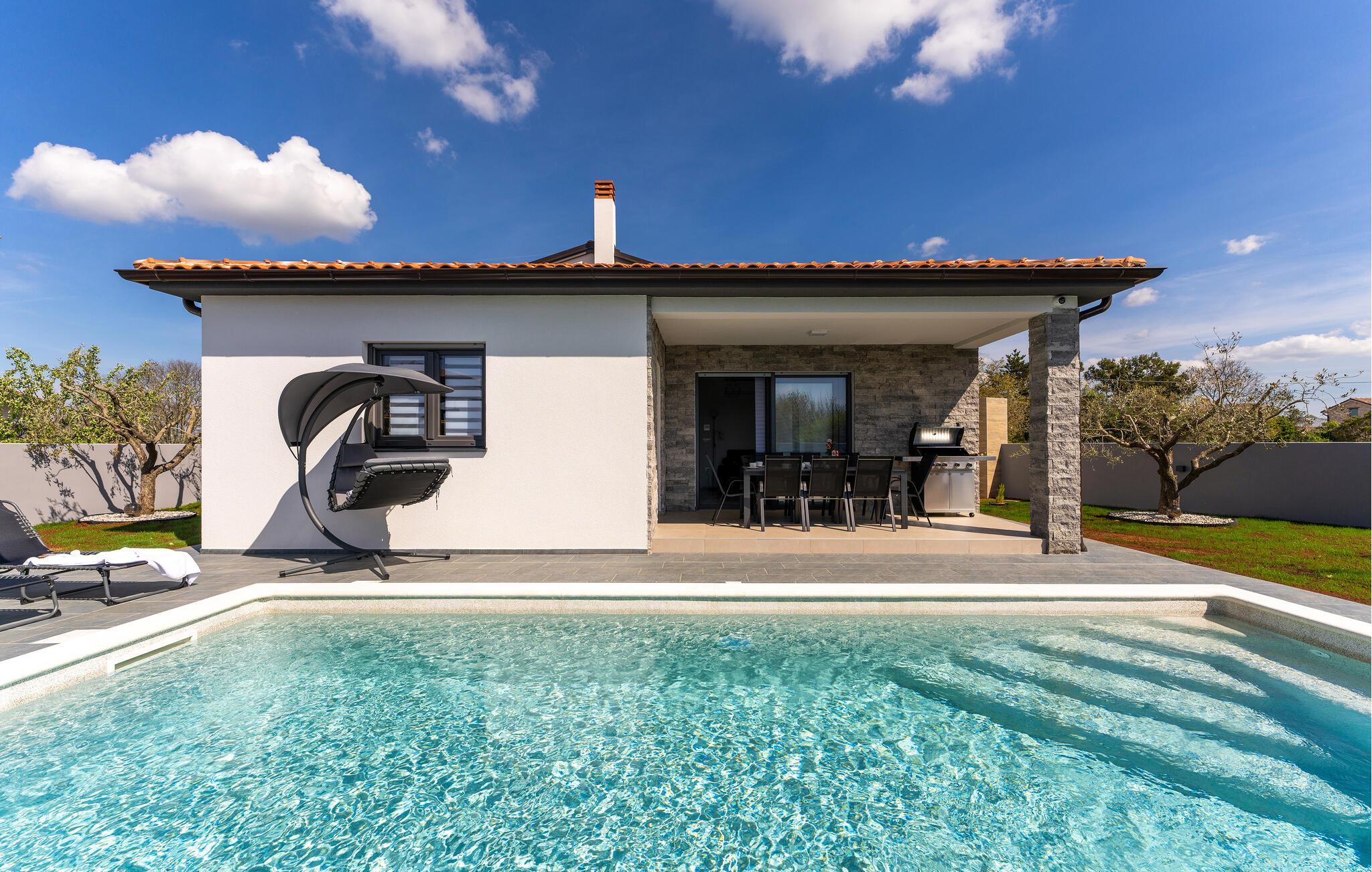 Tilbring en skøn ferie i dette stilfulde feriehus med pool.