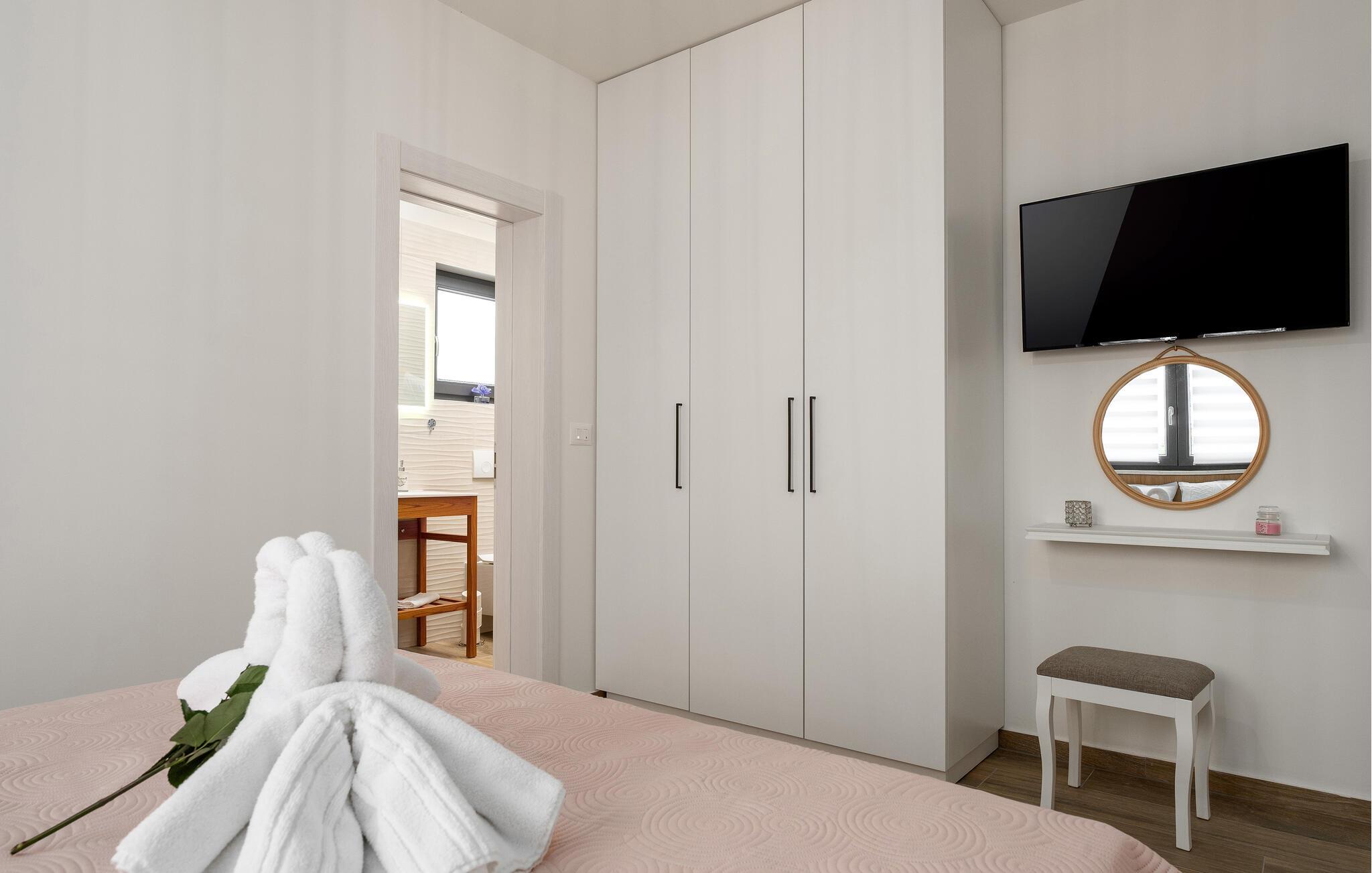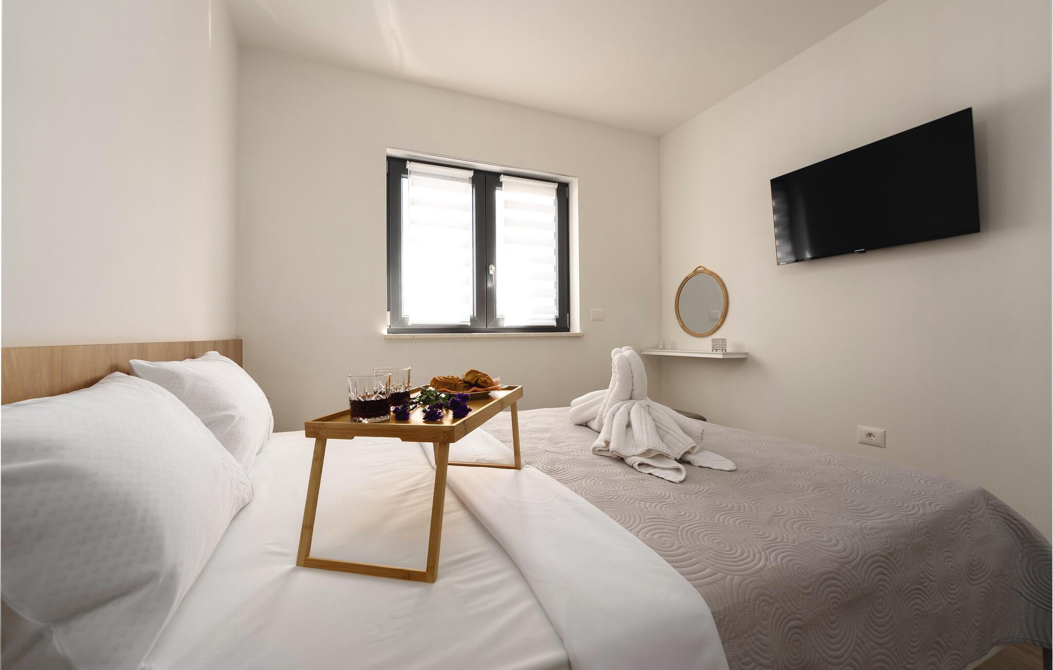 Den charmerende by Vodnjan med sine historiske gader og olivenoliefabrikker ligger blot et par kilometer væk. Udforsk den pulserende by Pula med dets berømte amfiteater eller besøg de idylliske strande i Fažana. En sejltur til Brijuni-øerne eller vandreture gennem Istriens uberørte natur vil også gøre jeres ferie uforglemmelig.