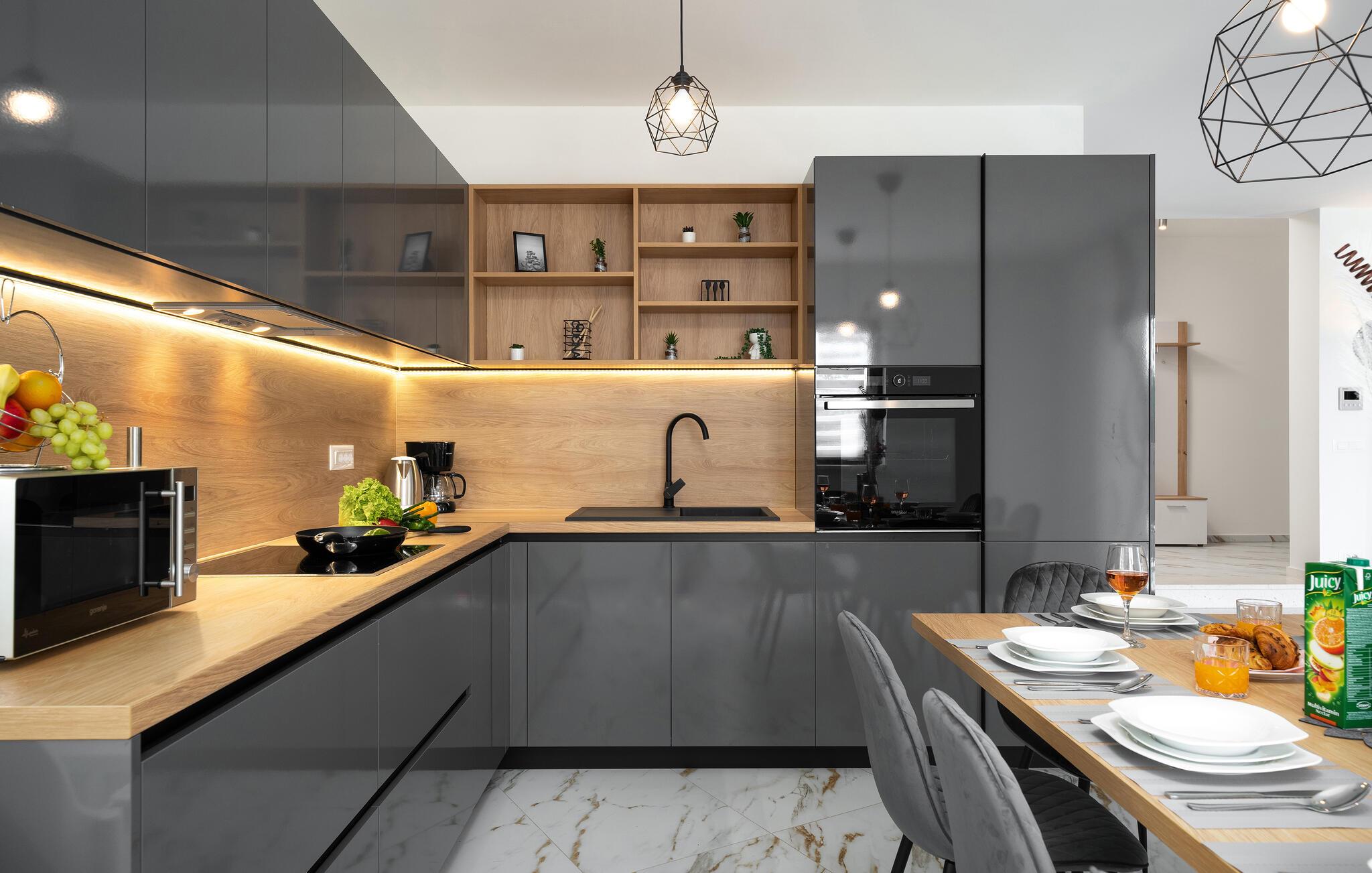 Glæd jer til afslappende dage i dette komfortable feriehus, som vil forkæle jer med moderne elegance og smagfuld hygge. Lav mad i en hyggelig atmosfære i det rummelige køkken og nyd dagens måltider ved det komfortable spisebord. Slap af i den komfortable sofa og stream en god serie eller en spændende film.