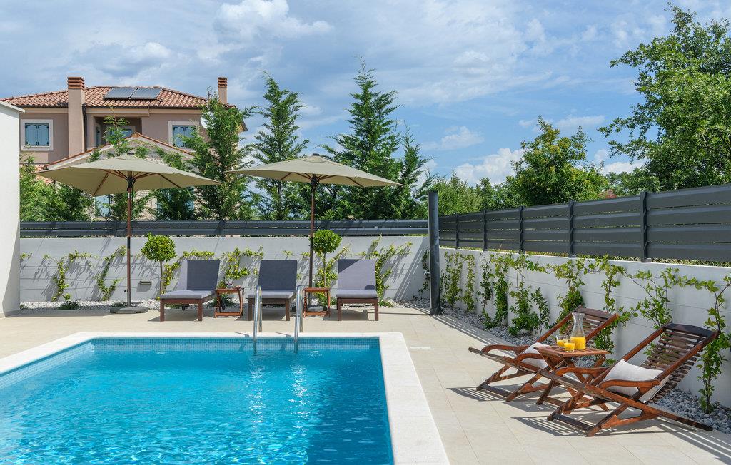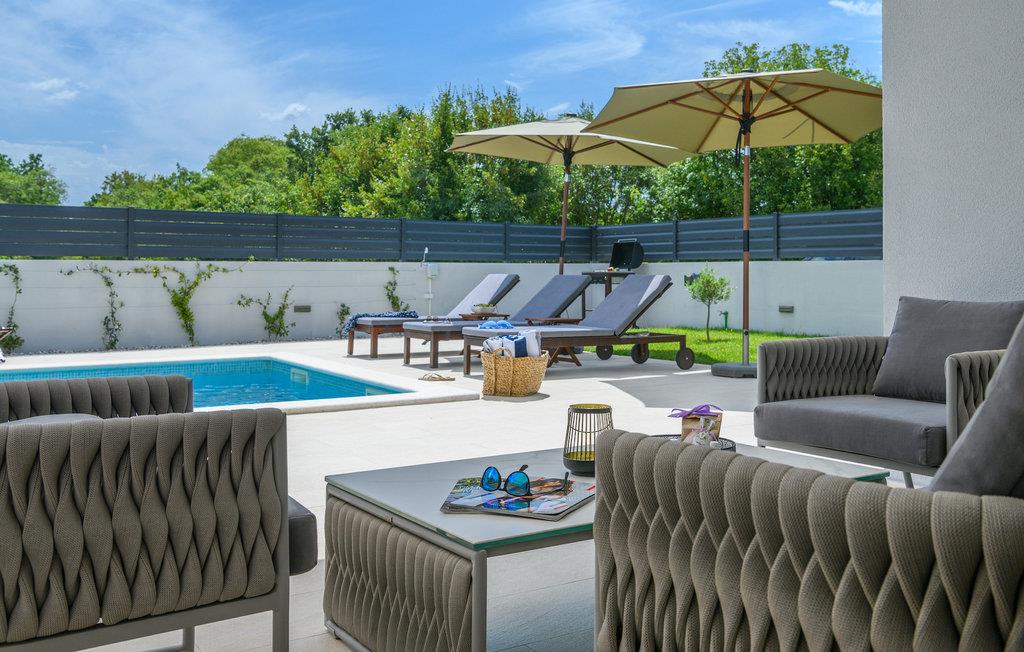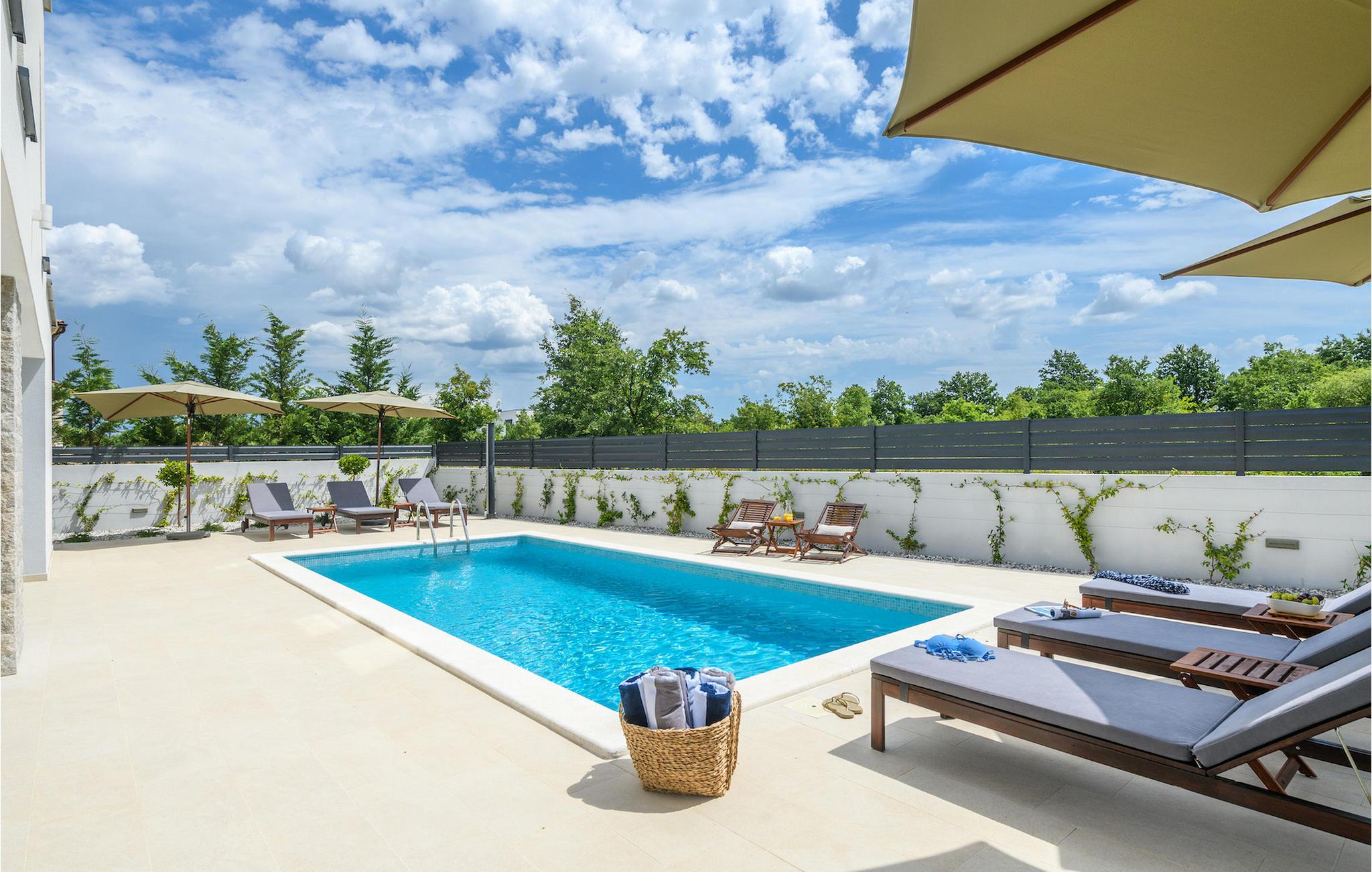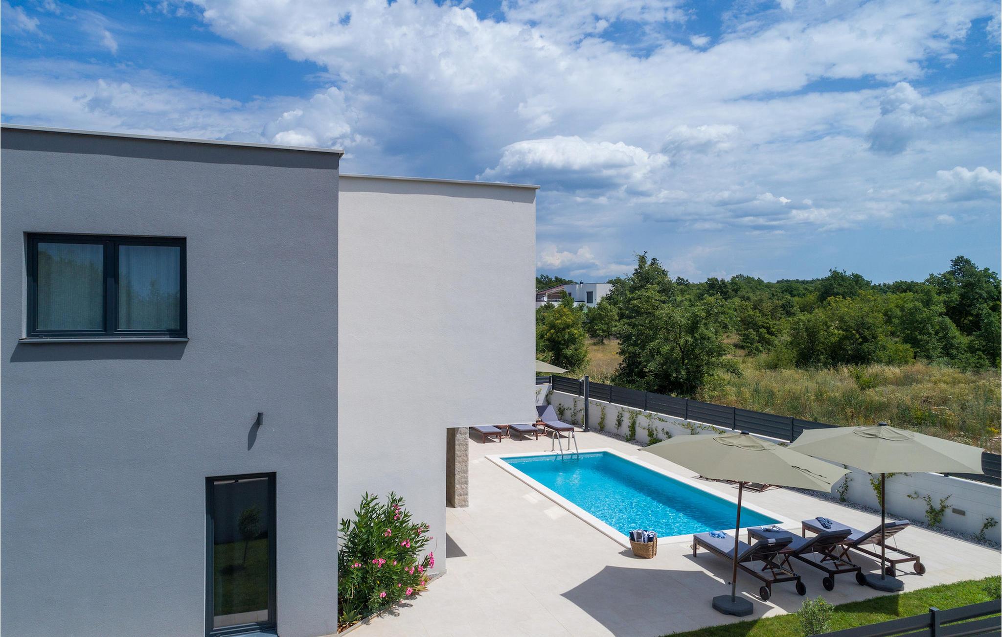 I den udvendige del af villaen finder du en privat pool, som vil give den nødvendige forfriskning på varme sommerdage. Slap af på liggestolene, der er til rådighed omkring poolen, og nyd den naturskønne udsigt over den istriske natur!