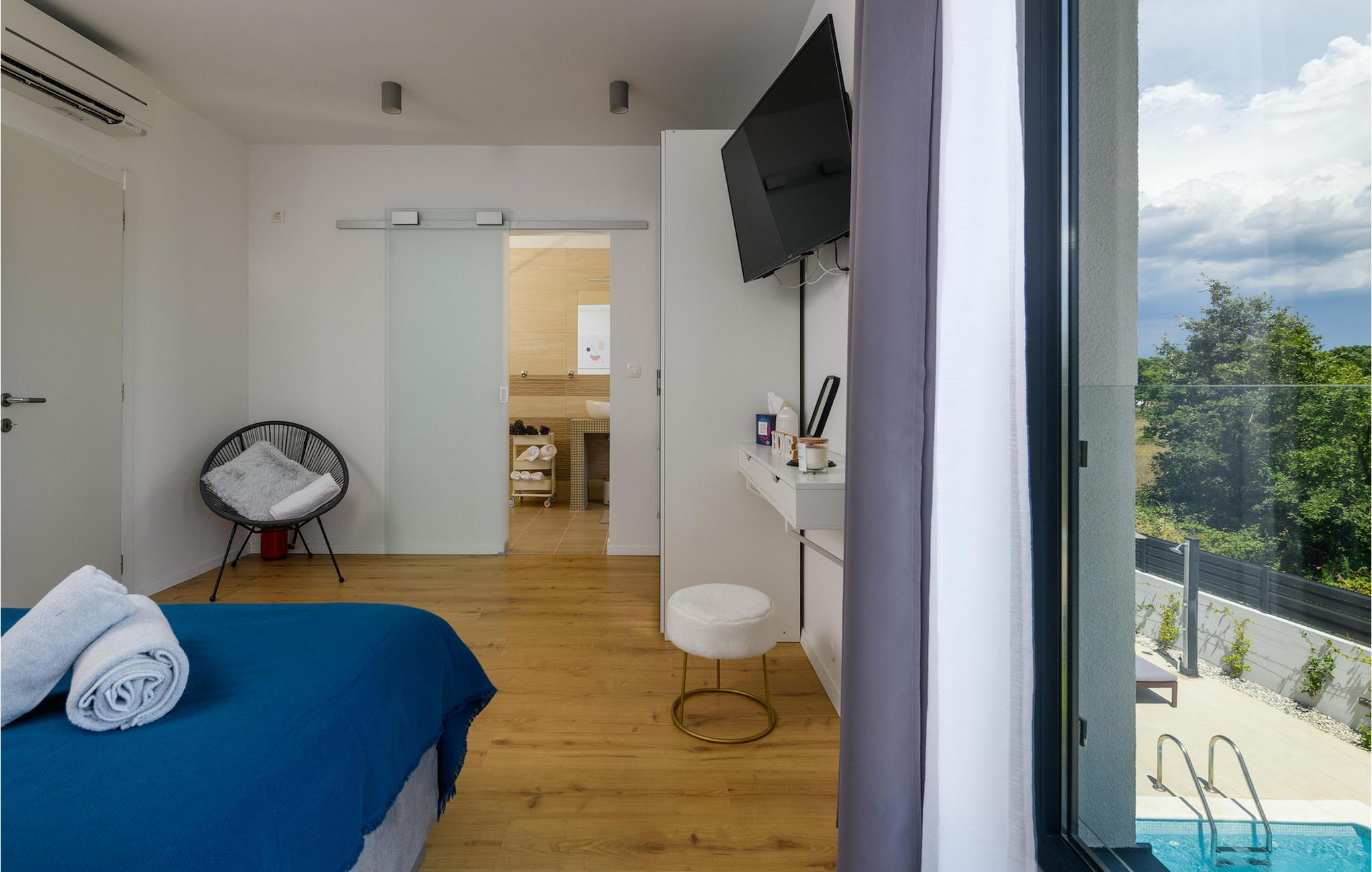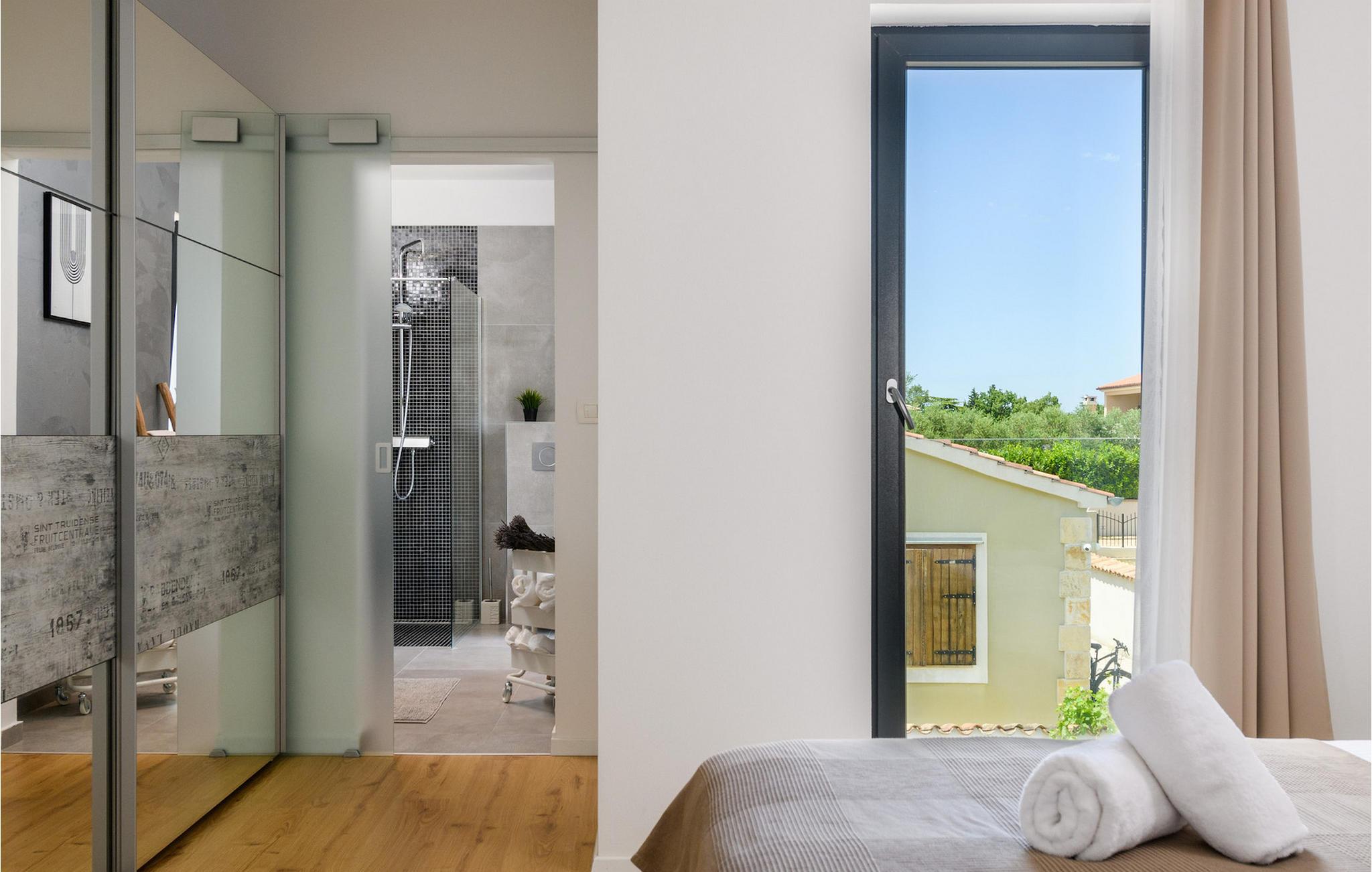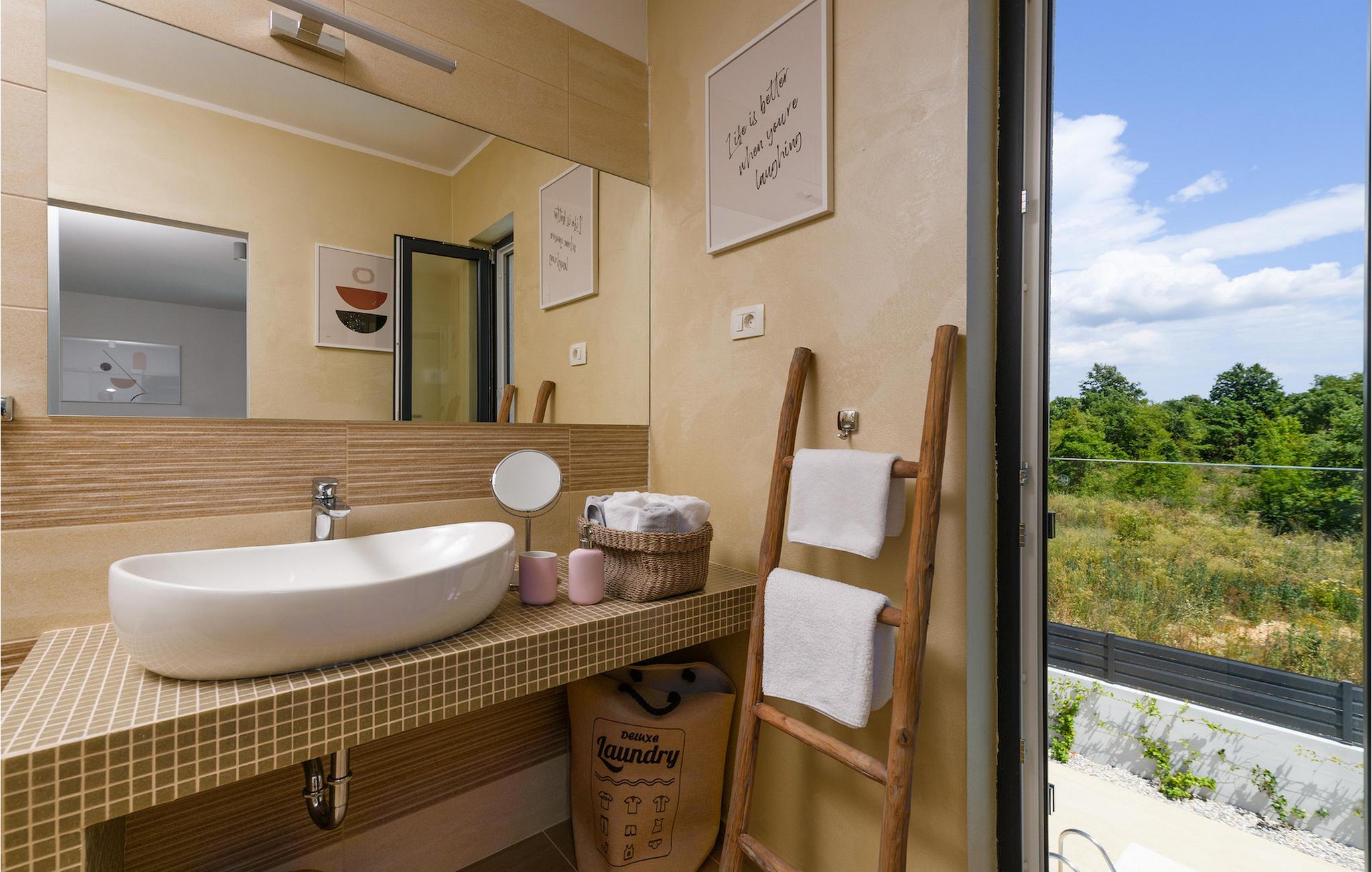 I den udvendige del af villaen finder du en privat pool, som vil give den nødvendige forfriskning på varme sommerdage. Slap af på liggestolene, der er til rådighed omkring poolen, og nyd den naturskønne udsigt over den istriske natur!