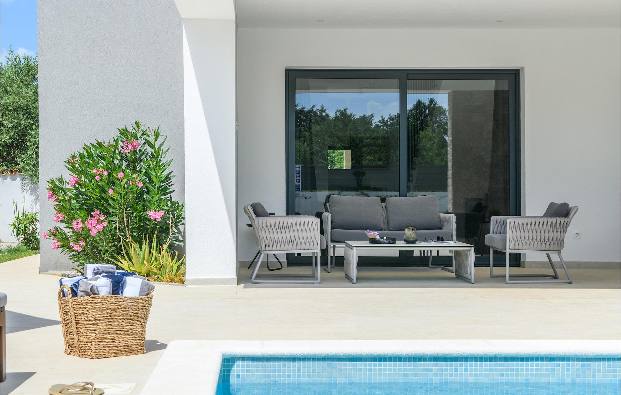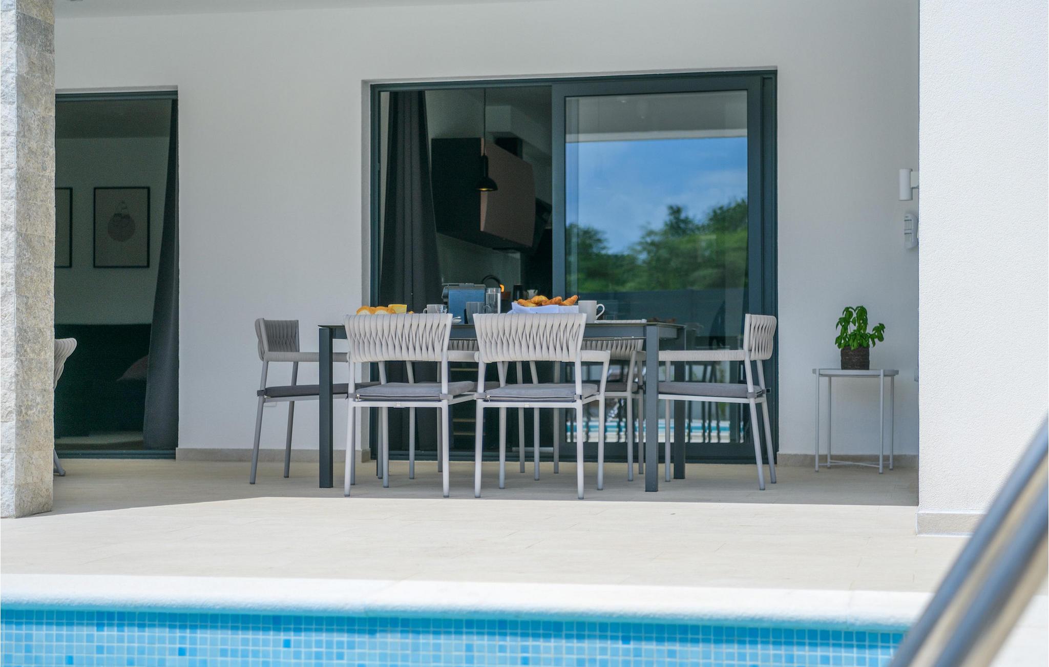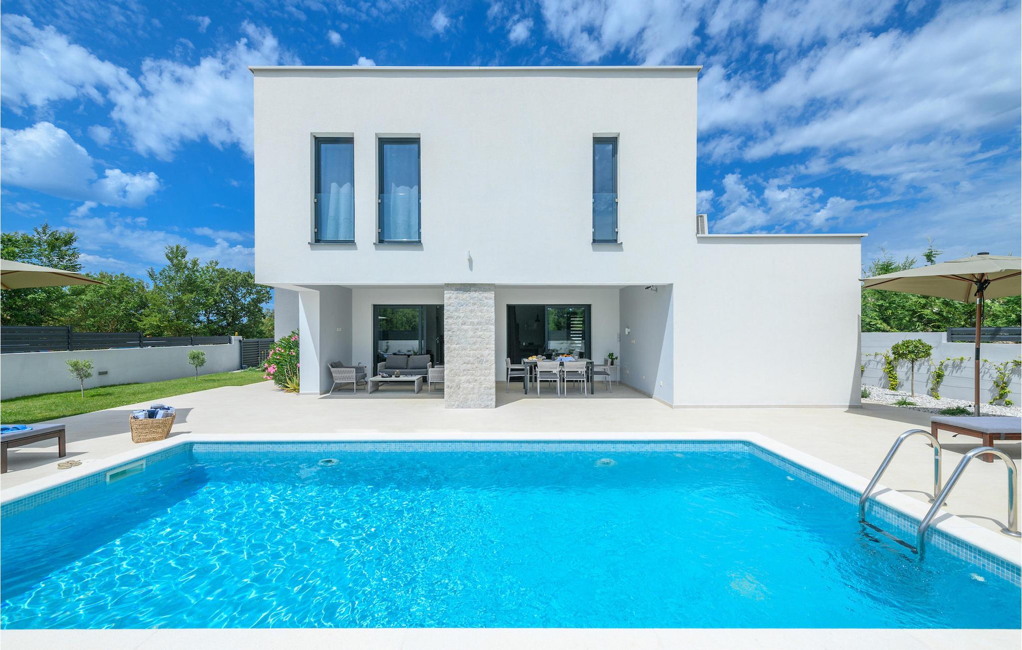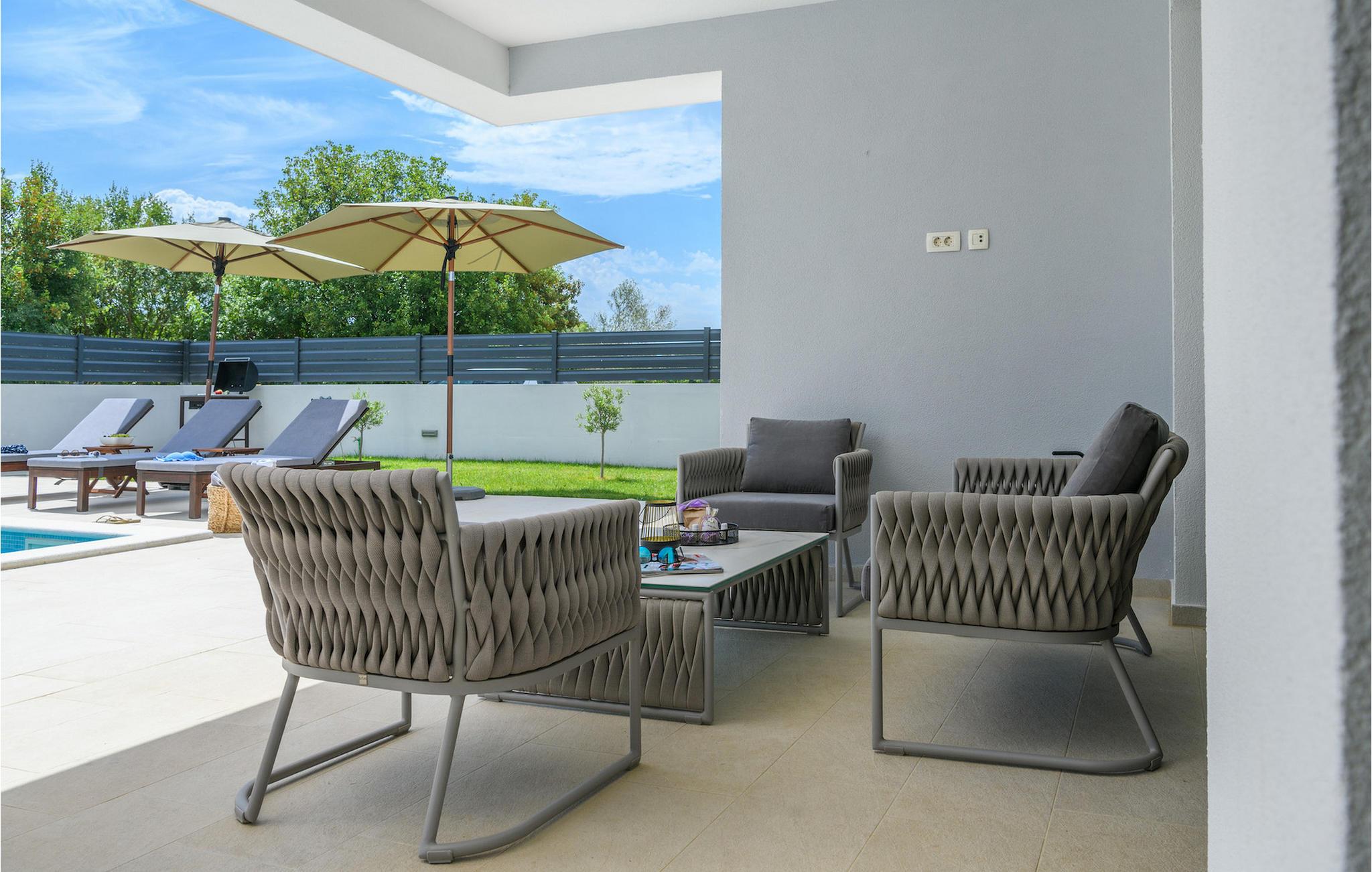 Villa Luz er et moderne feriehus i Istrien, der er bygget i en unik stil og er et rigtigt blikfang. Det kan rumme op til otte personer og har tre soveværelser, en stue og et køkken med en tilstødende spiseplads.