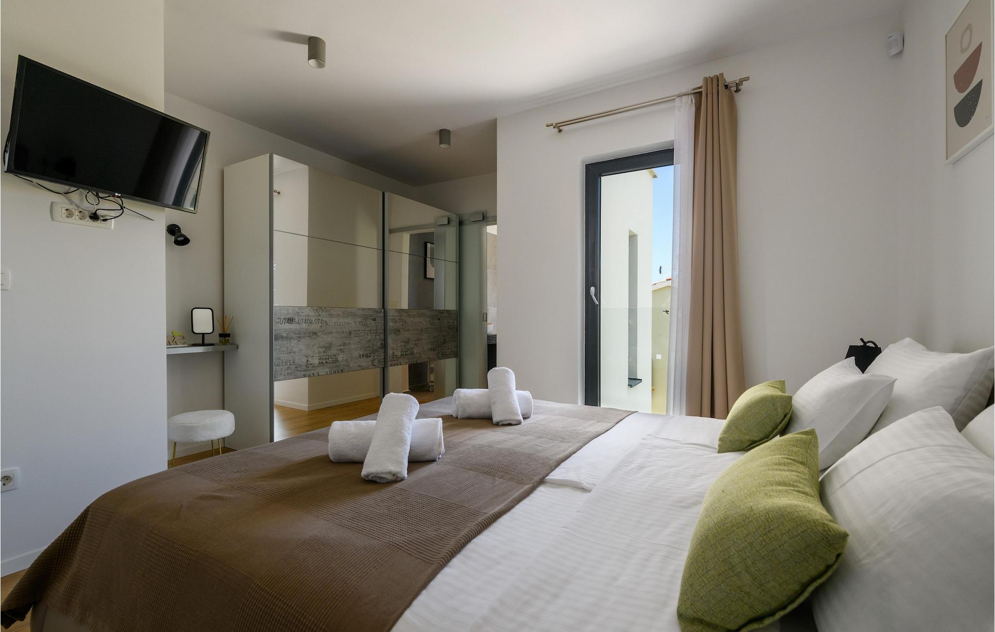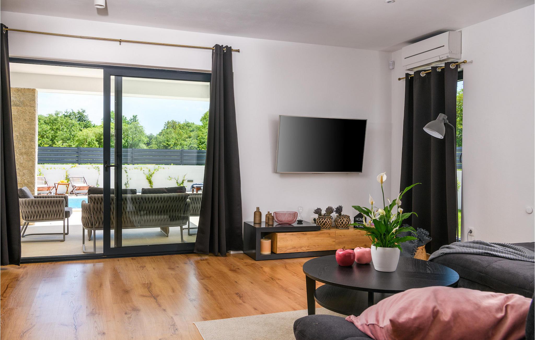 Lige ved siden af poolen er der en overdækket terrasse med en grill, hvor du kan sætte dine kulinariske færdigheder på prøve og prøve de mange lokale delikatesser. Dart og bordtennis vil sikre yderligere underholdning og sjov. Villaen har to private parkeringspladser og er helt lukket, hvilket giver dig ekstra sikkerhed. Book den charmerende villa Luz og tilbring uforglemmelige øjeblikke i det smukke Kroatien! Landsbyen Jursici ligger i kommunen Svetvincenat i den sydlige del af det centrale Istrien. Pula, den største og vigtigste by i Istrien, ligger kun 15 km fra Jursici. Her finder du et fremragende udvalg af restauranter og attraktive indkøbsmuligheder. Gå en tur gennem Pula og oplev gaderne og pladserne i den gamle bydel, hvoraf nogle kan dateres tilbage til romertiden. Amfiteatret stammer fra det 1. århundrede og er et af de seks største overlevende romerske amfiteatre i verden. Omkring 30 km fra landsbyen Jursici ligger Rovinj, et af de smukkeste og mest luksuriøse kroatiske feriesteder. Byen kan prale af 1700 års historie og er en ægte arkitektonisk perle. Når du besøger Istrien, bør du bestemt prøve dets uimodståelige kulinariske tilbud. Trøfler, fuži (traditionel istrisk pasta), pršut (røget skinke), gedeost eller maneštra (traditionel istrisk grøntsagsgryderet) er blot nogle få af de mange lokale specialiteter, som du ikke bør gå glip af. Den første strand kan findes i Fazana, som ligger 15 km væk fra Jursici.