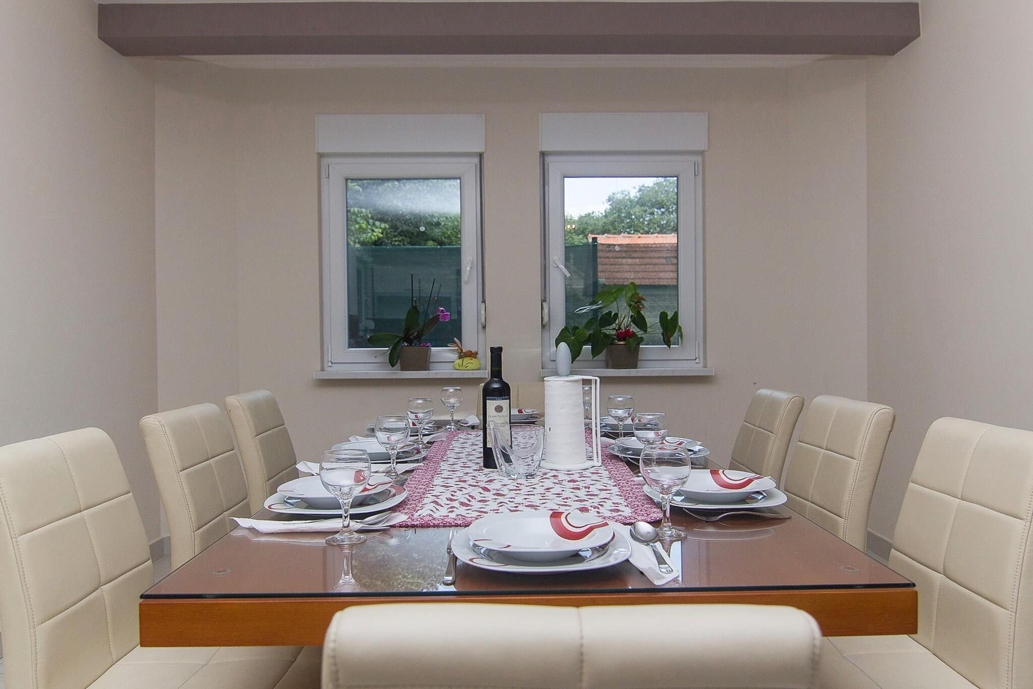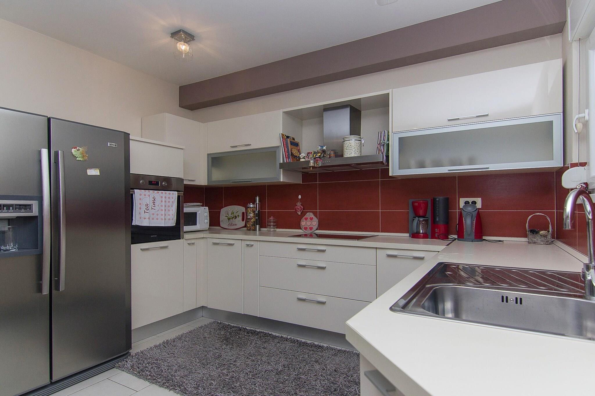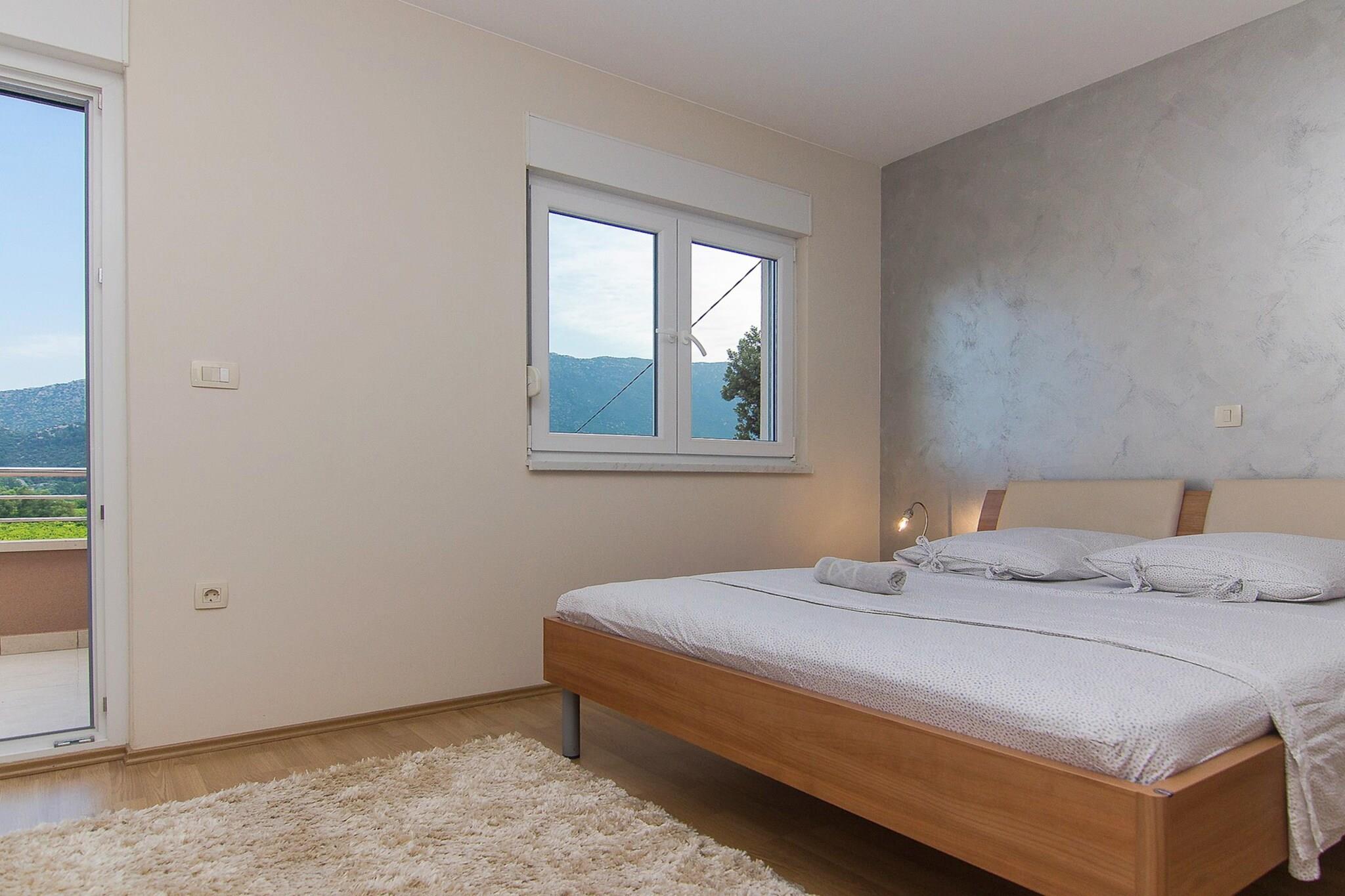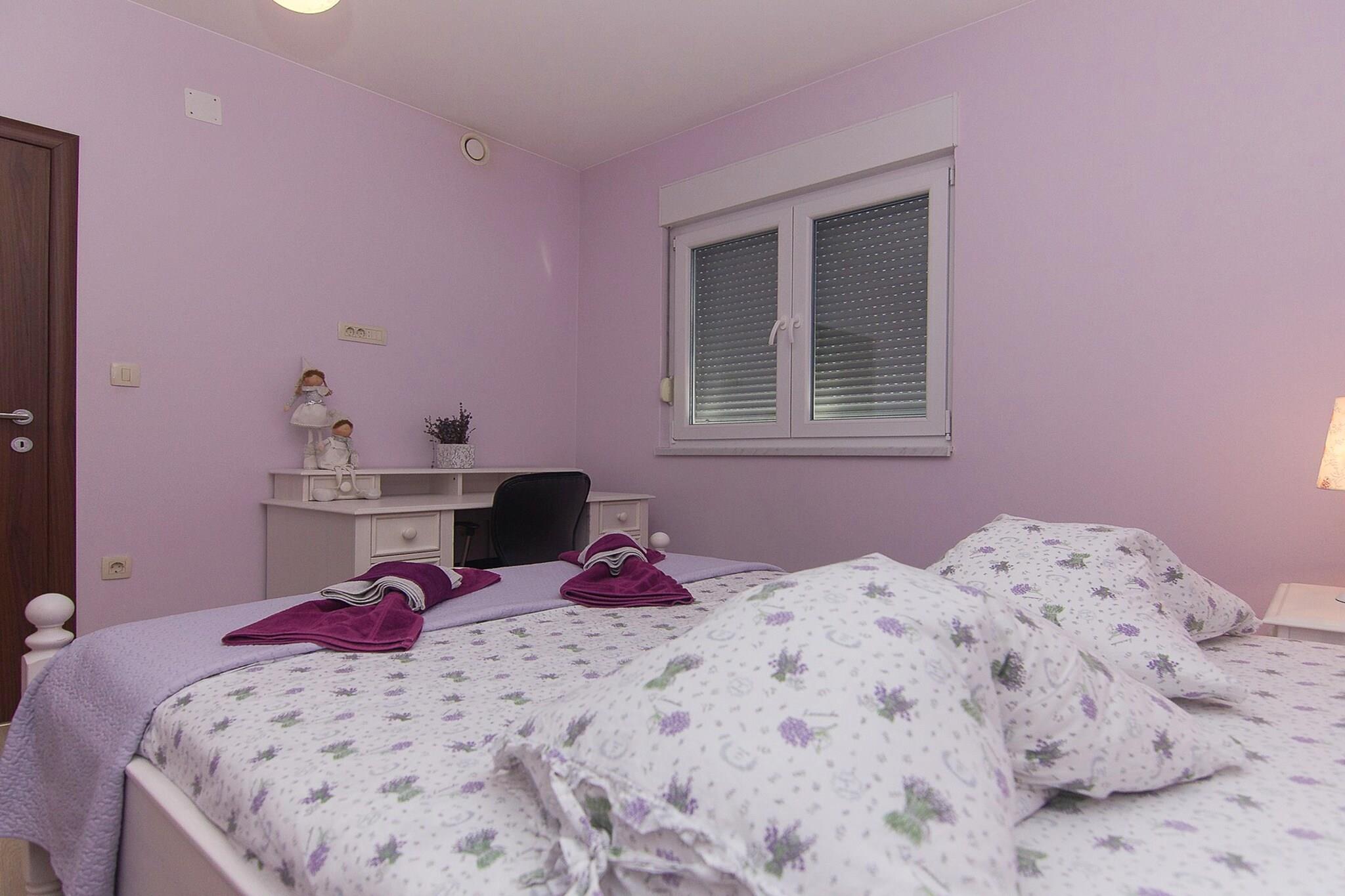 Læg kystlinjen bag dig og nyd en roligere rytme i Dalmatiens indre land i dette private feriehus nær Vrgorac, hvor åbne landskaber og bjergudsigt skaber en rolig og afsides beliggenhed. Omgivet af natur og væk fra travle turistområder tilbyder ejendommen en følelse af rummelighed og privatliv, der definerer hele opholdet. Huset er designet til at rumme op til otte gæster og har fire soveværelser med dobbeltsenge samt rummelige opholds- og spiseområder, der bringer alle sammen komfortabelt. Interiøret inkluderer et siddeområde, tv og spisebord, hvilket skaber et praktisk rum til fælles tid indendørs. Et fuldt udstyret køkken med ovn, opvaskemaskine, kaffemaskine og essentielt køkkengrej understøtter nem madlavning, mens flere badeværelser med brusere sikrer bekvemmelighed for større grupper. Der er aircondition og WiFi overalt. Udendørsområdet er et centralt højdepunkt med en privat swimmingpool beliggende i en have og terrasse med udsigt over de omkringliggende bakker. Med liggestole, udendørs siddepladser og grillfaciliteter er det velegnet til afslappede eftermiddage, gruppemåltider og lange aftener udendørs. Den høje beliggenhed forstærker følelsen af åbenhed og tilbyder udsigt over landskabet og en fredelig atmosfære hele dagen. Der er privat parkering på stedet. Selvom ejendommen ligger mere afsides, kan strandene ved Makarska Riviera og nærliggende byer nås i bil, sammen med naturlige attraktioner og lokale landsbyer. Med sin kombination af privatliv, plads og udendørsliv tilbyder dette hjem en komfortabel base for et afslappet ophold på landet i det sydlige Kroatien.