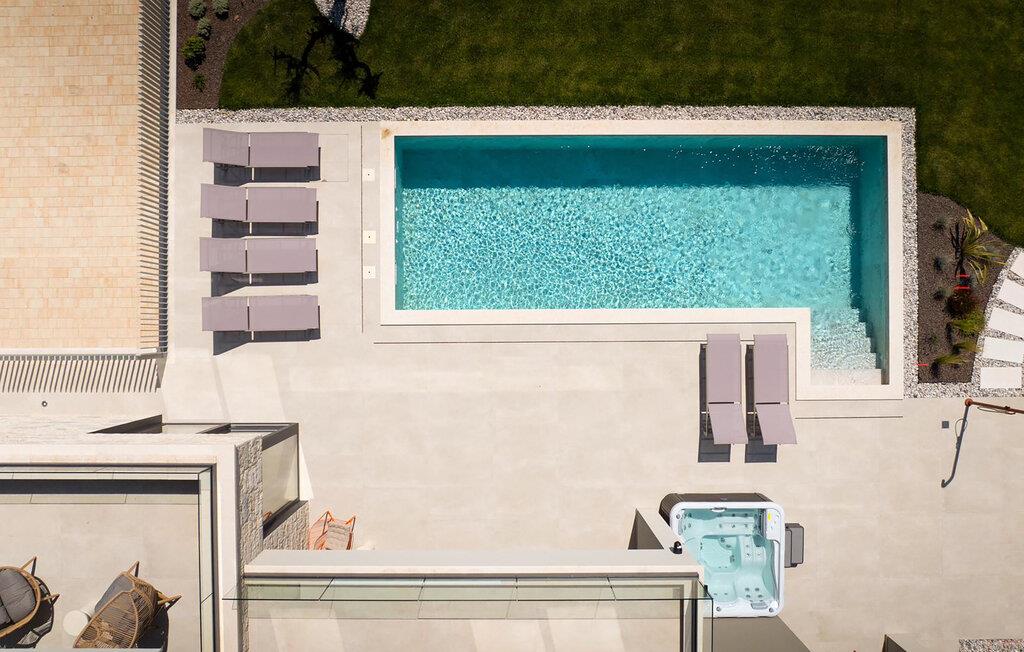 Husets udendørsområde har også meget at byde på. Nyd solen og de lange sommeraftener på balkonen og terrassen, slap af i det udendørs spabad og køl ned i poolen på varme dage.