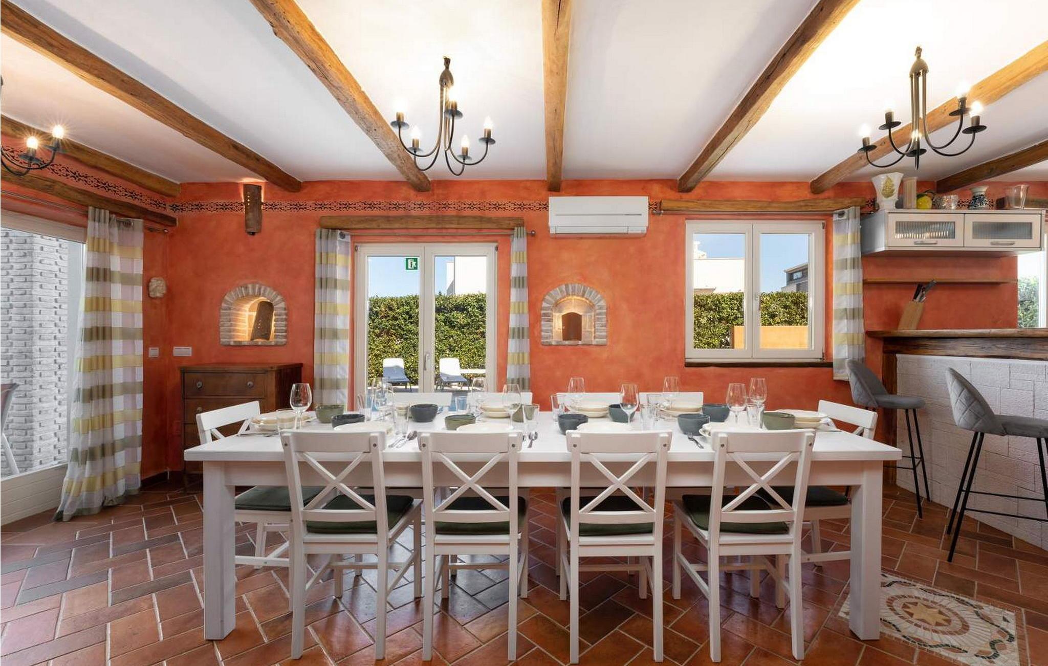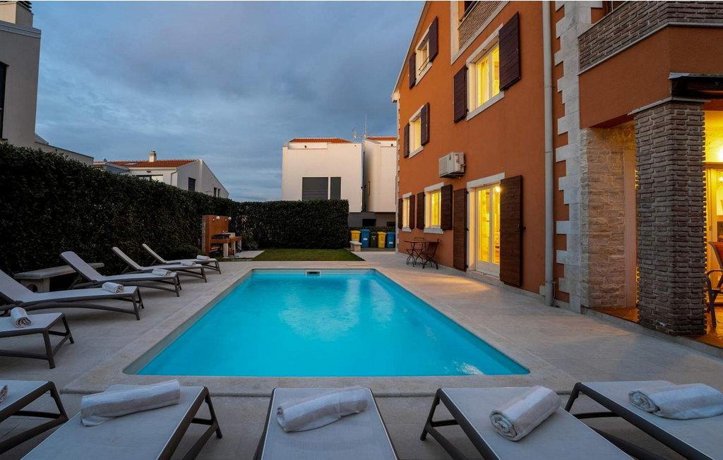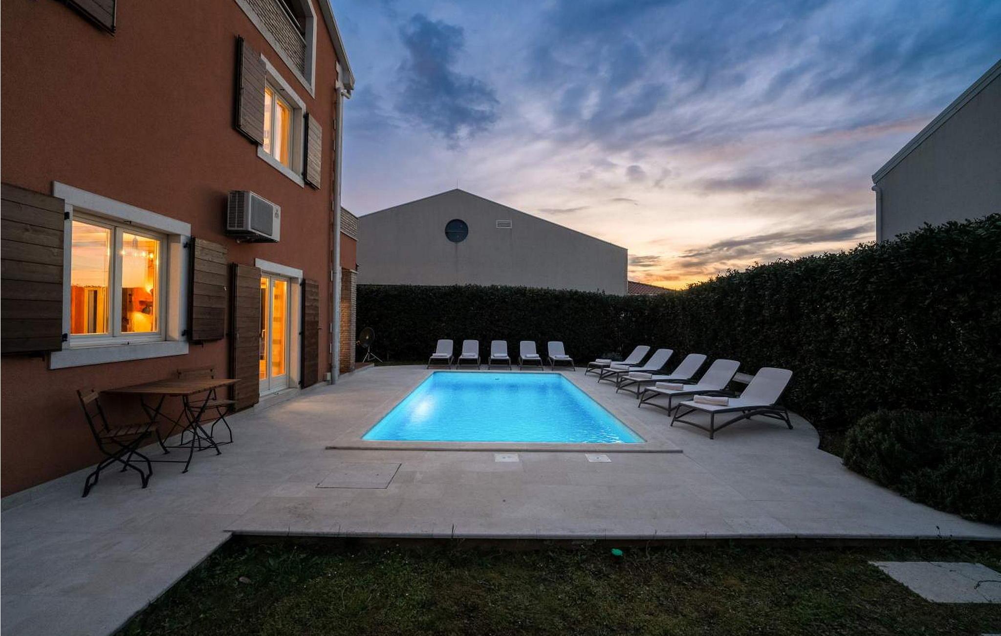 Villa Leon ligger i den maleriske fiskerby Funtana, kun 300 m fra havet og den nærmeste strand. Huset er bygget og udstyret i 2013 og ligger på en indhegnet grund med en velholdt græsplæne, hvor der er swimmingpool, parkering til 4 biler, overdækket terrasse med siddepladser og grill. I umiddelbar nærhed af huset er der en legeplads, et marked, en butik og adskillige restauranter. Villa til 10 gæster fordelt på tre etager. I husets stueetage er der køkken med spisestue og opholdsstue med sofa, pejs og separat toilet. På husets første sal er der tre soveværelser med franske senge, hvoraf to har en stor fælles terrasse med udsigt over havet, samt et badeværelse. På anden sal er der et soveværelse, et badeværelse og et andet rummeligt soveværelse med eget badeværelse og en loggia. Bemærk venligst, at denne ejendom ikke accepterer ungdomsgrupper eller polterabends. En ungdomsgruppe på denne ejendom er en gruppe bestående af personer på 26 år eller derunder. Book ikke denne ejendom, hvis du er en ungdomsgruppe eller et polterabend, da din reservation vil blive afvist efter booking, hvilket kan omfatte ved ankomst til ejendommen eller under dit ophold, og du vil ikke blive refunderet.
