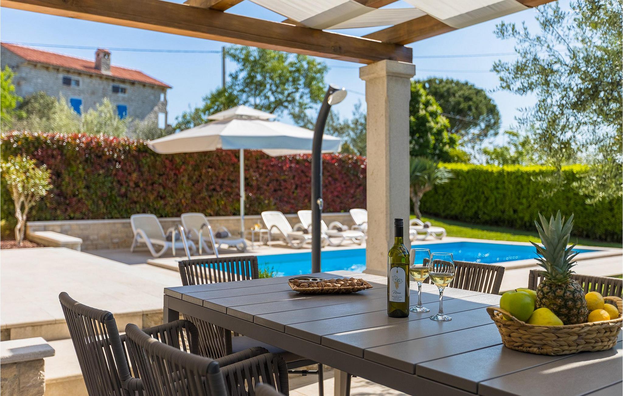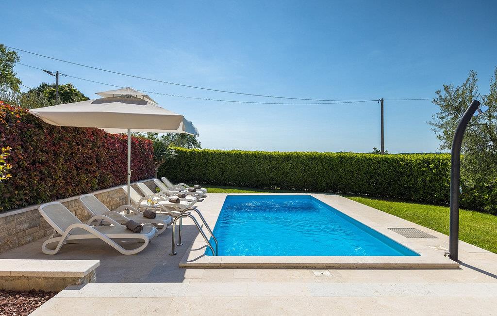 Diese wunderschöne Villa befindet sich nur eine kurze Autofahrt von den touristischen und historischen Hotspots Istriens entfernt. Die Villa verfügt über einen großen, eingezäunten und sorgfältig gepflegten Garten mit privatem Pool und bereitet die besten Zutaten für einen erholsamen Familienurlaub. Die Villa bietet Platz für bis zu 8 Personen in 4 komfortabel eingerichteten Schlafzimmern.