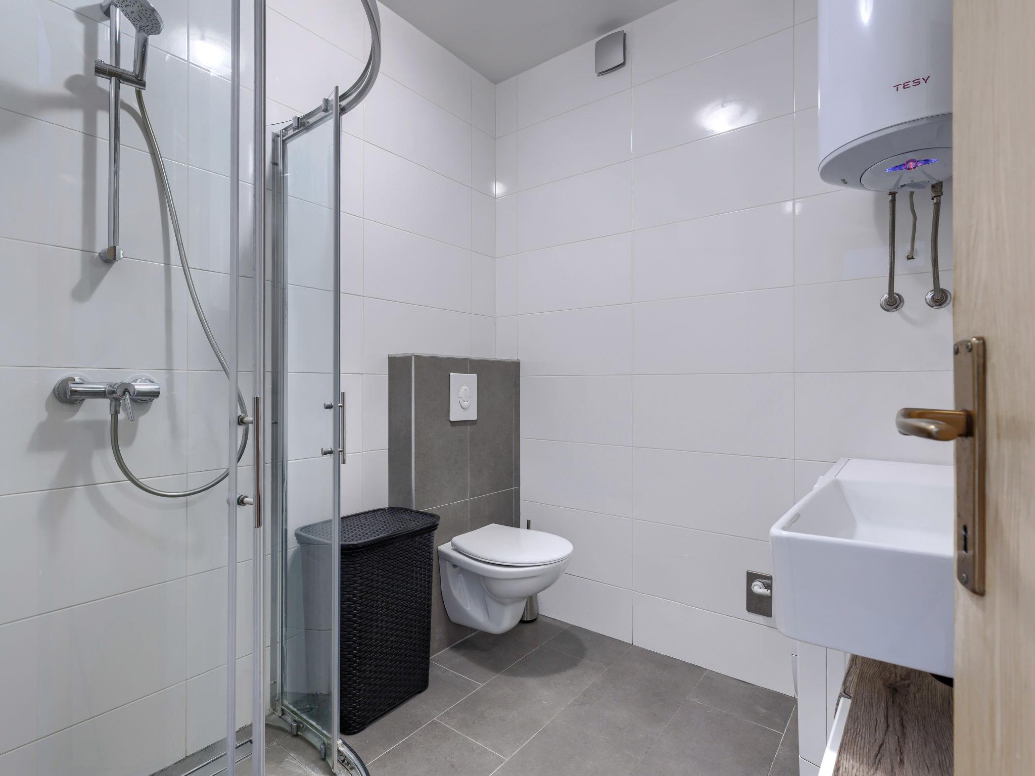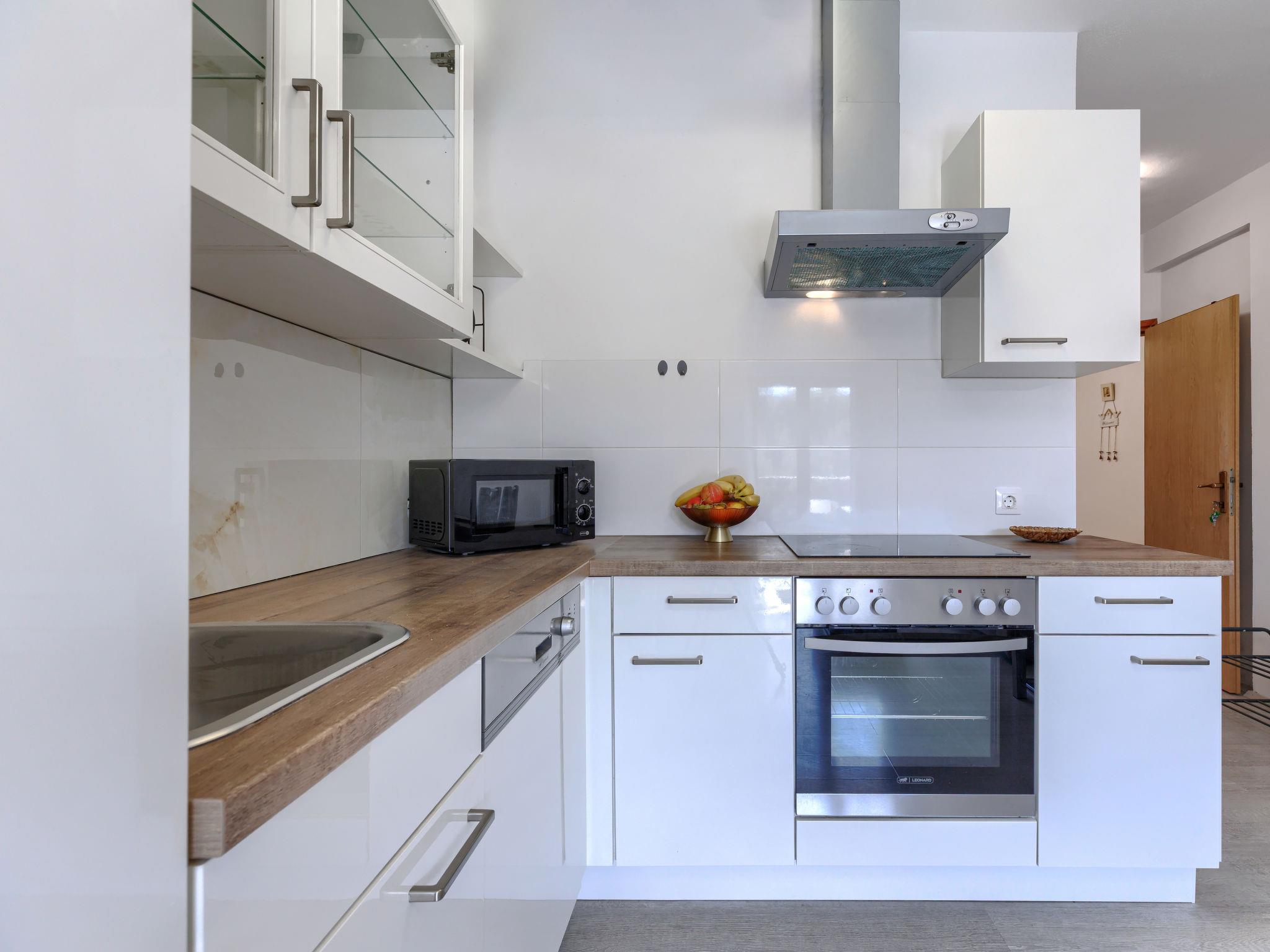 "A2", 2-room apartment 50 m2 on 2nd floor. Beautiful furnishings: living/dining room with 1 double sofabed (140 cm, length 200 cm), satellite TV (flat screen), air conditioning. Exit to the balcony. 1 room with 1 french bed (160 cm, length 200 cm). Open kitchen (oven, dishwasher, 4 ceramic glass hob hotplates, kettle, microwave, freezer, electric coffee machine). Shower/WC. Forced-air heating. Balcony 4 m2. Balcony furniture. Side view of the forest and the town. Facilities: washing machine. Internet (WiFi, free). Please note: non-smoking house.