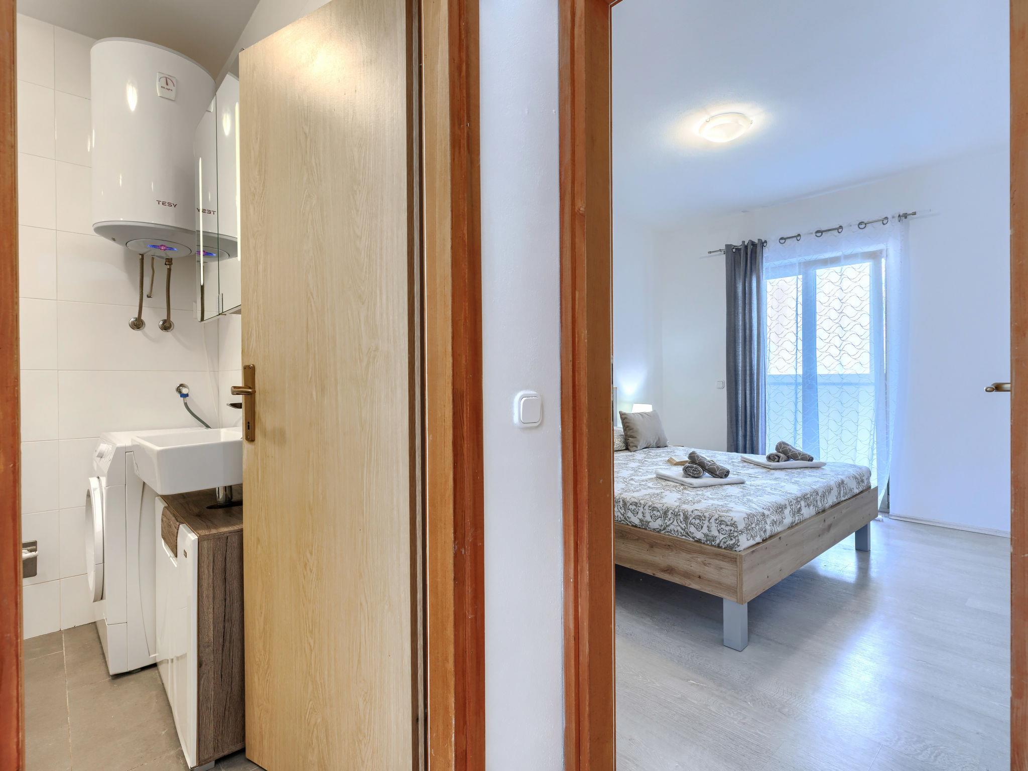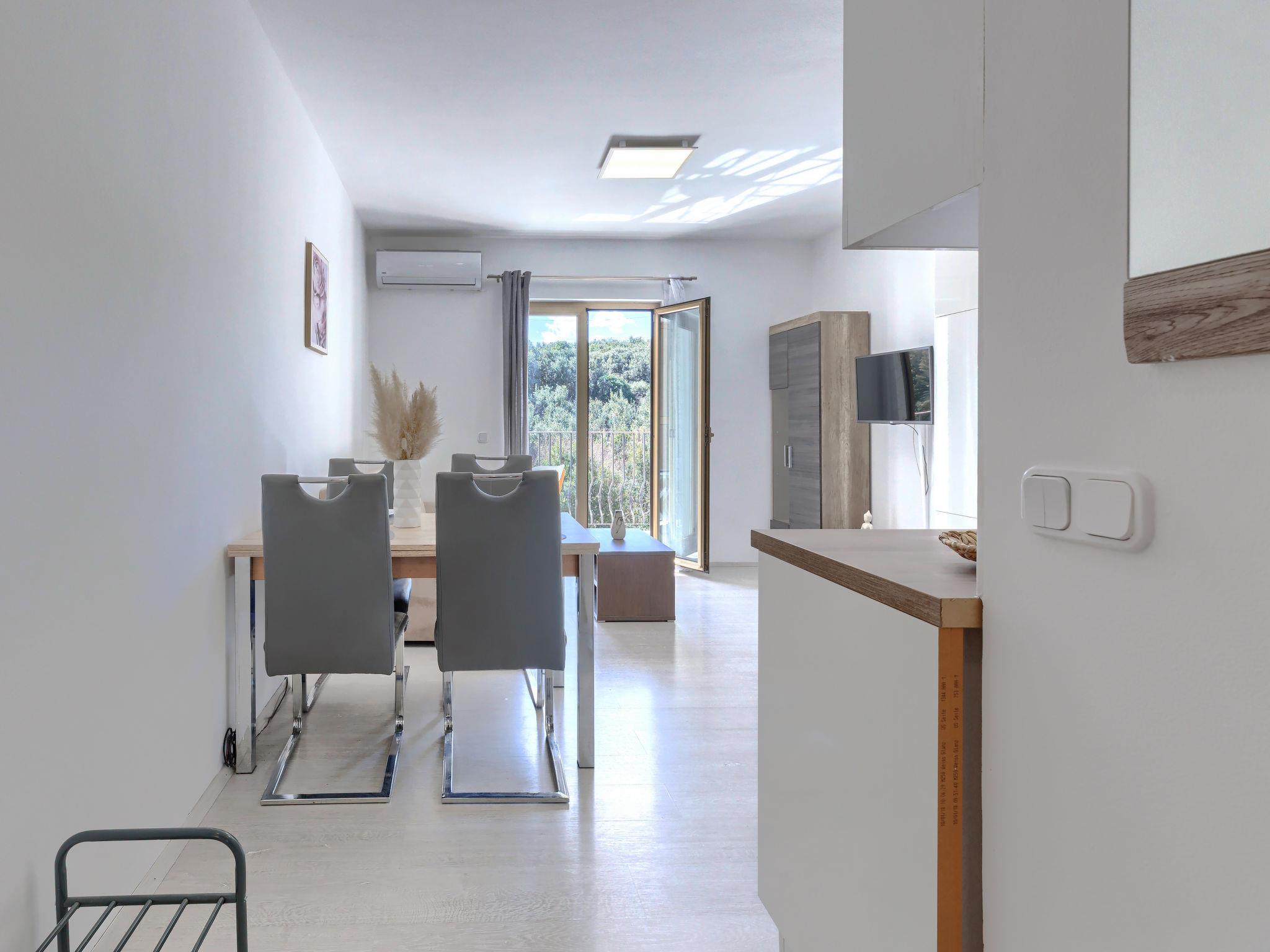 Apartment block "Milankovic", 3 storeys. 1.2 km from the centre of Vrsar, on a slope, in the residential district, 1 km from the sea. In the house: internet access. Parking (for 3 cars) at the house on the premises. E-charging station. Shop 700 m, restaurant 100 m, bakery 700 m, café 100 m, bus stop 500 m, pebble beach 1.5 km. Marina 1 km, tennis 5 km, riding stable 6 km, walking paths from the house 300 m, cycle lane 500 m. Please note: airfield 53 km from the property.