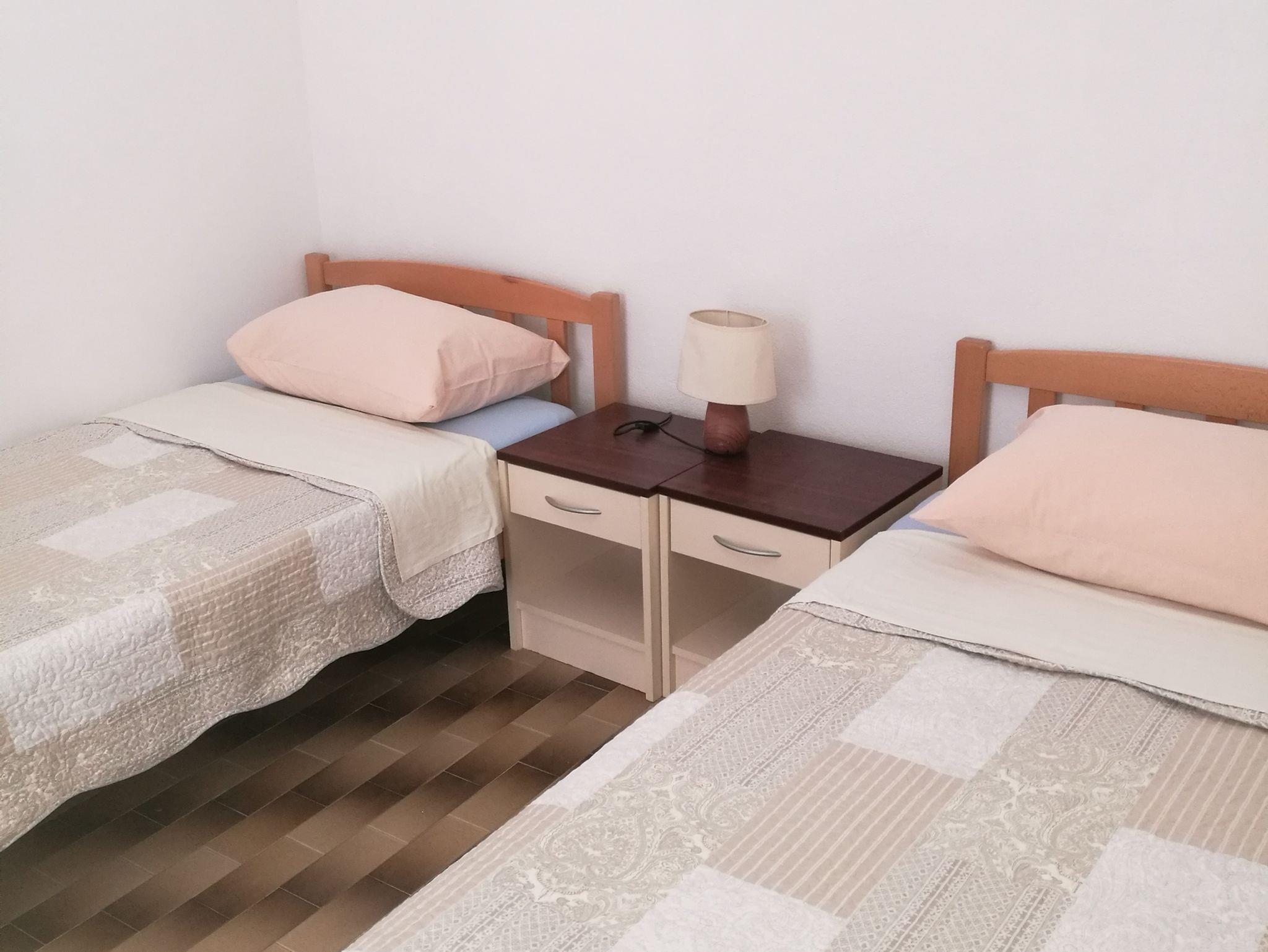Ferienwohnung bietet Platz für 5 Gäste. Die Betten sind in Schlafzimmern, die es 2 gibt, innerhalb einer Gesamtfläche von 44m2, angeordnet. Die Gäste haben eine eigene Terrasse zur Verfügung, auf der sie in warmen Sommernächten genießen können. Das Apartment bietet Meerblick. Es ist erlaubt, Speisen auf dem Gemeinschafts-Grill vorzubereiten. In der Unterkunftseinheit besteht die Möglichkeit des Mitbringens von Haustieren gegen Aufpreis. IM PREIS INBEGRIFFEN: Kurtaxe, Endreinigung, Klimatisierung, Zentralheizung, Parkplatz, Internet, Kinderbett, Bügeleisen, Bügelbrett, Föhn. VERBINDLICHE ZUSÄTZLICHE KOSTEN: Aufzahlung für Kurzaufenthalte (prozentualer Zuschlag pro Nächtigungsanzahl: 30% - 1, 20% - 2, 10% - 3). UNVERBINDLICHE ZUSÄTZLICHE KOSTEN: Wäschewaschen (10,00 € Waschen), Haustiere (10,00 € pro Nacht). Die Verfügbarkeit zusätzlicher Dienstleistungen in Ihrem reservierten Termin und die Preise derselben (falls nicht aufgeführt) müssen im Voraus überprüft werden. Zusätzliche Dienstleistungen die in der Zahlungsaufforderung nicht aufgeführt sind werden direkt beim Vermieter bezahlt, angenommen der Gast nutzt auch diese.