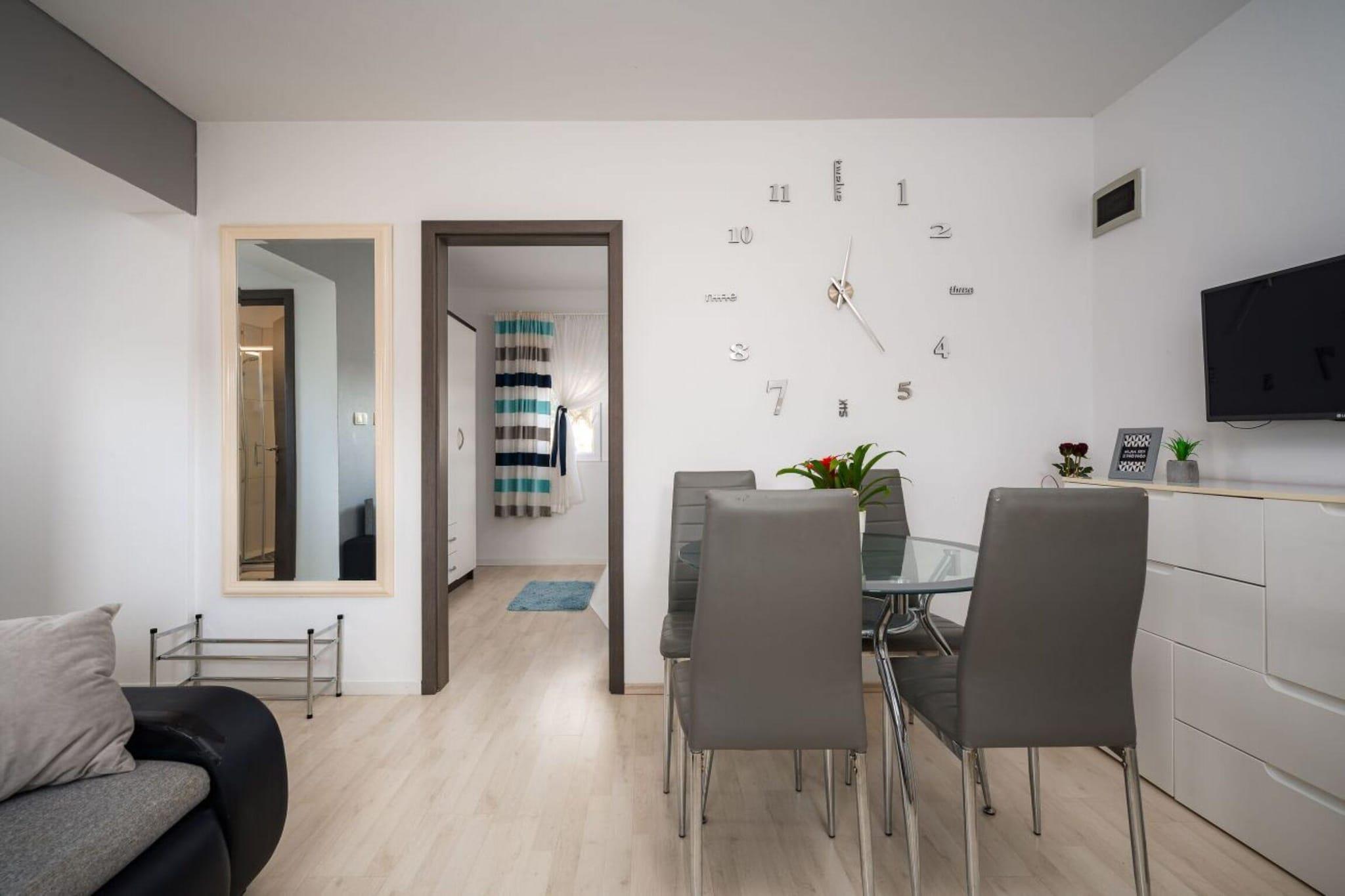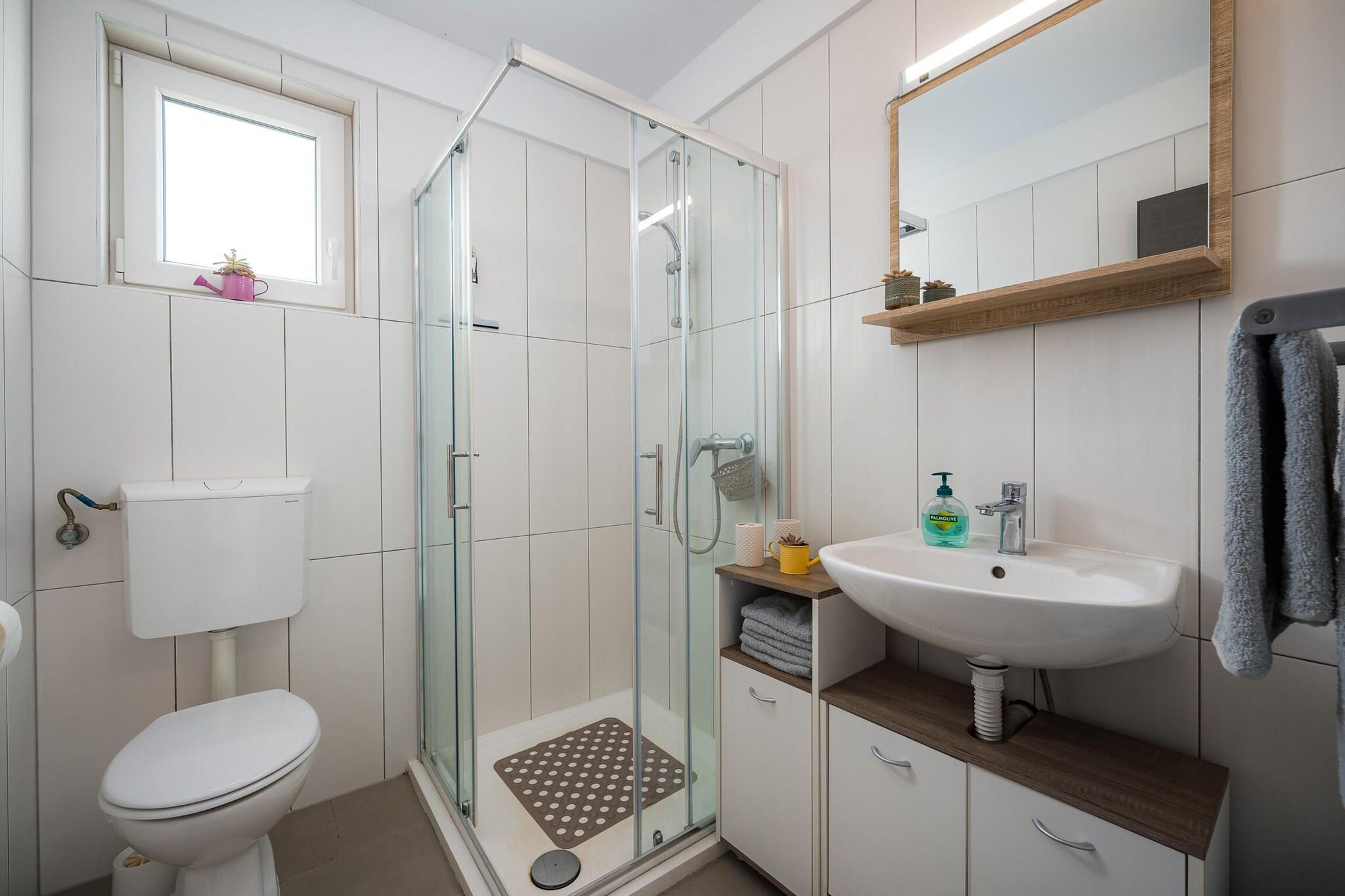 The lejlighed i Vrvari har 1 soveværelse(r) og kapacitet til 4 person(er) (max 3 voksne). Bolig på 40 m² gode møbler og har alt udstyr, med udsigt til have og swimming pool. Er beliggende 0 m fra metroen, 0 m fra skibakken, 5 m fra forlystelsesparken "Dino park Funtana", 2 km fra vandland "Aquacolors", 3 km fra byen "Porec", 3 km fra supermarkedet "Porec", 4 km fra stenstranden "Gradska plaza", 4 km from the restaurant "Porec", 6 km fra stranden "Valamar Marea Beach", 6 km fra busstationen "Porec", 40 km fra naturparken "Brijuni", 40 km fra de varme bade "Istarske toplice", 60 km fra lufthavnen "Pula", 60 km fra togstationen "Pula" og er beliggende i et børnevenligt område og i en forstad. Tilbyder have, terrassemøbler, indhegnet grund, 5 m² terrasse, grill, strygejern, internet (wifi), varmepumpe, aircondition, swimming pool fælles, overdækket parkering til den samme bygning, 1 TV, satellit (Sprog: Engelsk, Tysk), radio. The amerikanske køkken, elektrisk, med service og køleskab, mikroovn, tallerkener/bestik, køkkenredskaber, kaffemaskine, brødrister og kedel.