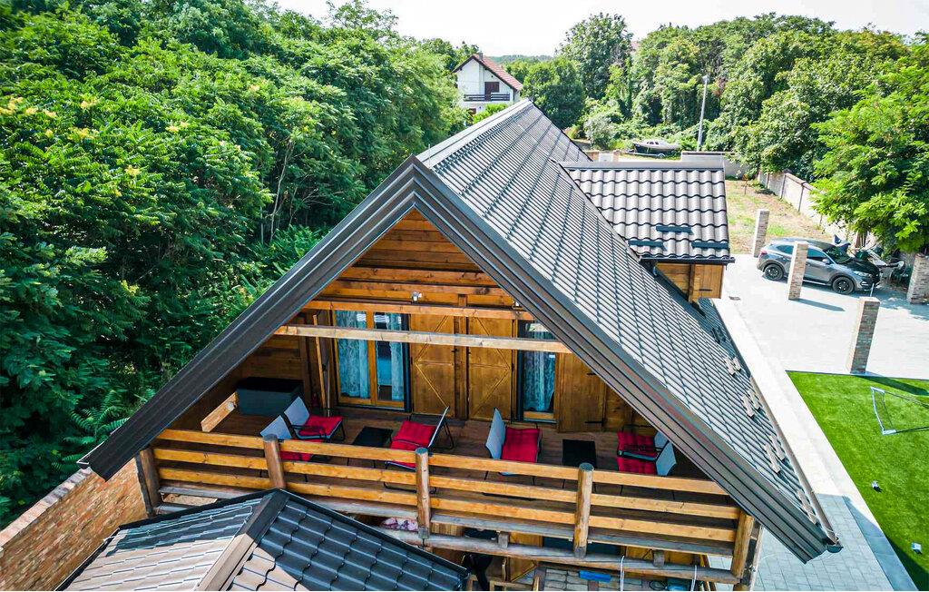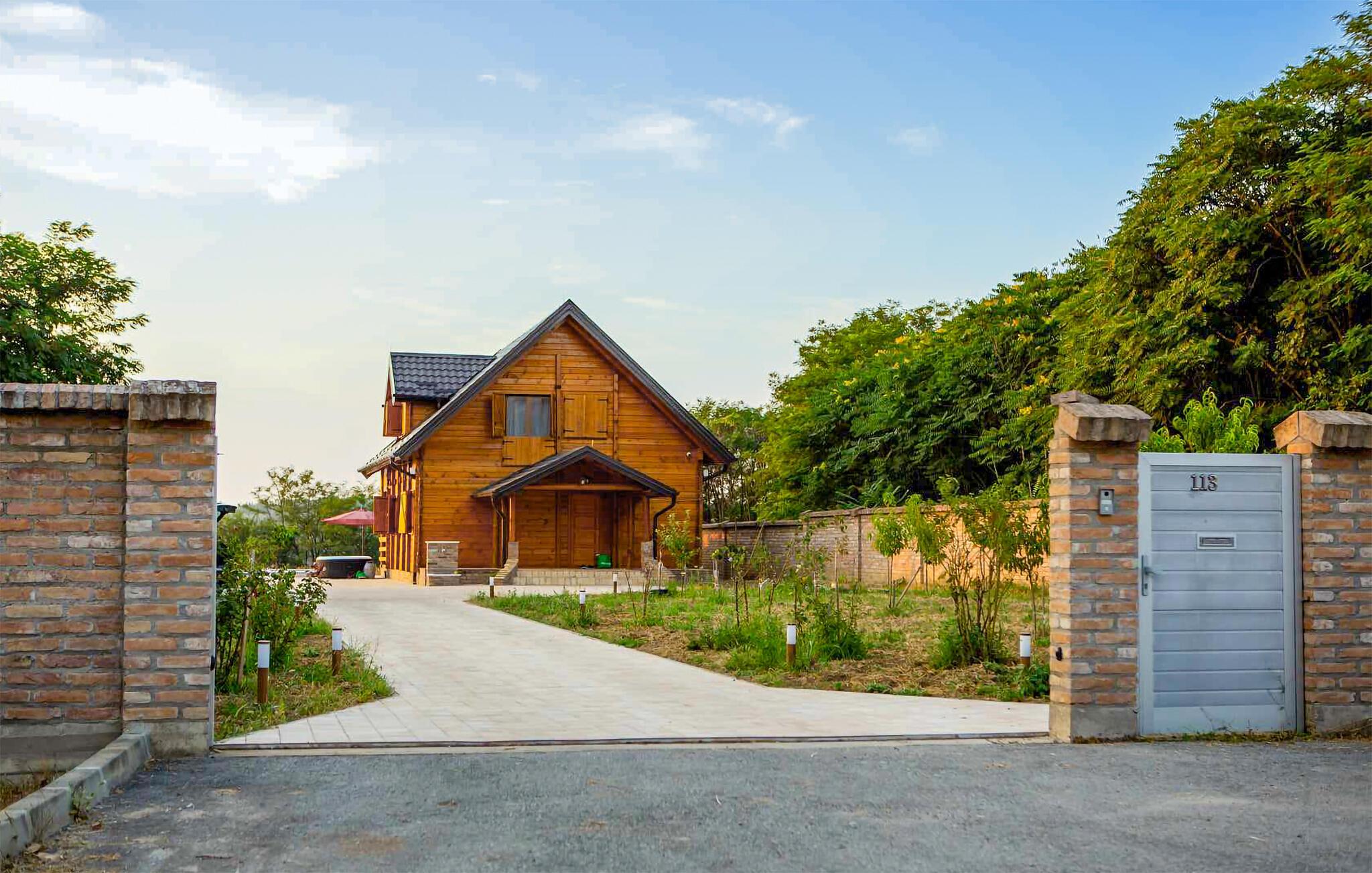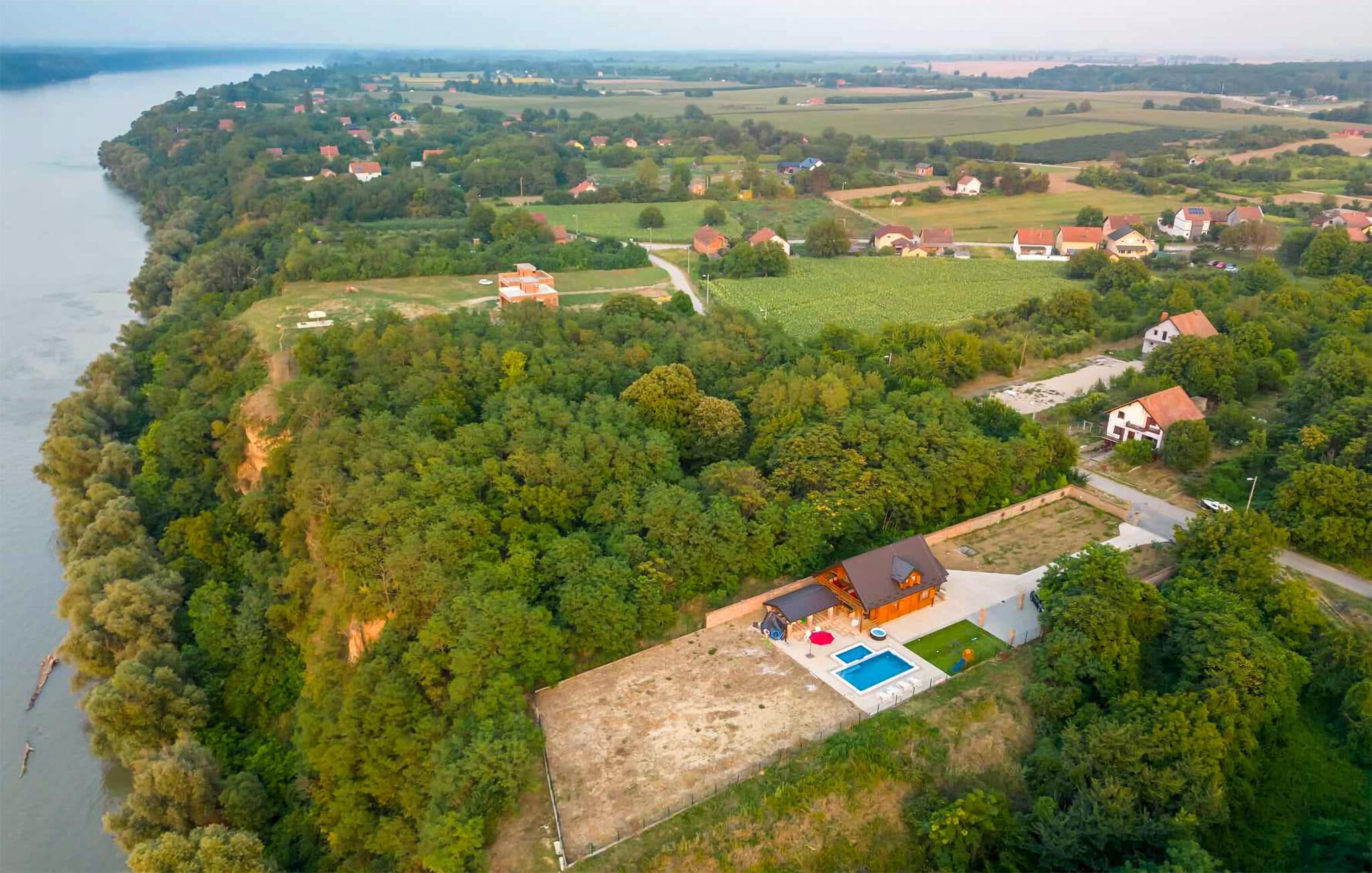 Jeres hyggelige træhus i Vukovar giver jer mulighed for både en aktiv og afslappende ferie. Start dagen med et forfriskende dyk i poolen eller slap af i boblebadet. Nyd den fredelige atmosfære og den smukke udsigt over Donau, som ligger tæt på huset. Gør det behageligt for jer i den varme og indbydende stue og tilbered en lækker middag i køkkenet.