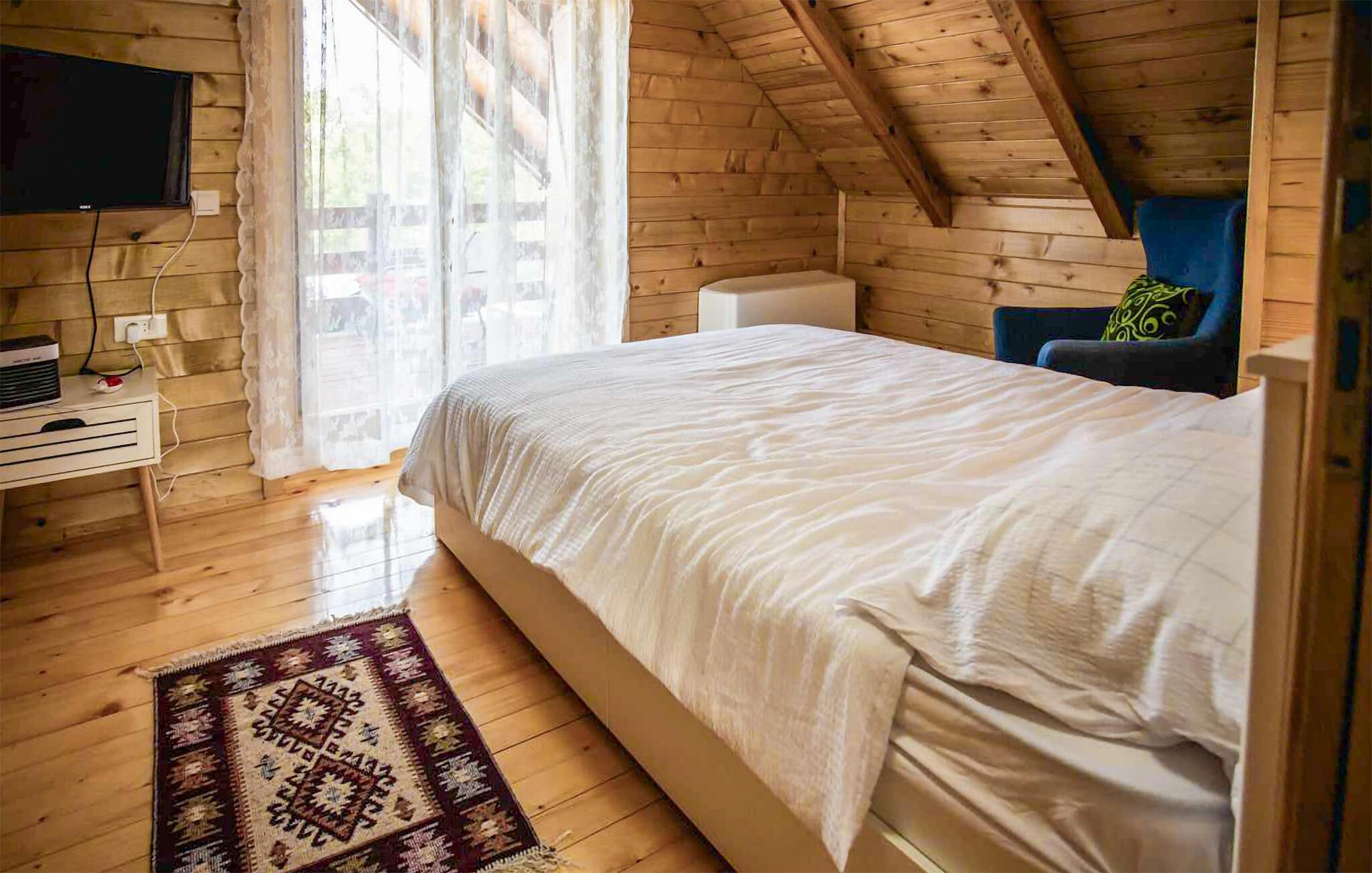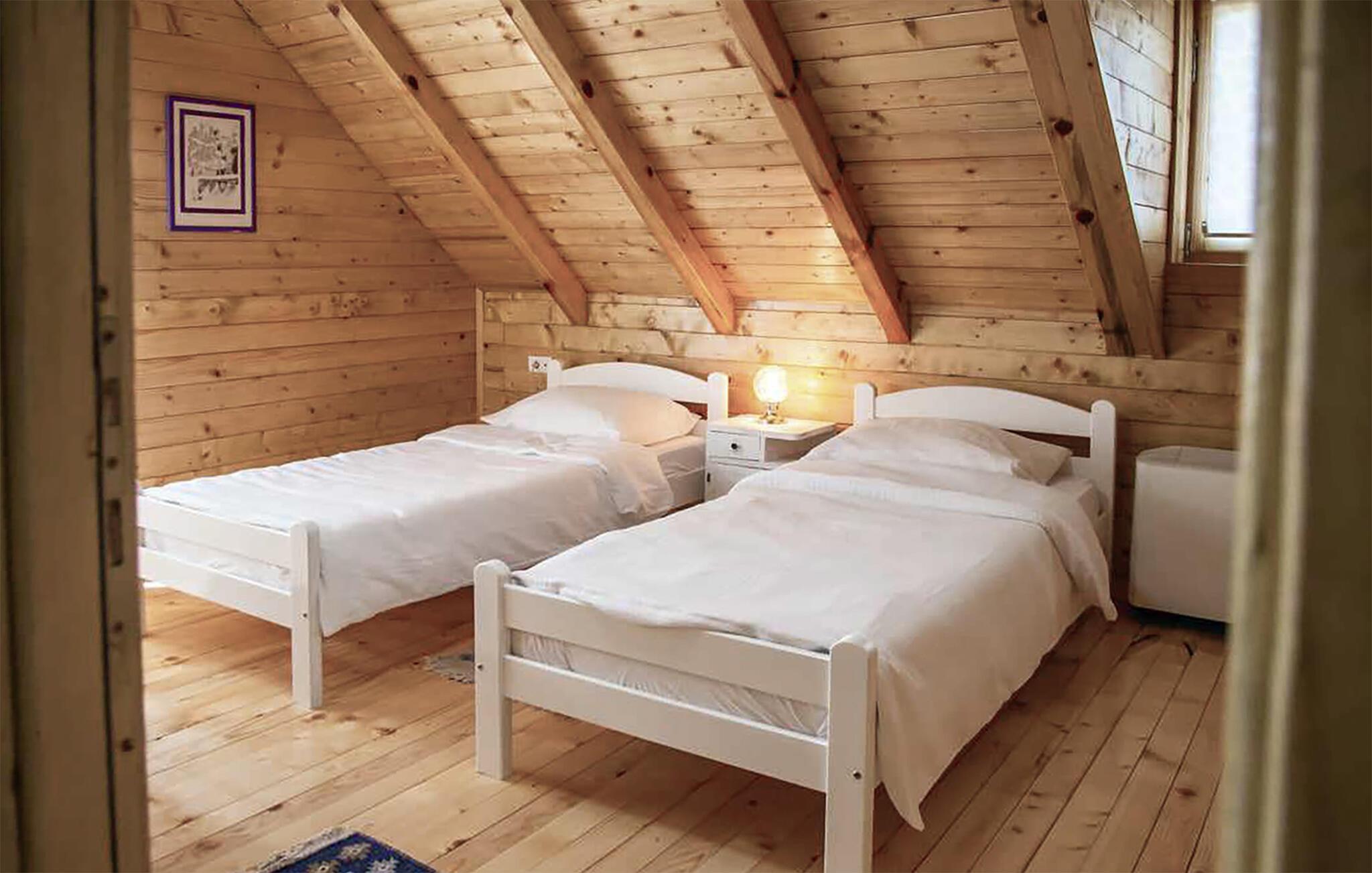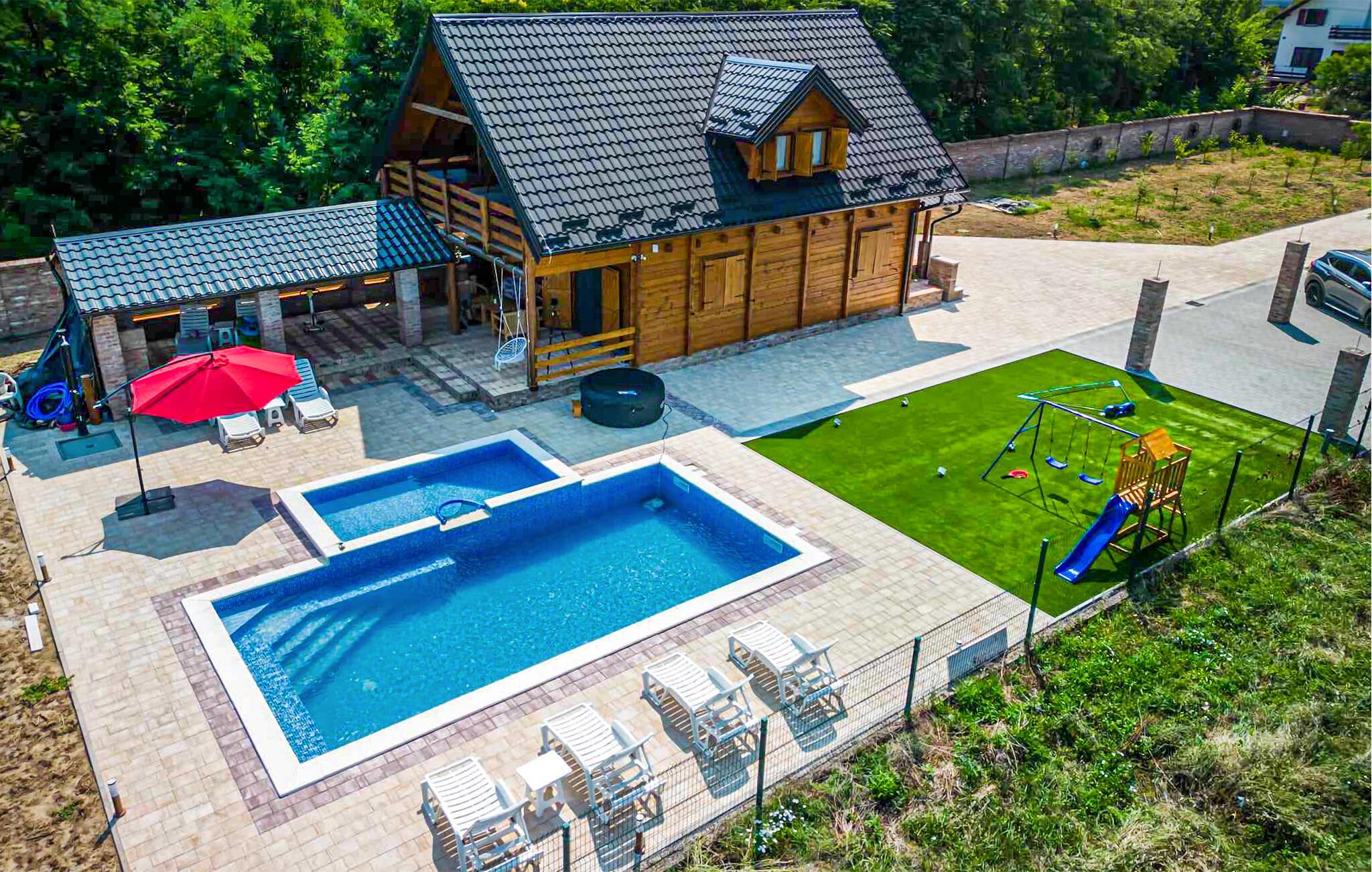Jeres hyggelige træhus i Vukovar giver jer mulighed for både en aktiv og afslappende ferie. Start dagen med et forfriskende dyk i poolen eller slap af i boblebadet. Nyd den fredelige atmosfære og den smukke udsigt over Donau, som ligger tæt på huset. Gør det behageligt for jer i den varme og indbydende stue og tilbered en lækker middag i køkkenet.