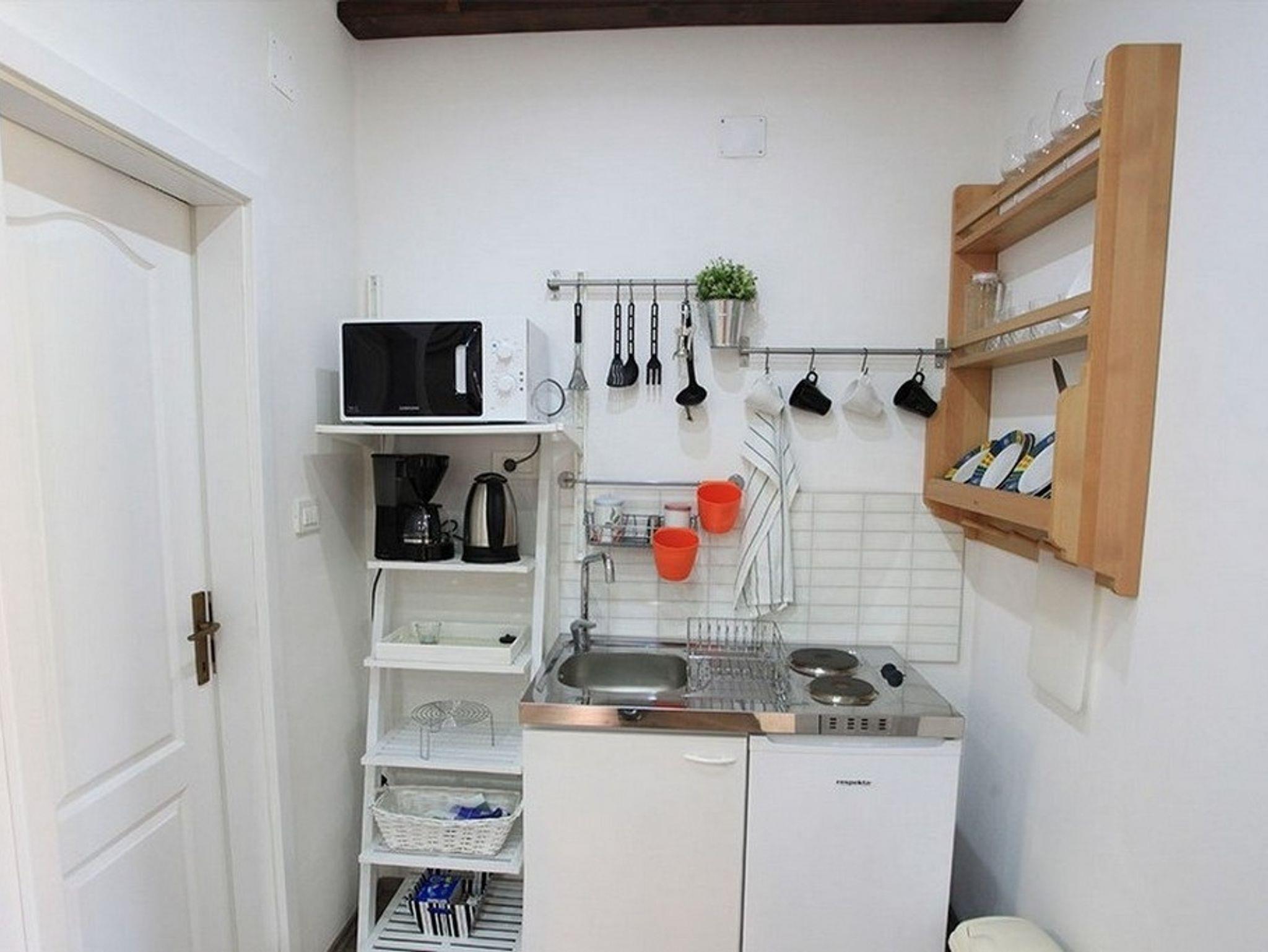 Studio bietet Platz für 3 Gäste. Die Betten sind in Schlafzimmern, die es 1 gibt, innerhalb einer Gesamtfläche von 24m2, angeordnet. Die Gäste haben eine eigene Terrasse zur Verfügung, auf der sie in warmen Sommernächten genießen können. Es ist erlaubt, Speisen auf dem Gemeinschafts-Grill vorzubereiten. In der Unterkunftseinheit besteht die Möglichkeit des Mitbringens von Haustieren, und die Dienstleistung ist im Preis der Unterkunft enthalten. IM PREIS INBEGRIFFEN: Kurtaxe, Endreinigung, Klimatisierung, Parkplatz, Internet, Wäschewaschen, Haustiere, Bügeleisen, Bügelbrett, Föhn, tragbarer Grill. Die Verfügbarkeit zusätzlicher Dienstleistungen in Ihrem reservierten Termin und die Preise derselben (falls nicht aufgeführt) müssen im Voraus überprüft werden. Zusätzliche Dienstleistungen die in der Zahlungsaufforderung nicht aufgeführt sind werden direkt beim Vermieter bezahlt, angenommen der Gast nutzt auch diese.