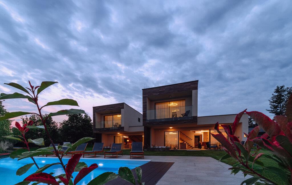 Oplev ren afslapning i denne moderne villa med spabad og pool.