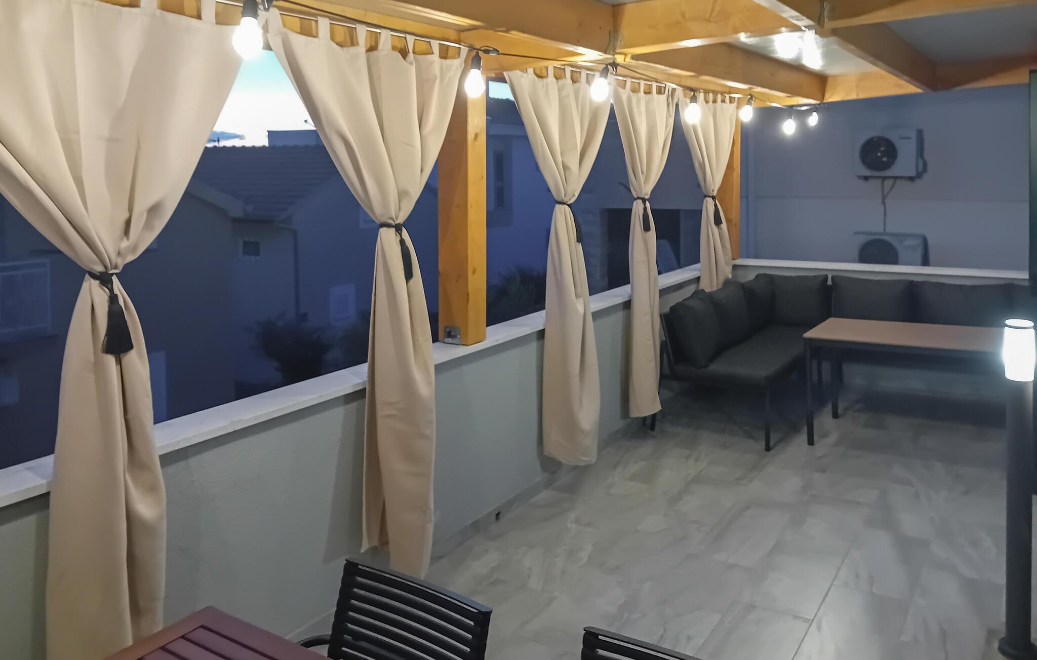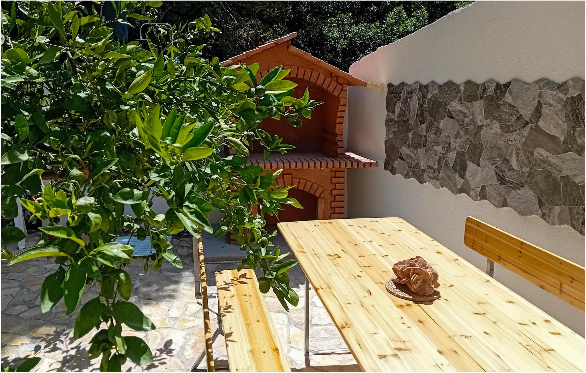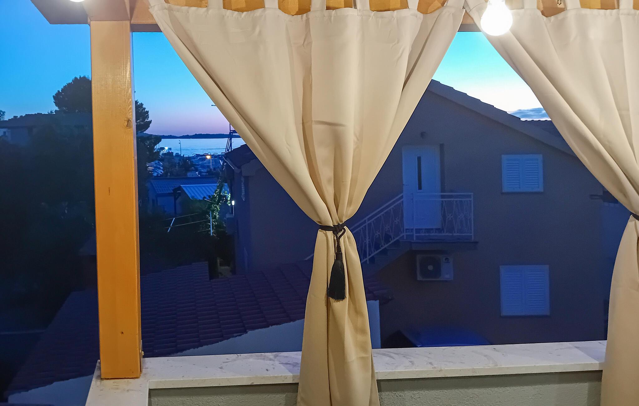 Slap af med jeres kære i denne indbydende ferielejlighed med stor balkon og havudsigt. Nyd jeres ferie i denne skønne ferielejlighed i hjertet af Zaboric, hvor attraktivt design møder indbydende komfort. Lejligheden er smagfuldt indrettet og udstråler en harmonisk atmosfære, der lægger op til at blive hængende. I finder alt, hvad I skal bruge til en ubekymret ferie. Den hyggelige lejlighed er noget særligt med sin rummelige balkon, som ikke kun tilbyder jer et sted at slappe af, men også en vidunderlig udsigt over området. På grund af den rolige beliggenhed mellem husene kan I nyde et højt niveau af privatliv, mens havet ligger kun en kort gåtur væk. Zaboric selv tilbyder jer en perfekt blanding af afslapning og aktivitet. Nærheden til stranden giver jer mulighed for at bade i det klare vand eller slappe af på kysten til enhver tid. Udforsk byens charmerende gyder eller nyd frisk fisk og skaldyr i de lokale restauranter. For de eventyrlystne er der masser af muligheder for vandsport, fra kajaksejlads til snorkling. Et besøg i den nærliggende by Sibenik med dens imponerende fæstning og UNESCO-beskyttede katedral anbefales også. Lad jer fortrylle af skønheden og mangfoldigheden i denne region.