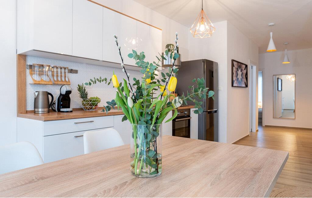 Tag familien under armen og rejs til Kroatien, hvor I i Bibinje lidt syd for Zadar får en skøn base i denne lækre lejlighed. Med sin gode beliggenhed ved stranden, sin flotte indretning og de mange moderne faciliteter får I her alt, I behøver for en magisk ferie med masser af sol og vand. Begynd dagen med en solid morgenmad, inden I tager til stranden eller på udflugt, og rund en aktiv feriedag af med en lækker aftensmad, sofahygge og udsigt til havet.