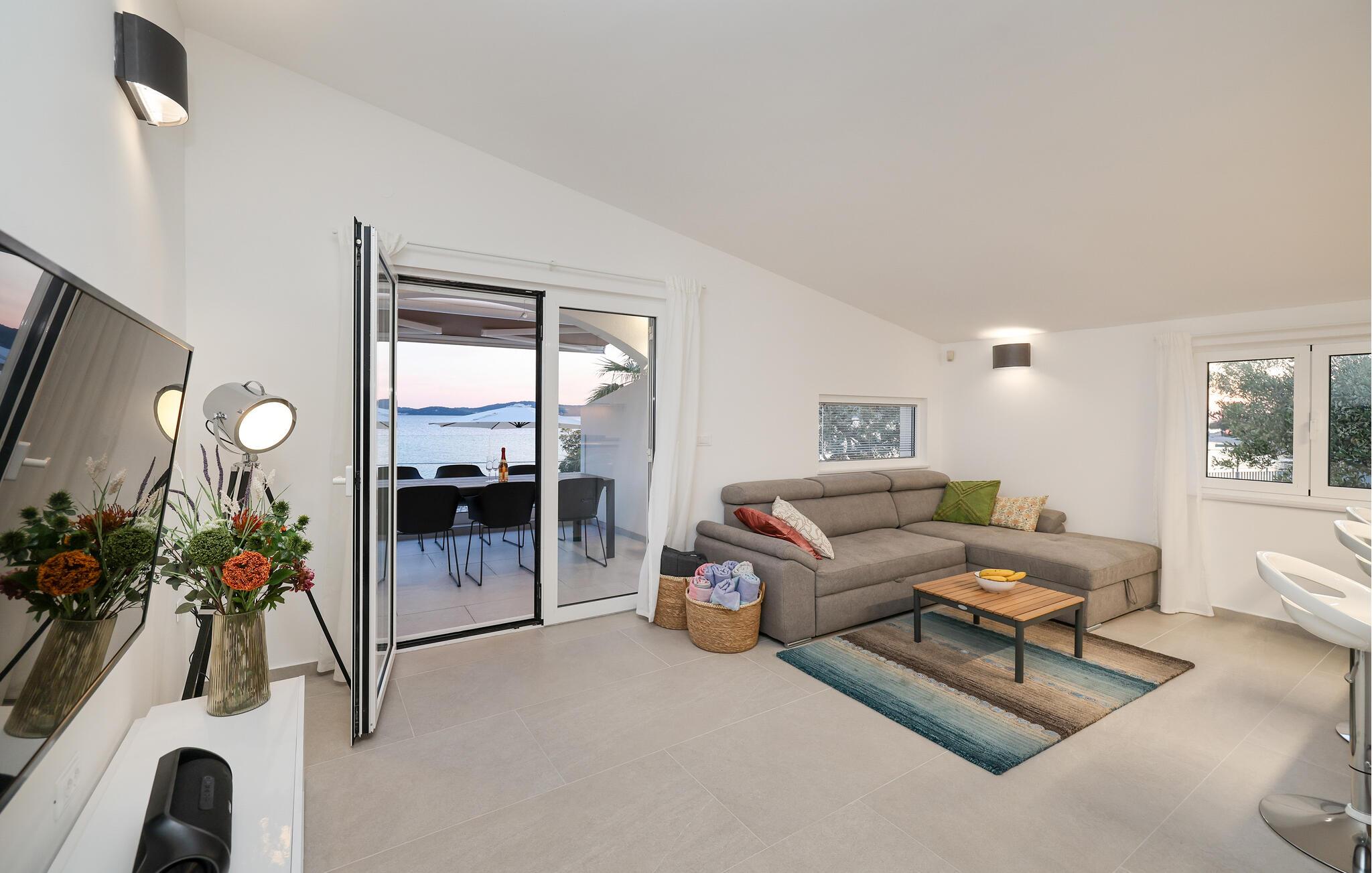Velkommen til Dalmatien, hvor huset byder jer velkommen i en rolig beliggenhed direkte ved stranden. Her forenes høj standard med en afslappet middelhavsatmosfære. I kan se frem til en fantastisk tid i de moderne og smagfuldt indrettede rum, afslapning i den private sauna samt hyggelige aftener på sofaen, hvor I kan genopleve dagens oplevelser.