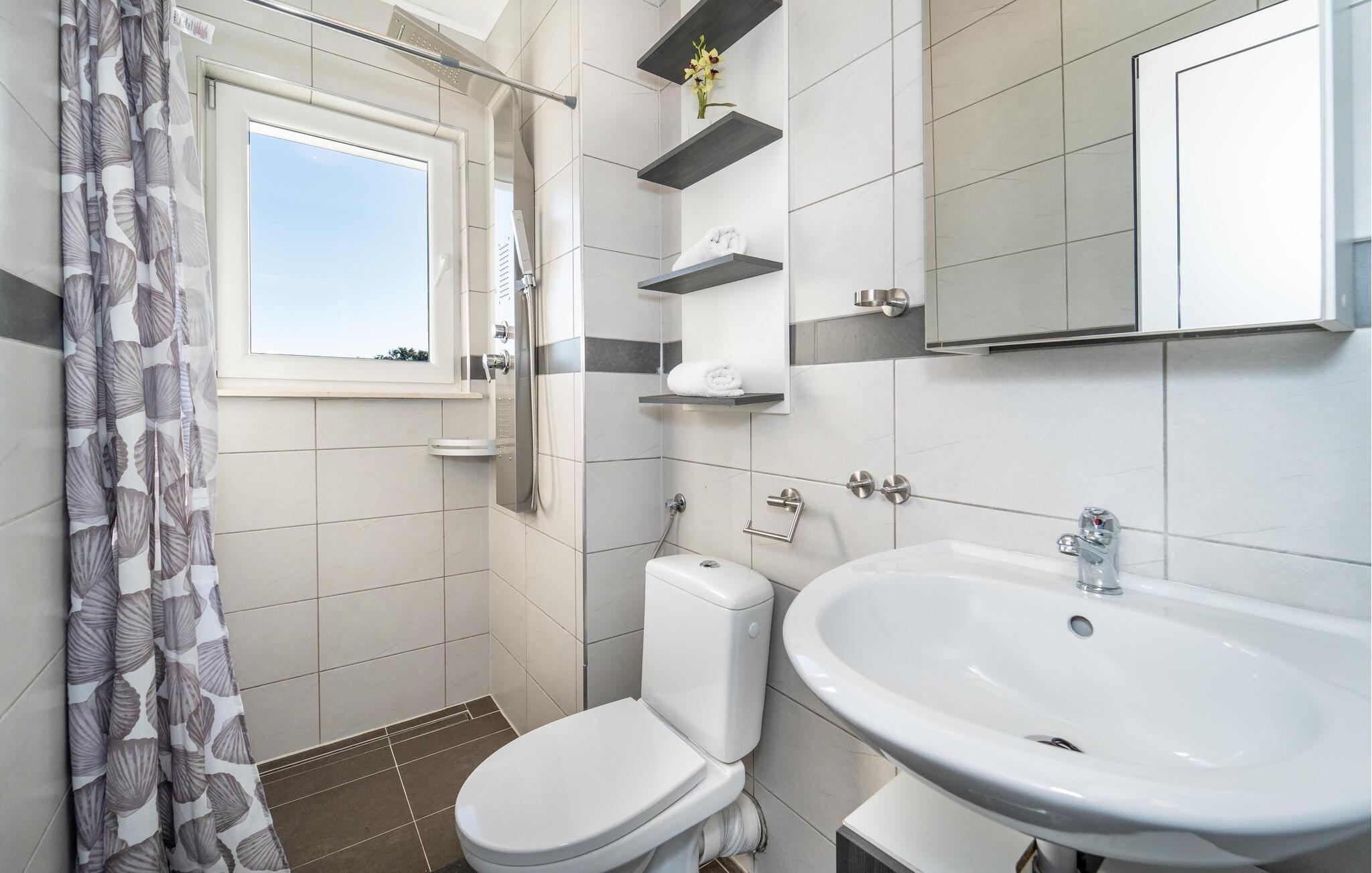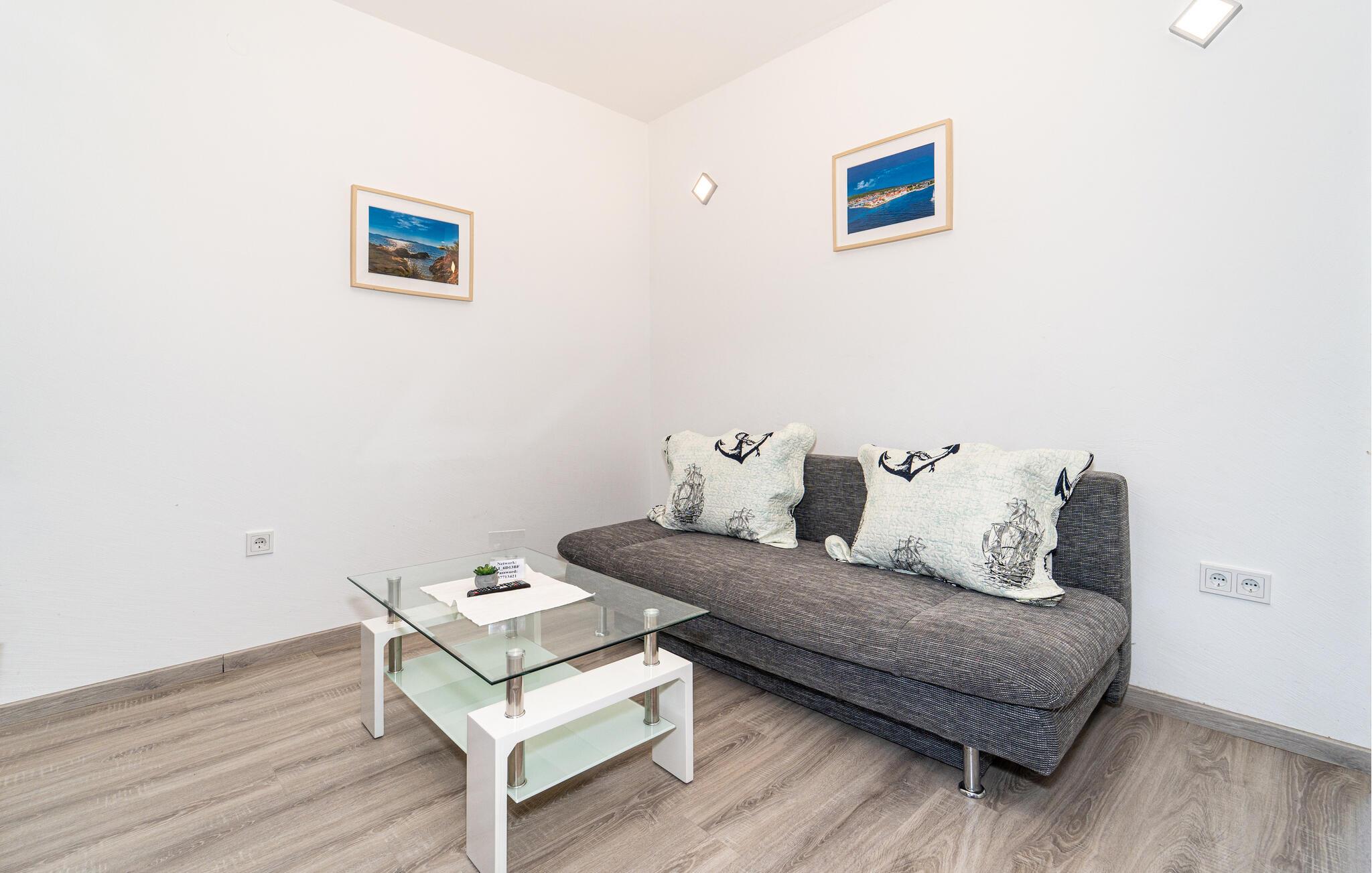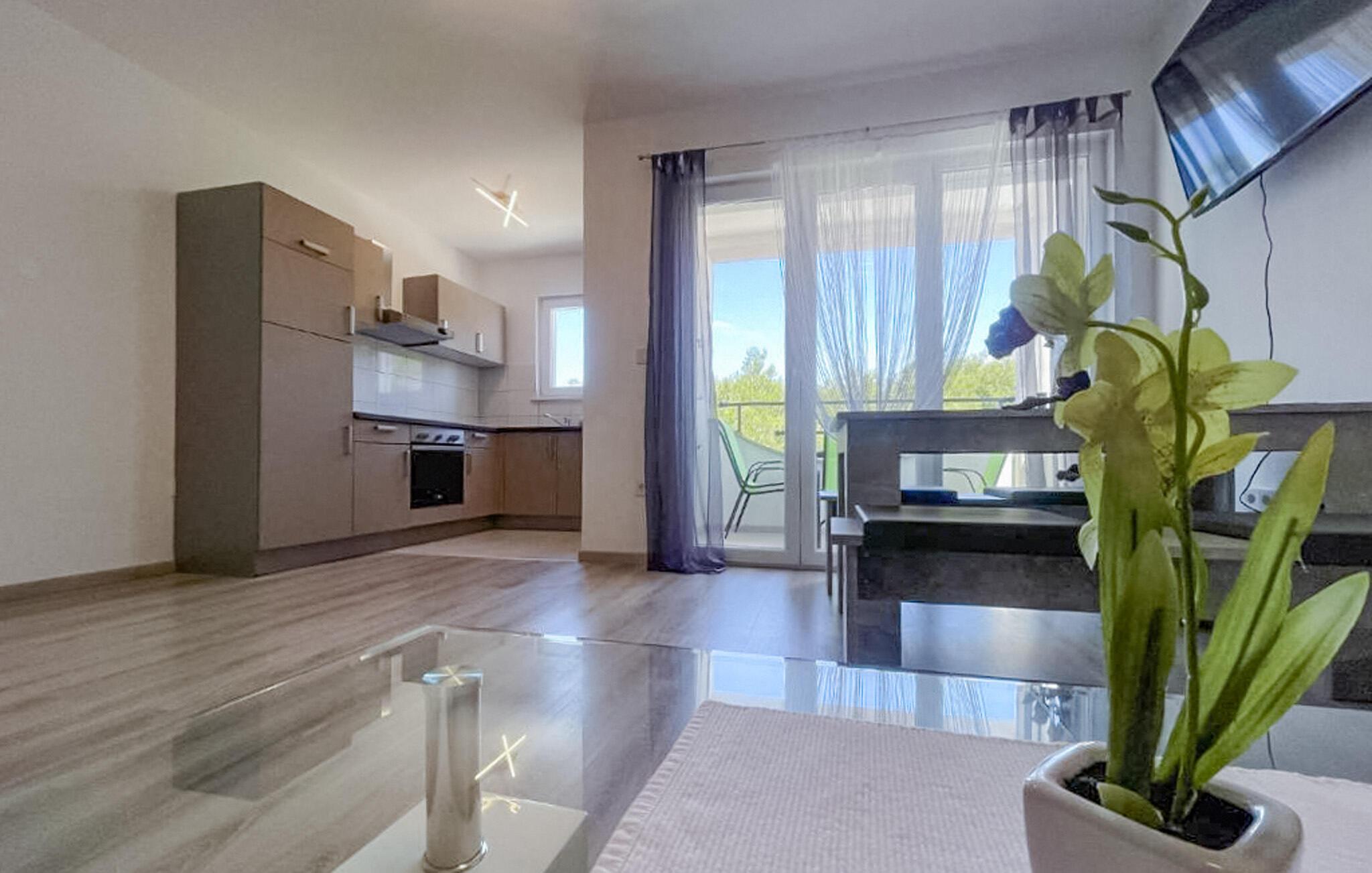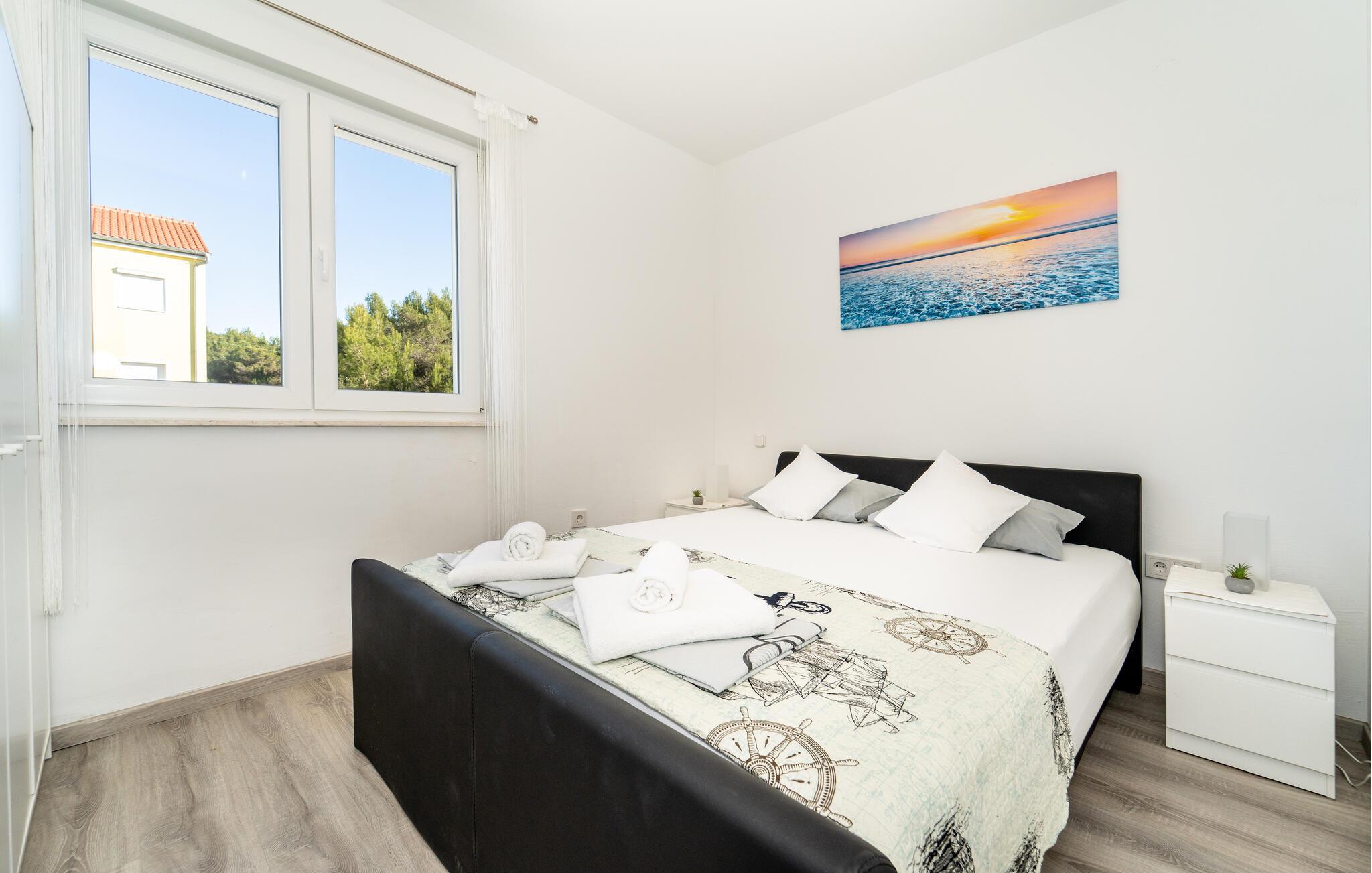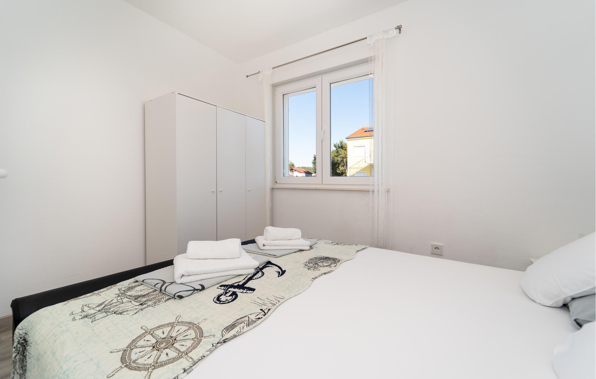 I denne lyse og moderne lejlighed i den charmerende by Bibinje venter jer en afslappende pause. Nyd den rolige stemning, og lad dagen slutte af på balkonen – her kan I finde ro og fra de øvre etager lade blikket vandre ud over havet. Lejligheden, beliggende i et hus med flere lejligheder, tilbyder alt, hvad I har brug for til en behagelig ferie. Rejs med venner eller storfamilien, og nyd fællesskabet uden at gå på kompromis med privatlivet.