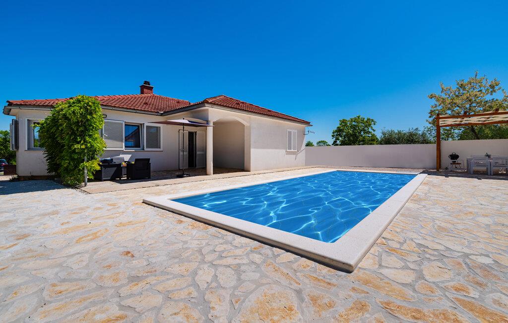Midt i det rolige landskab i Brisevo venter dette stilfulde feriehus med et rummeligt udendørsområde og en skøn pool på jer. Den moderne indretning kombinerer rene linjer med varme accenter og skaber en hyggelig atmosfære. Det åbne køkken er fuldt udstyret og indbyder til hyggelige aftener med familien. I opholdsområdet nyder I komfort og elegance, mens soveværelserne byder på nogle rolige og afslappende nætter. Særligt indbydende er den store overdækkede terrasse med udsigt over poolen. Her er det perfekte sted at slutte dagen af i ro og mag.