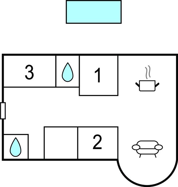 Opholdsstue/køkken 20m2 - 2 Sovepladser. (Sofa, madras eller lignende).