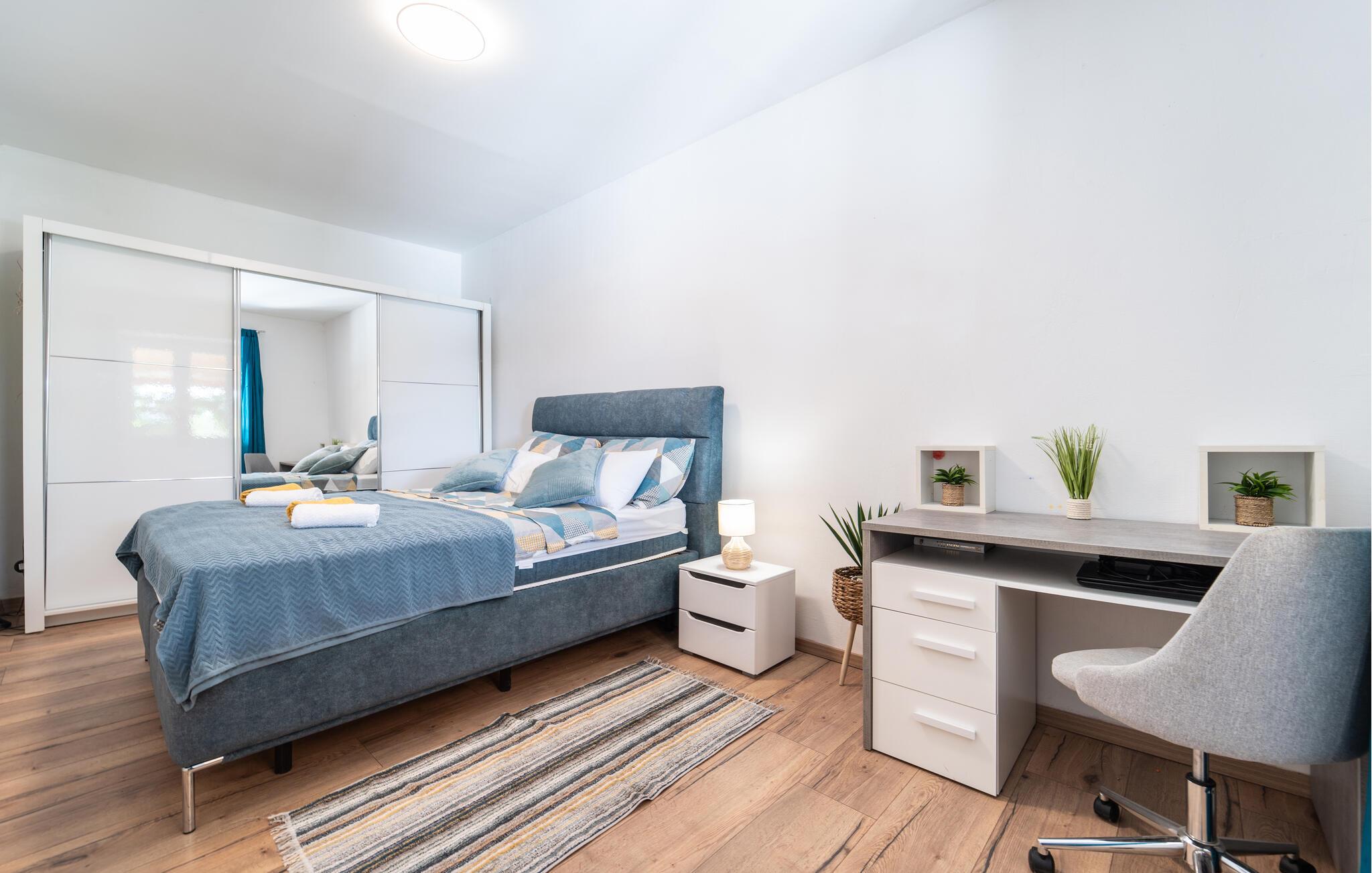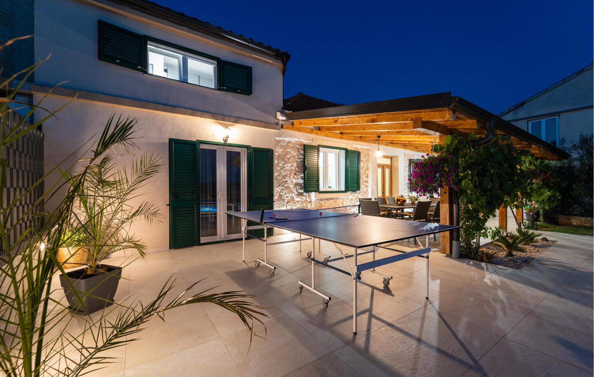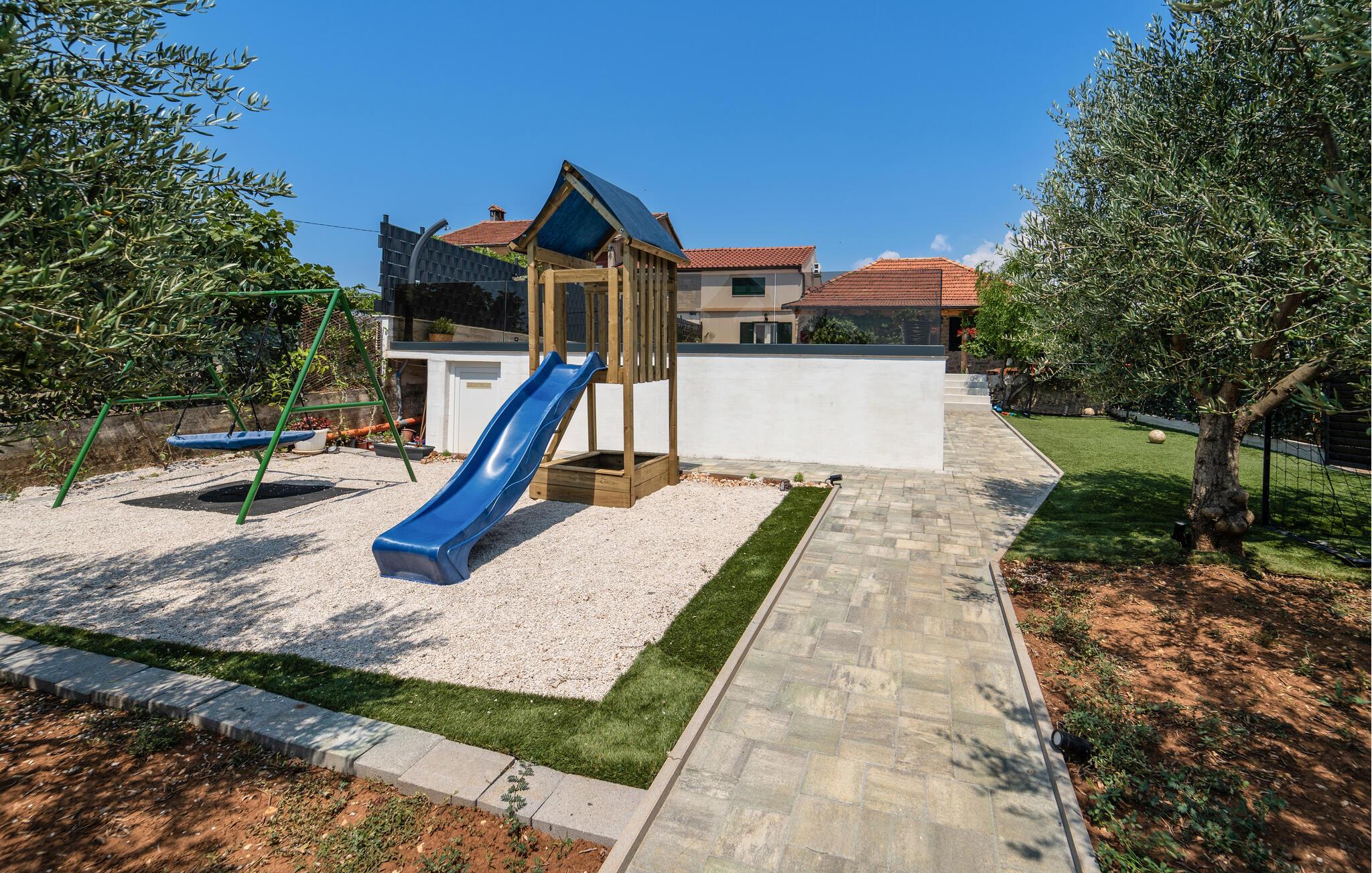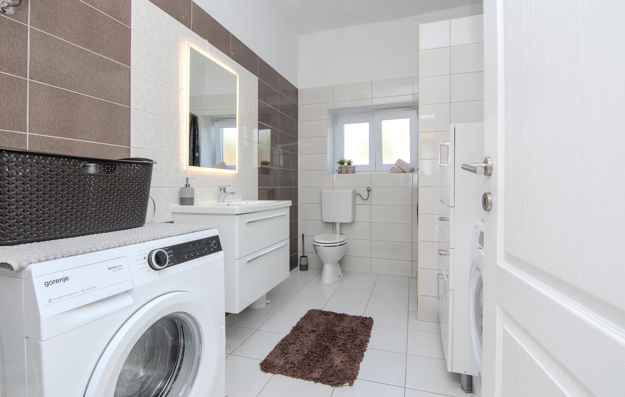 Tag en pause fra hamsterhjulet og rejs med familien til det vestlige Kroatien, hvor der tæt på kysten venter jer en fantastisk base i dette lækre feriehus. Huset har en dejlig, rolig beliggenhed, og indvendigt fremtræder det yderst stilrent og komfortabelt med god sans for detaljen. Køkkenet er stort og veludstyret, så gør madlavningen til et sjovt fællesprojekt, inden I dækker op til den store middag ved spisebordet. Senere kan I hive brætspillene frem eller trække over i sofaen og nyde en hyggelig filmaften, mens I lægger planer for de kommende dage.