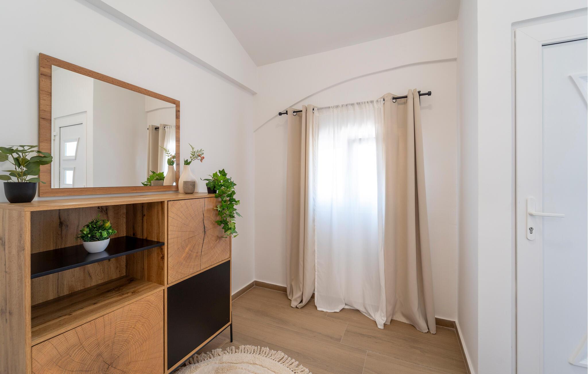 I dette lækre hus får I som familie alt, I behøver, til en ægte drømmeferie i kystens bagland. Boligen er flot og komfortabelt indrettet, og interiøret består af et vellykket mix af rustikke og moderne elementer, der alt sammen skaber en rar atmosfære at slappe af i. Køkkenet er veludstyret, så gør madlavningen til et sjovt fællesprojekt, inden I serverer maden ved spisebordet eller i det fri. Senere kan I finde jer godt til rette i sofaen med hver jeres bog eller en god film, mens I lægger planer for de kommende dage.