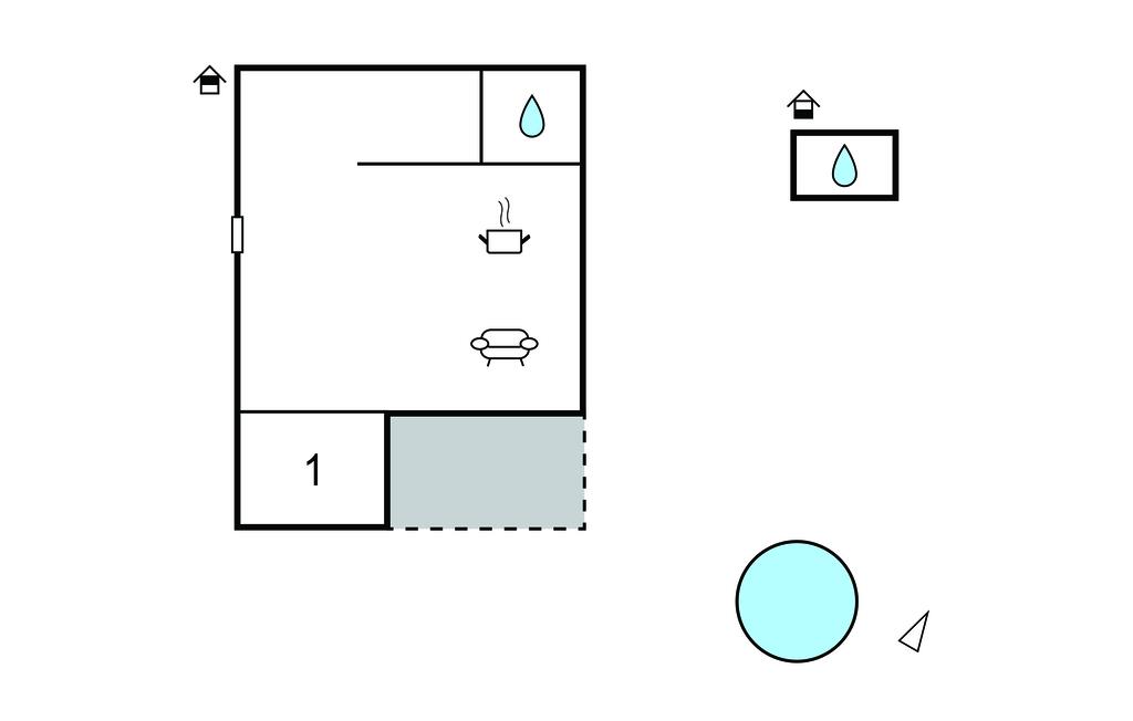 Opholdsstue/køkken 20m2 - 2 Sovepladser. (Sofa, madras eller lignende).