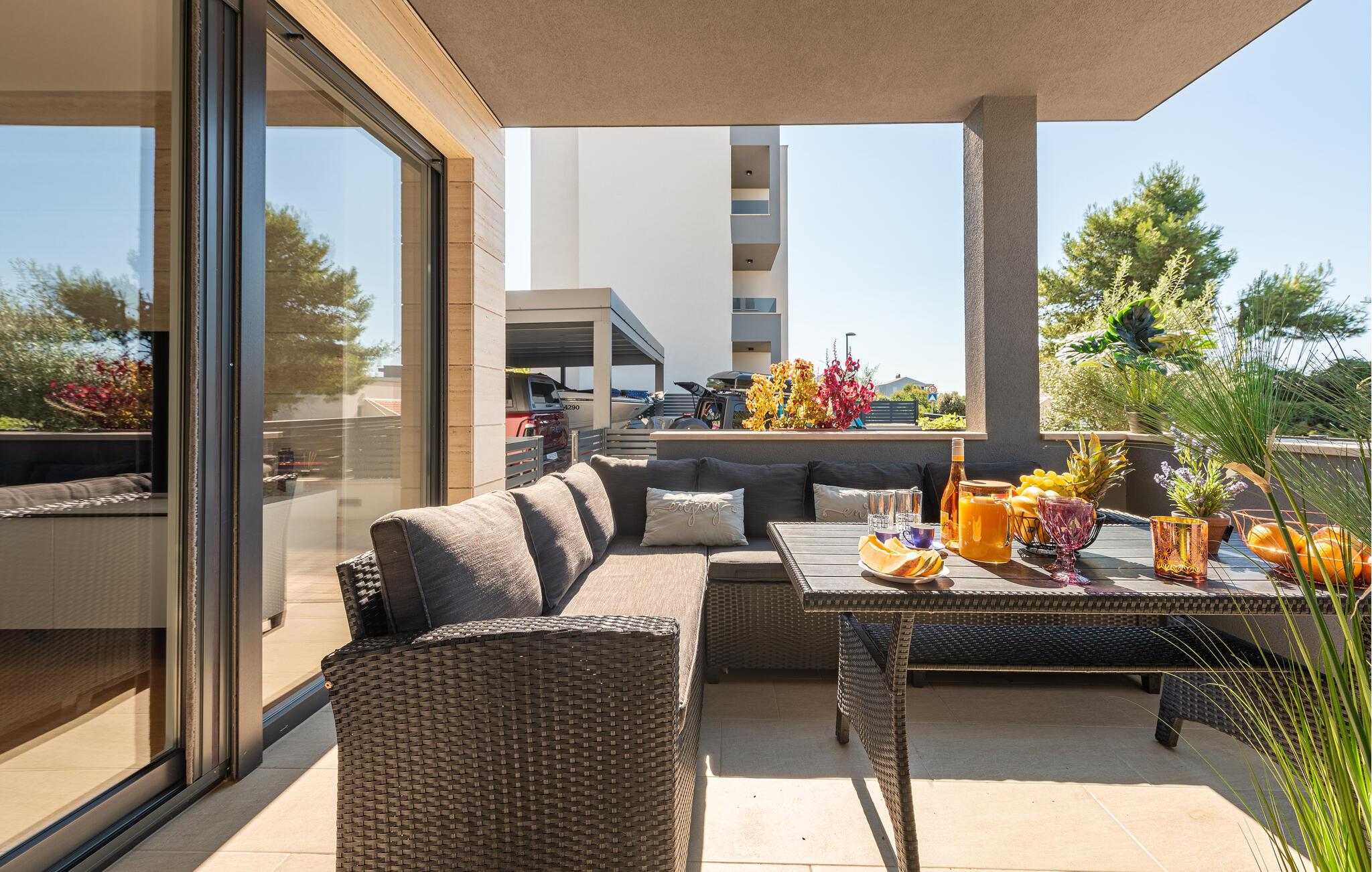 Lejligheden ligger tæt ved stranden og er ideel til en ferie med skønne timer ved havet, som I kan nå på få skridt, samt spændende udflugter i området. De lyse rum og den moderne indretning danner rammerne for samvær og gør det nemt for jer at slappe af. Nøje udvalgt design og lækre kvalitetsmaterialer skaber et miljø, hvor I kan genoplade jeres batterier, og de små pauser bliver en fornøjelse. Begynd dagene med en lækker morgenmad på jeres private terrasse og læg planer for den kommende dag.