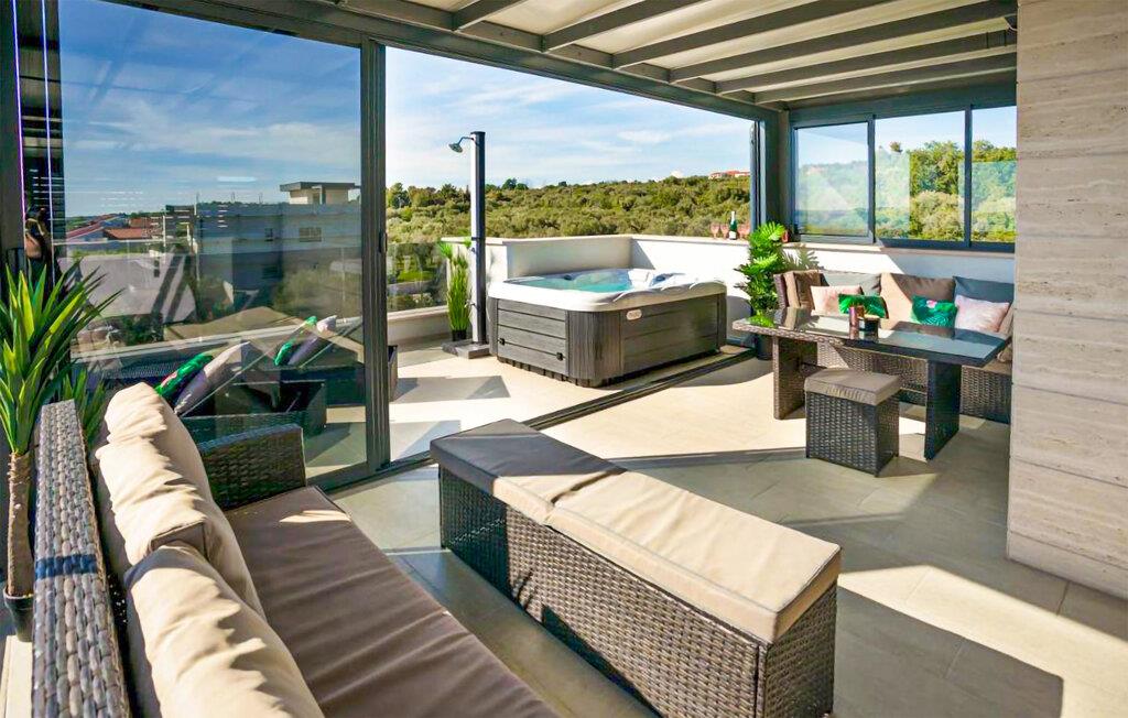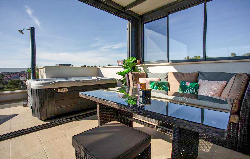 Nyd ferien i denne luksuriøse ferielejlighed med fælles tagterrasse, jacuzzi og en fantastisk havudsigt.