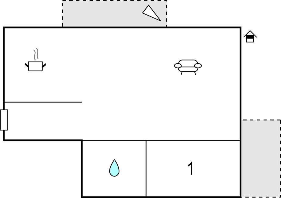 Komb. spisestue/køkken 25m2 - 2 Sovepladser. (Sofa, madras eller lignende).