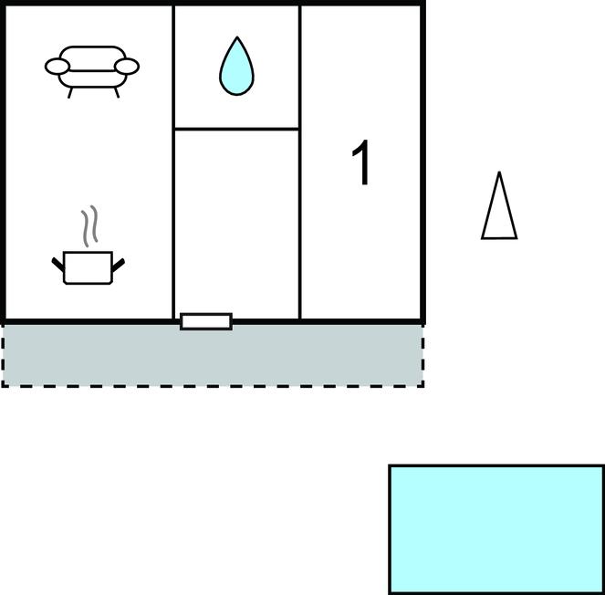 Opholdsstue/køkken 30m2 - 2 Sovepladser. (Sofa, madras eller lignende).